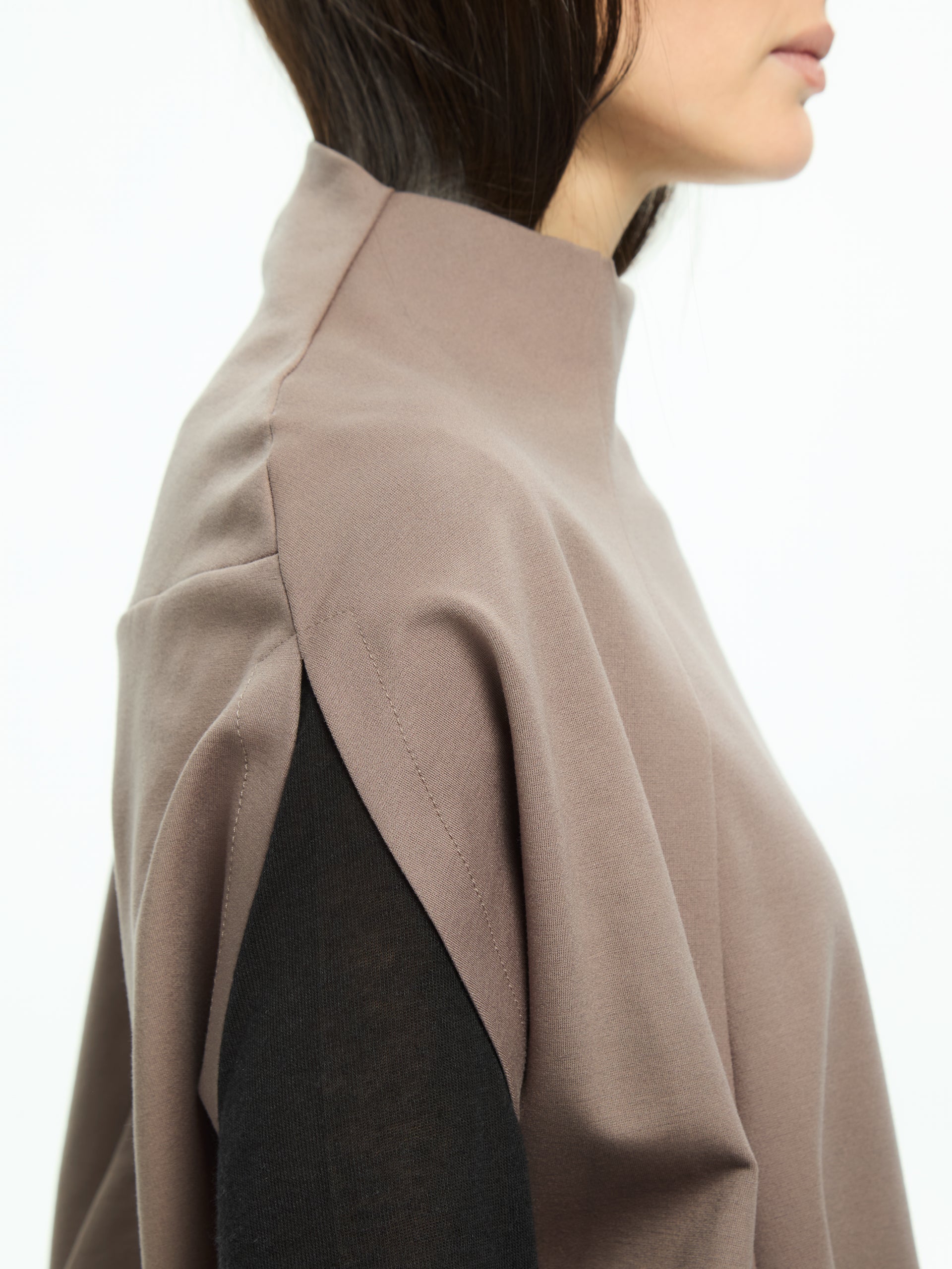 Moderna, essenziale e dal carattere architettonico, questa maglia gioca con volumi morbidi e linee precise per un’estetica ricercata e contemporanea. La costruzione strutturata del busto crea una silhouette pulita e definita, mentre le maniche aggiungono profondità e movimento al design. Lo scollo morbido e leggermente rialzato incornicia il viso con naturalezza, rendendo il capo ideale per look minimal ma dall’impronta decisa.