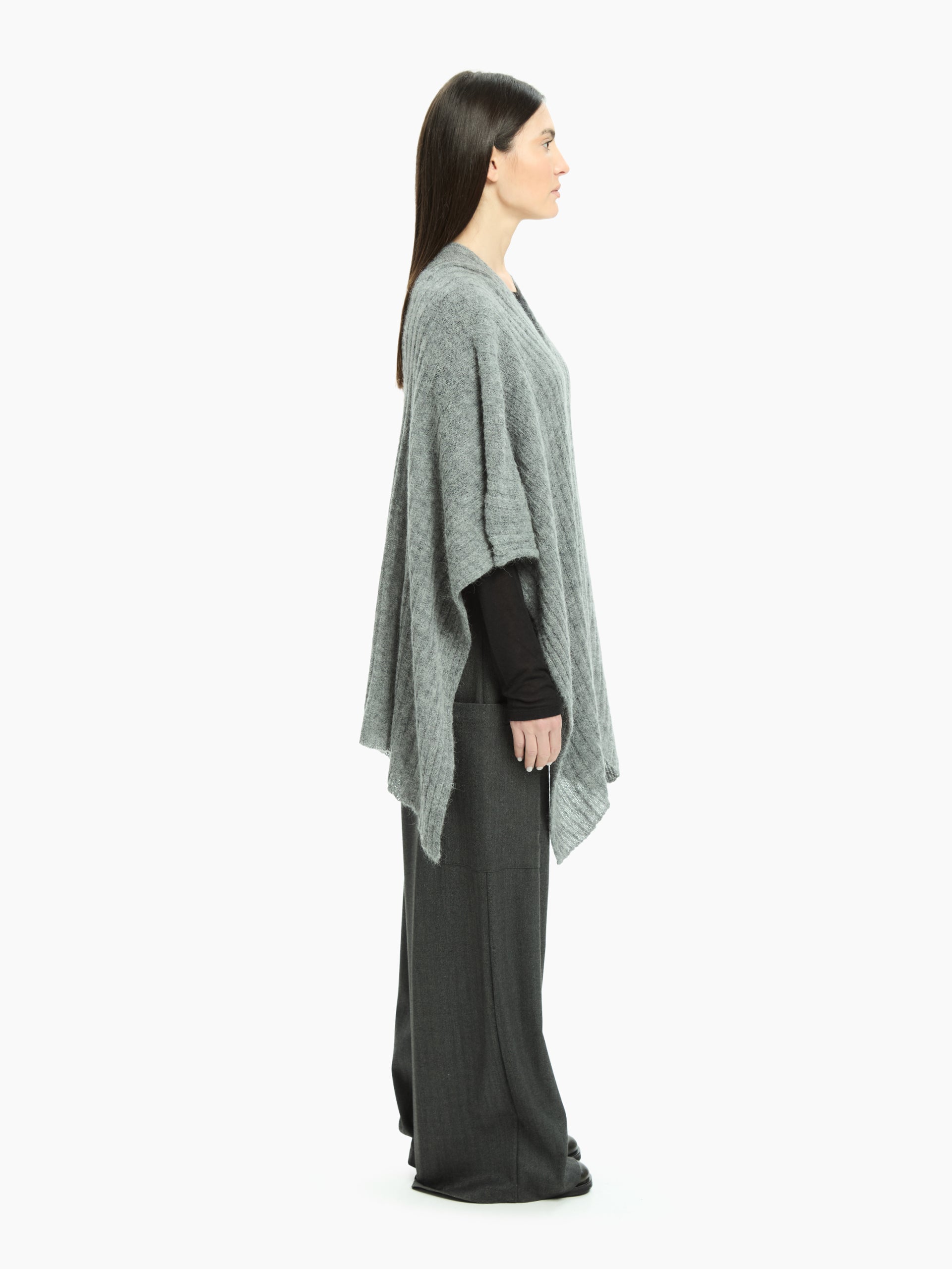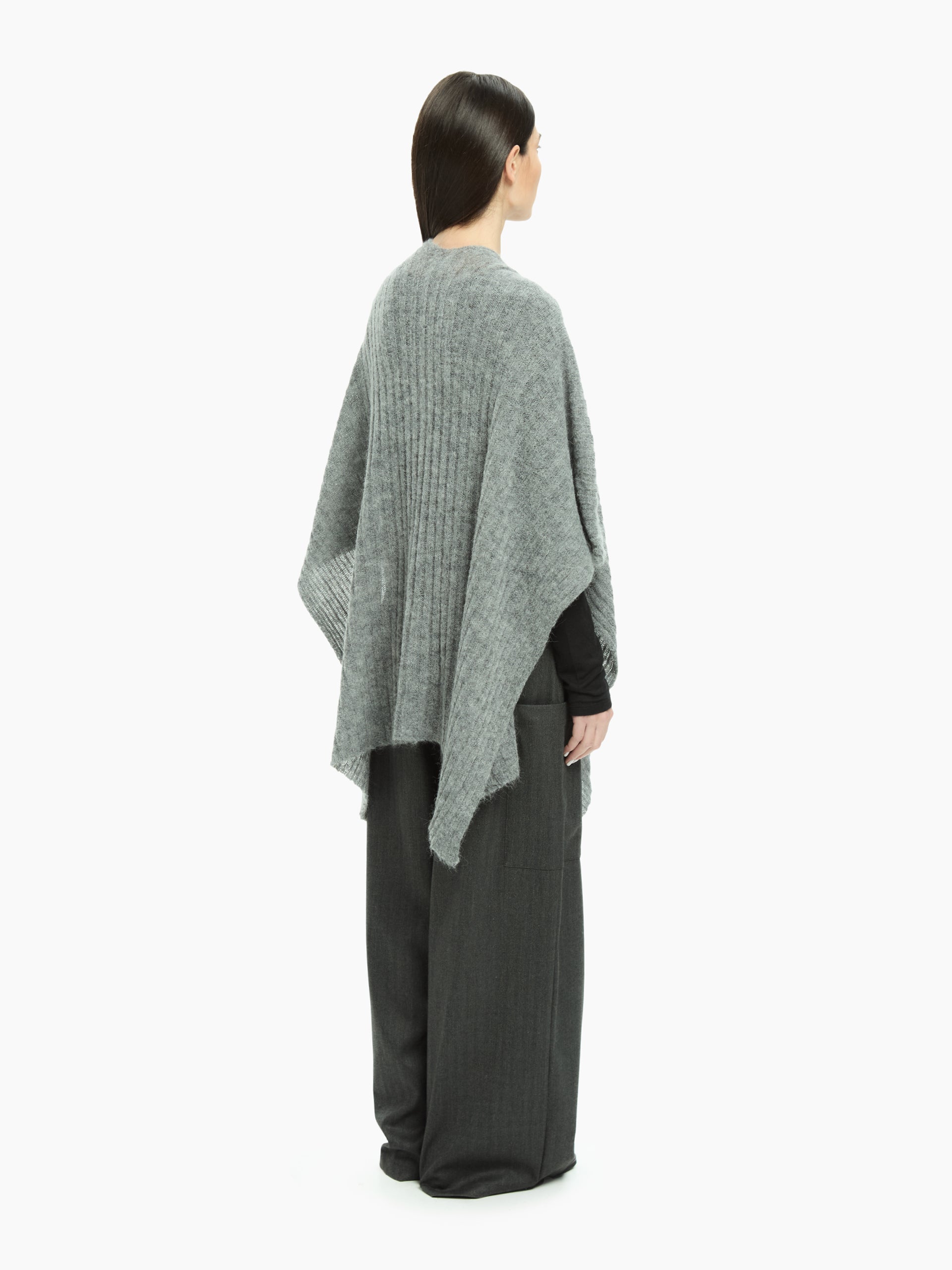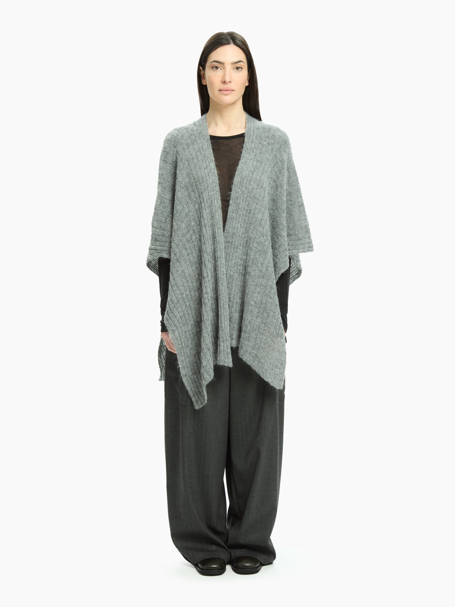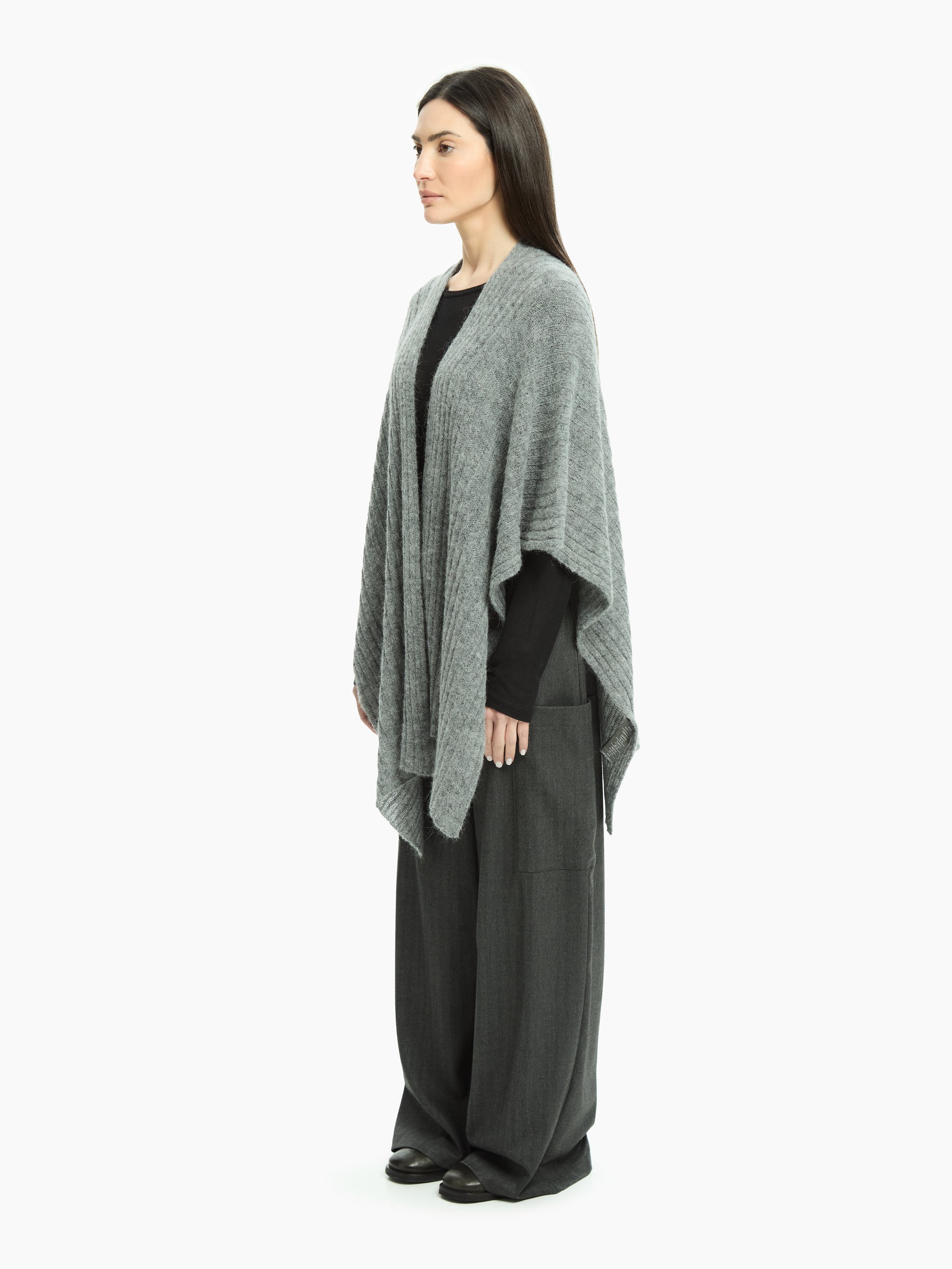 - Apertura ampia e avvolgente, perfetta da indossare sulle spalle come un mantello o drappeggiata per un look più scenografico.