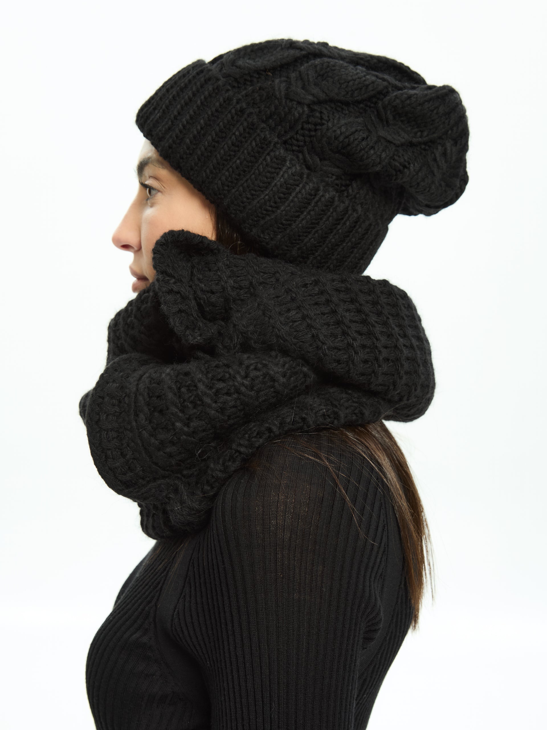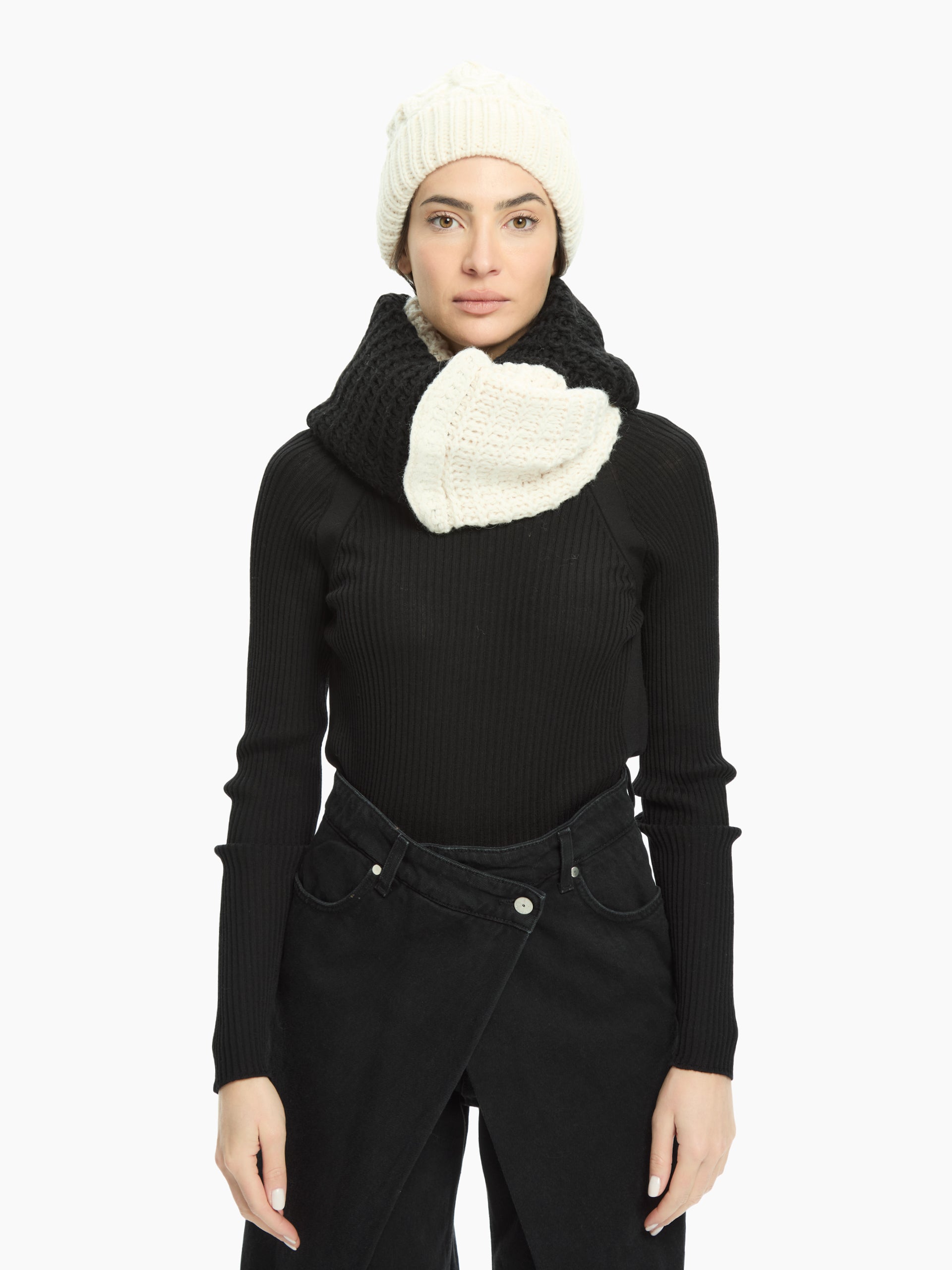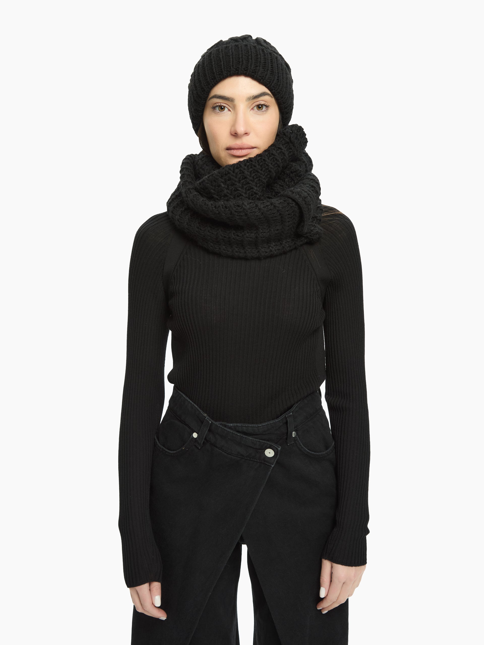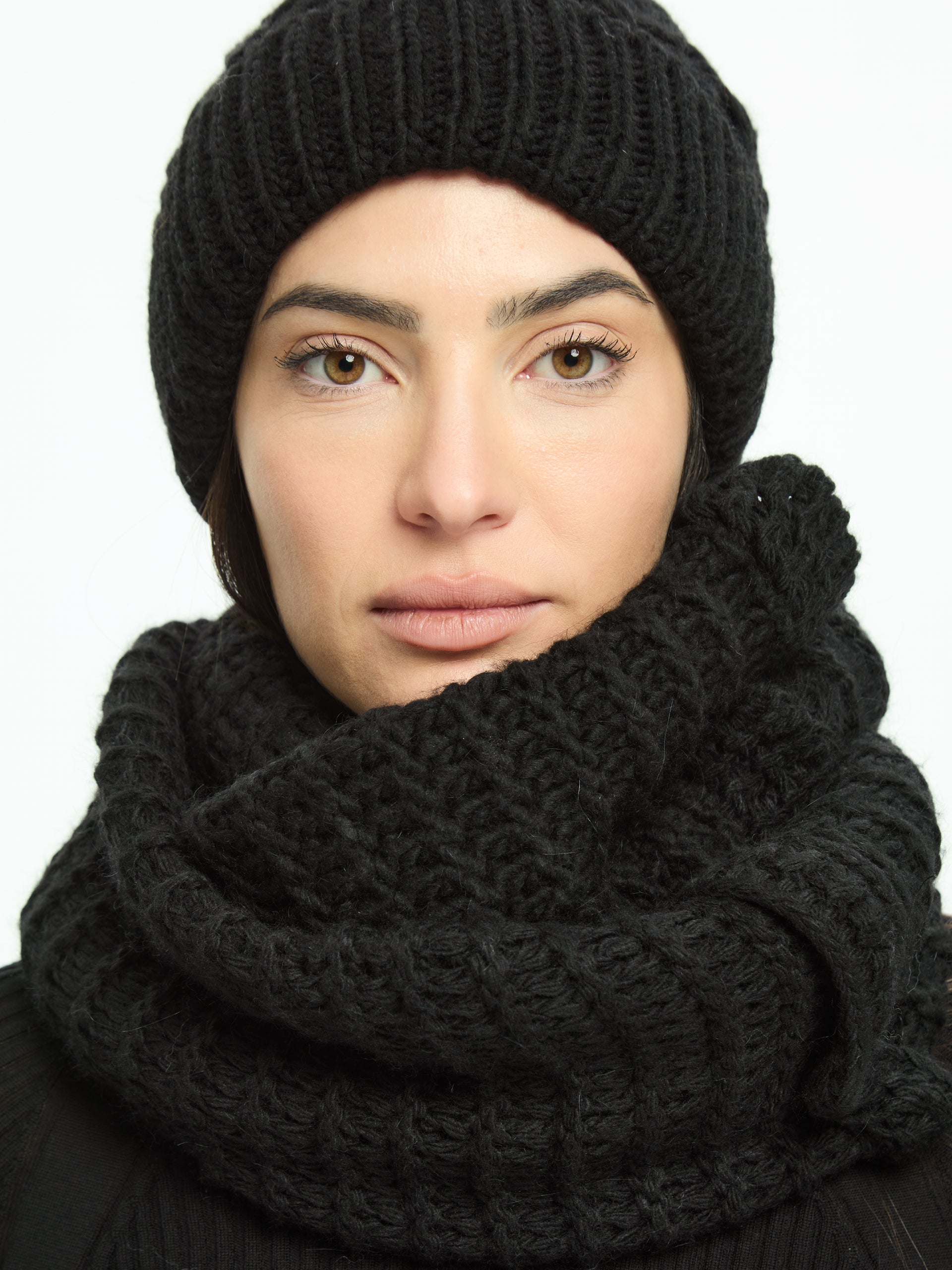 Morbida e avvolgente, questa sciarpa ad anello unisce volume e texture in un accessorio che cattura subito l’attenzione. La lavorazione a maglia larga crea un effetto tridimensionale ricco e materico, mentre la struttura circolare permette di indossarla con naturalezza, avvolgendo il collo in un gesto morbido e protettivo.