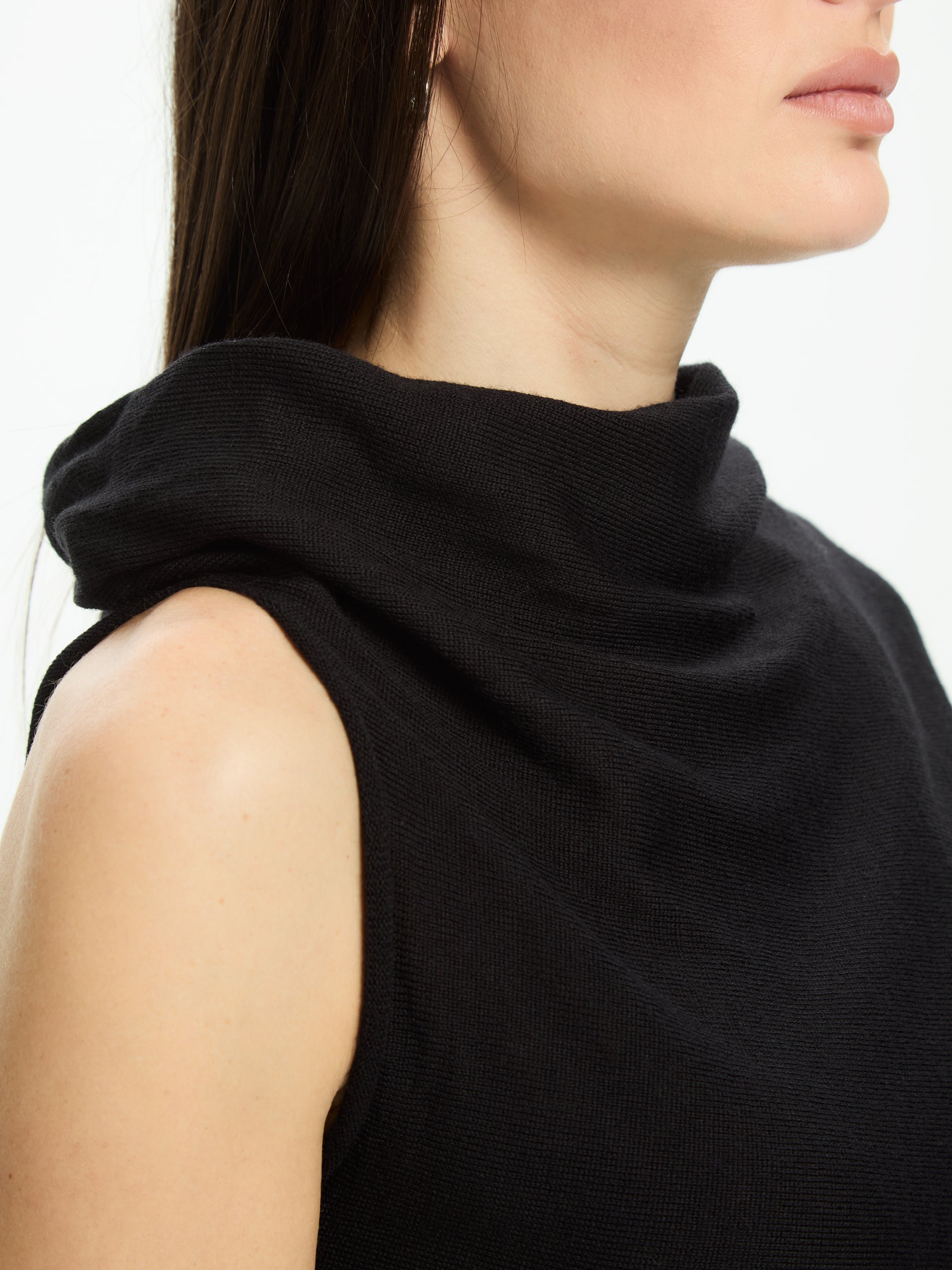 Minimalista, raffinata e con un taglio avvolgente: questa cappa senza maniche è un capo versatile che unisce estetica e funzionalità. Il collo morbido e drappeggiato crea un elegante gioco di volumi, perfetto per aggiungere carattere anche al look più essenziale.