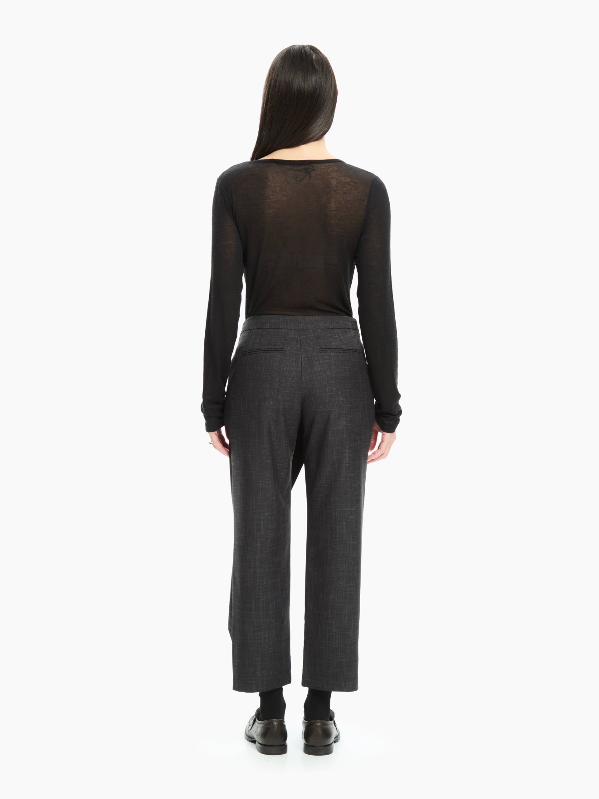 Realizzato in un tessuto strutturato dalla mano leggermente materica, il modello valorizza la figura con una vita alta sagomata e una gamba dritta e asciutta. Il taglio moderno lo rende ideale sia per outfit daily chic sia per look più formali in cui si vuole mantenere originalità senza rinunciare all’eleganza.