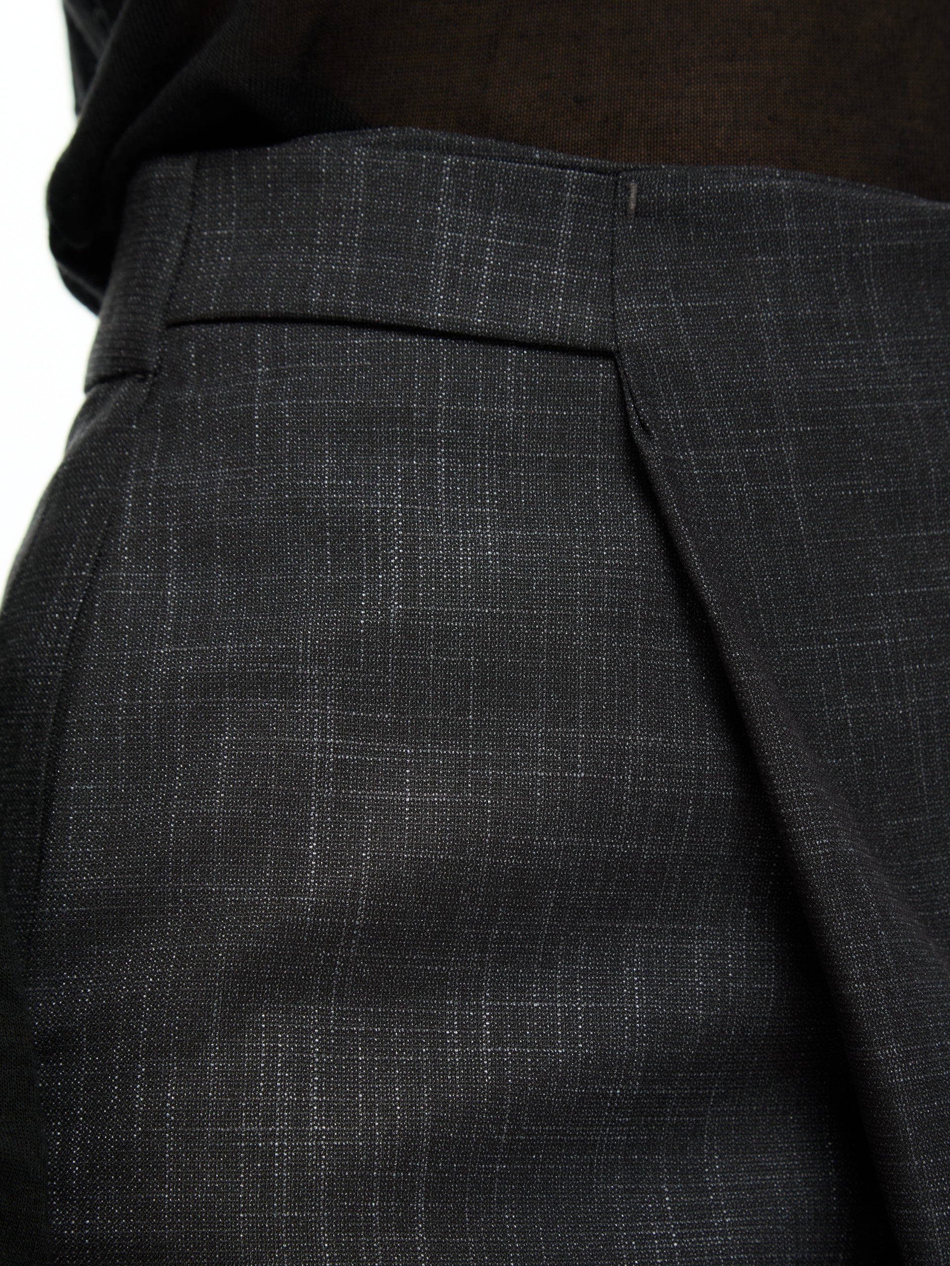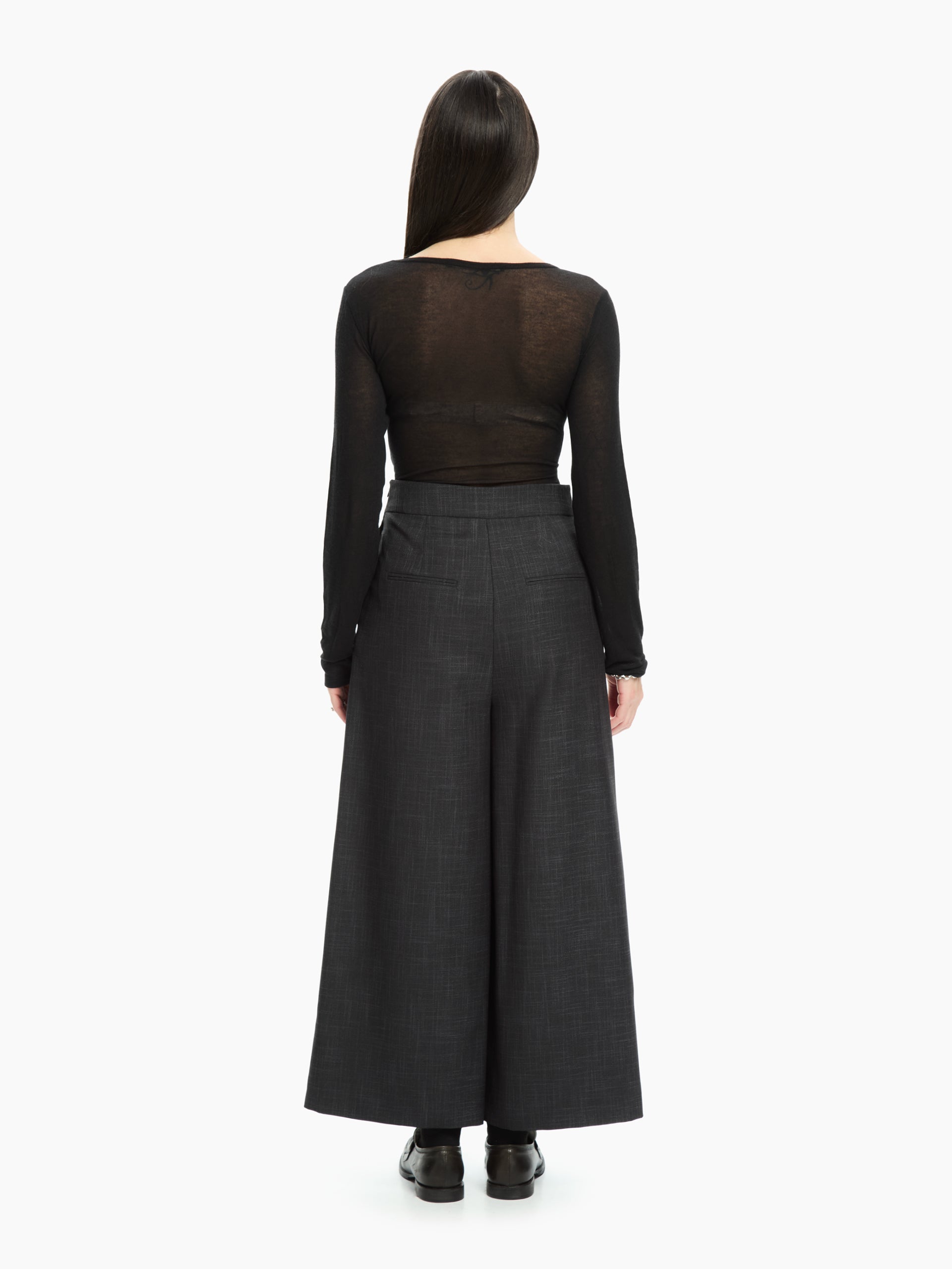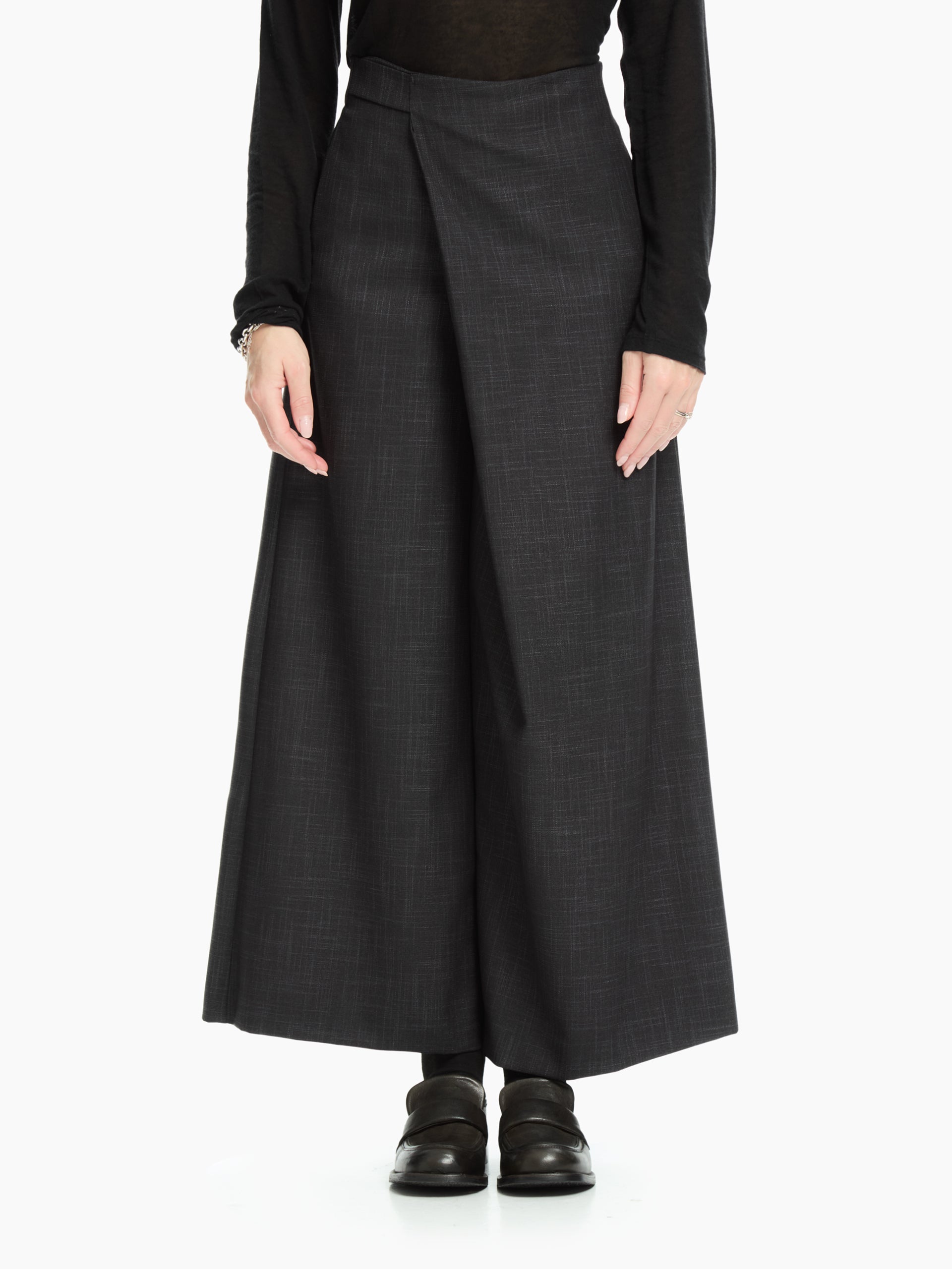 Pantalone che interpreta l’eleganza contemporanea attraverso linee pulite e un dettaglio distintivo: il pannello frontale asimmetrico che crea un raffinato gioco di sovrapposizioni.