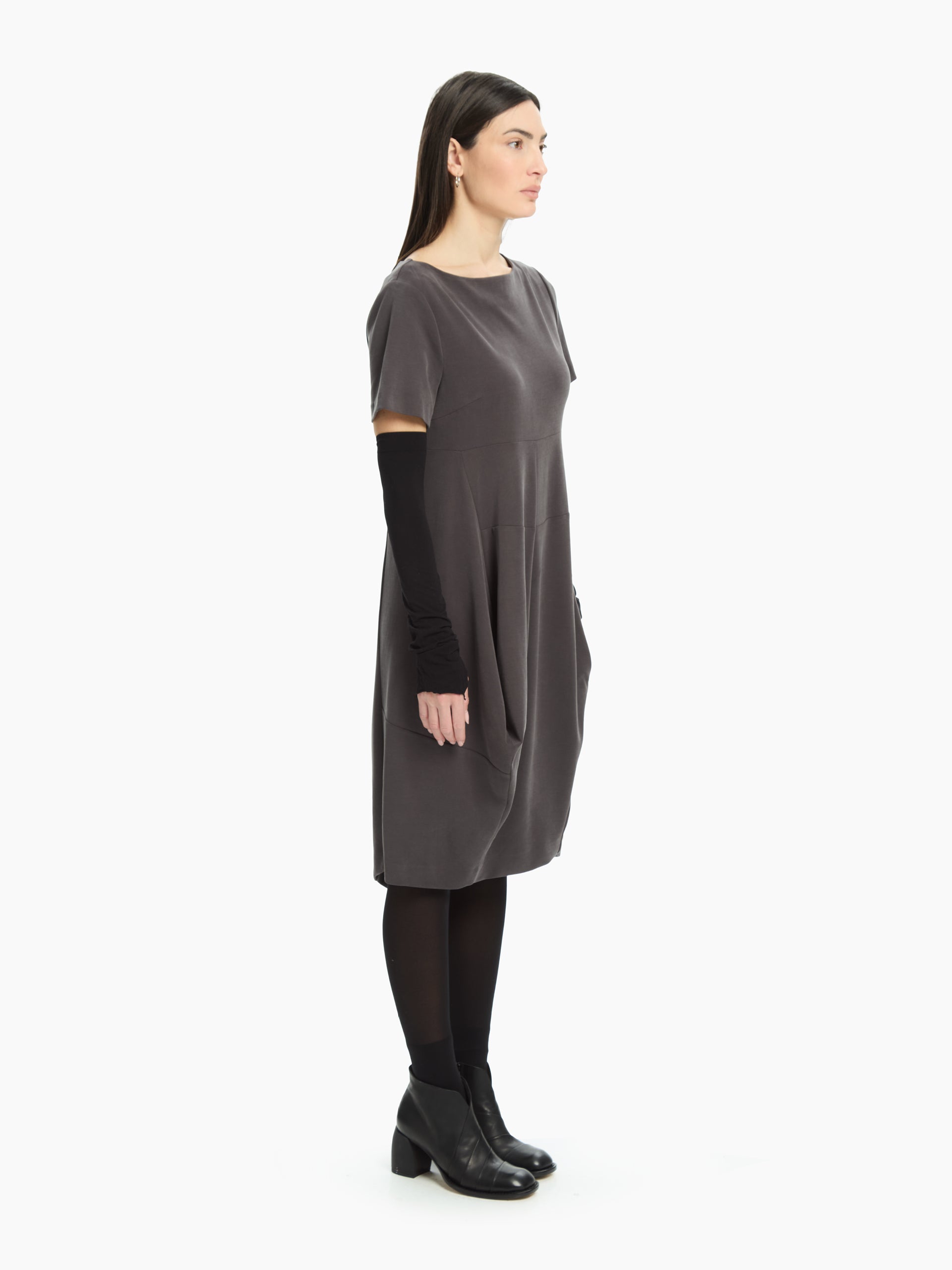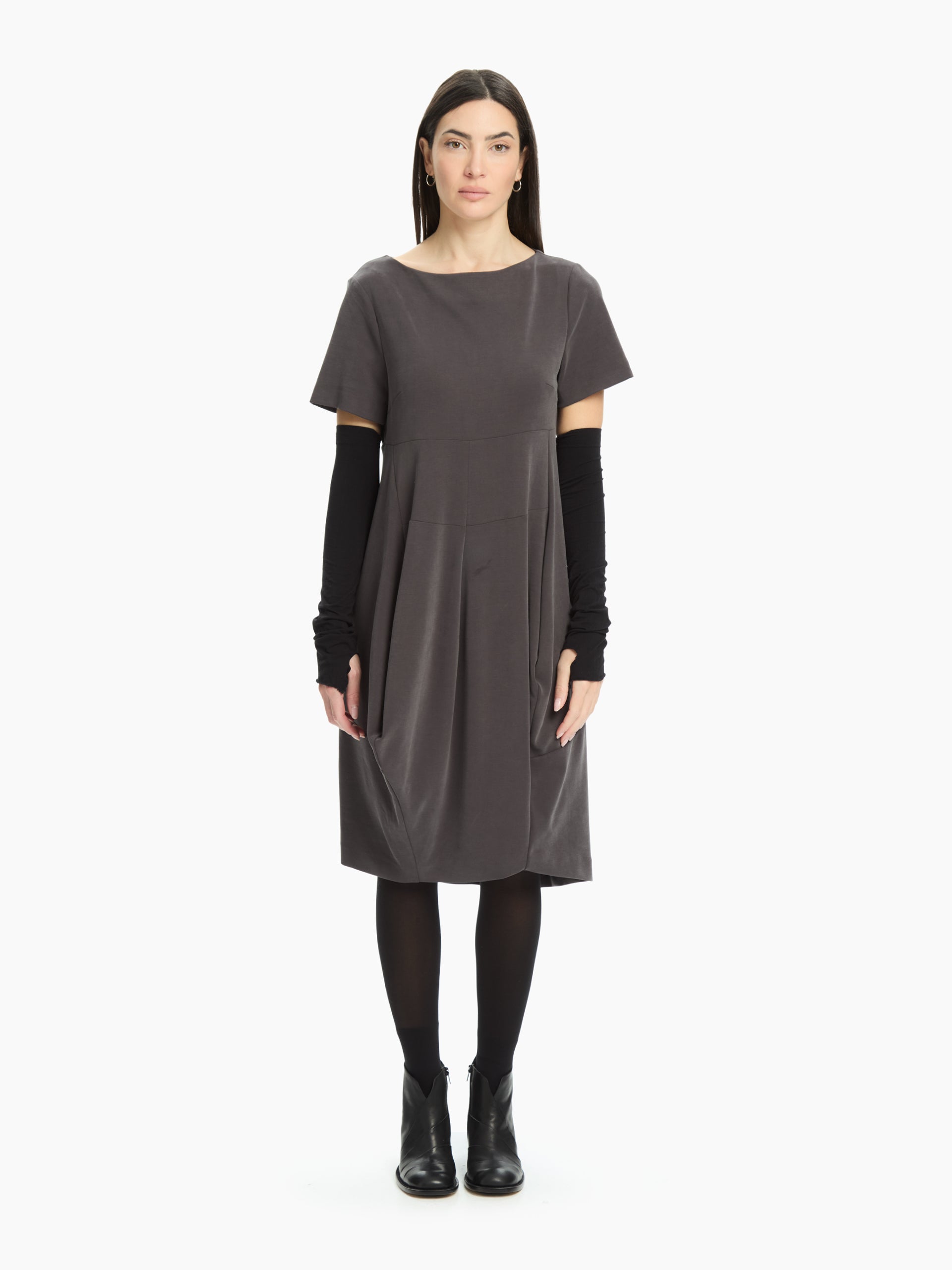 - Linea morbida con pieghe strutturate sul davanti che creano volume e un effetto drappeggiato naturale.