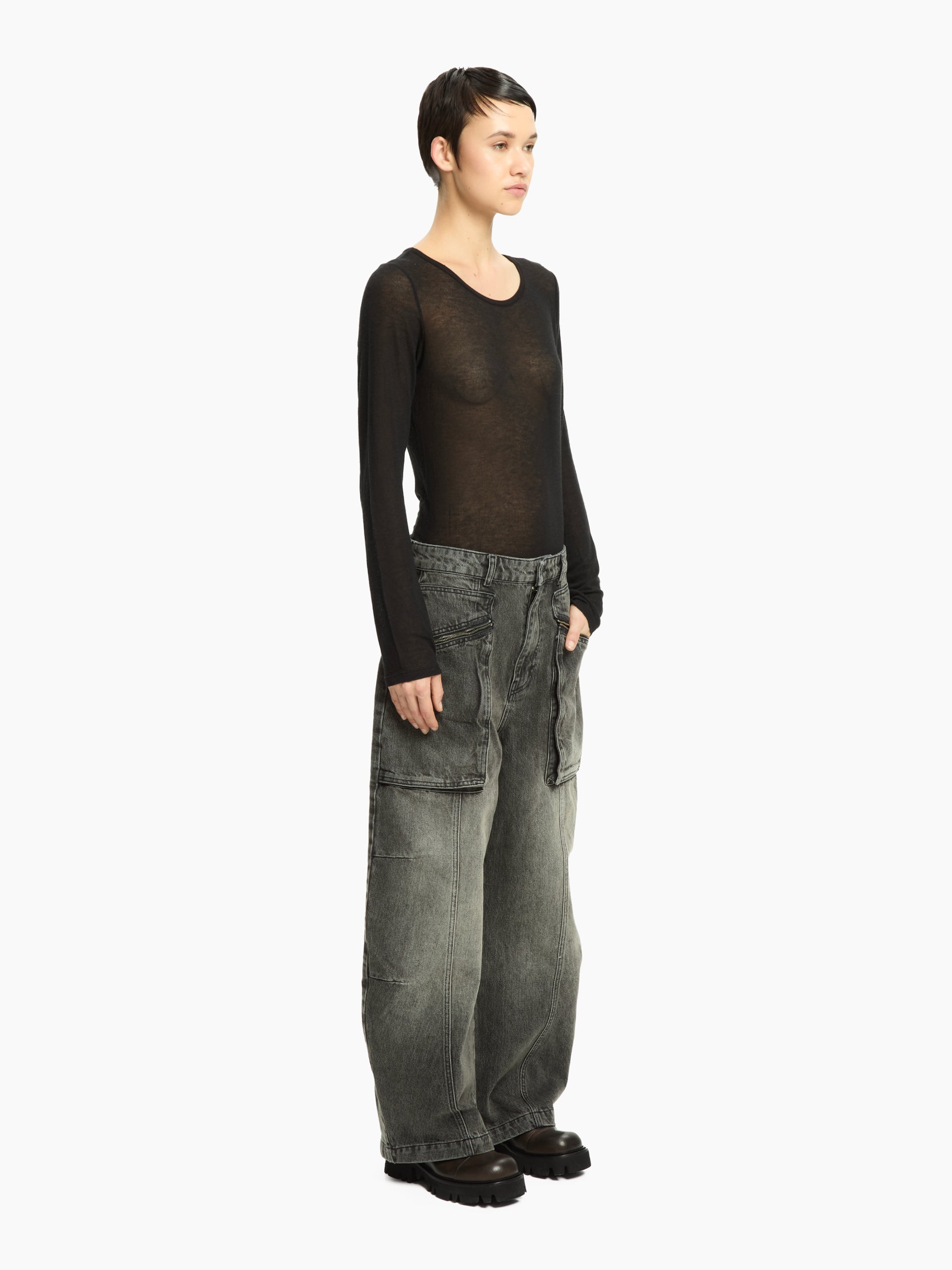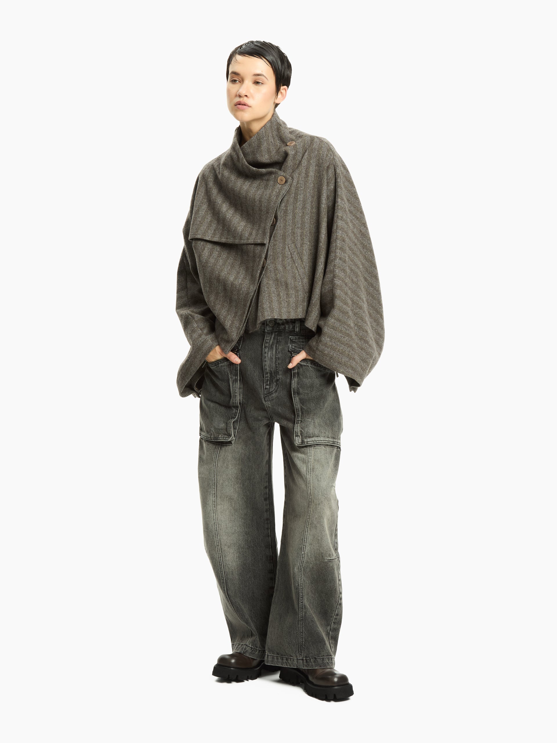 Il jeans Aprile è un modello dal carattere deciso, che unisce lo stile denim classico a dettagli contemporanei. Realizzato in denim effetto vissuto, presenta una linea ampia e rilassata con tasche cargo applicate che aggiungono funzionalità e un tocco urban. Il lavaggio sfumato e le cuciture a contrasto esaltano l’anima grintosa di questo capo, ideale per chi cerca un look casual ma ricercato.