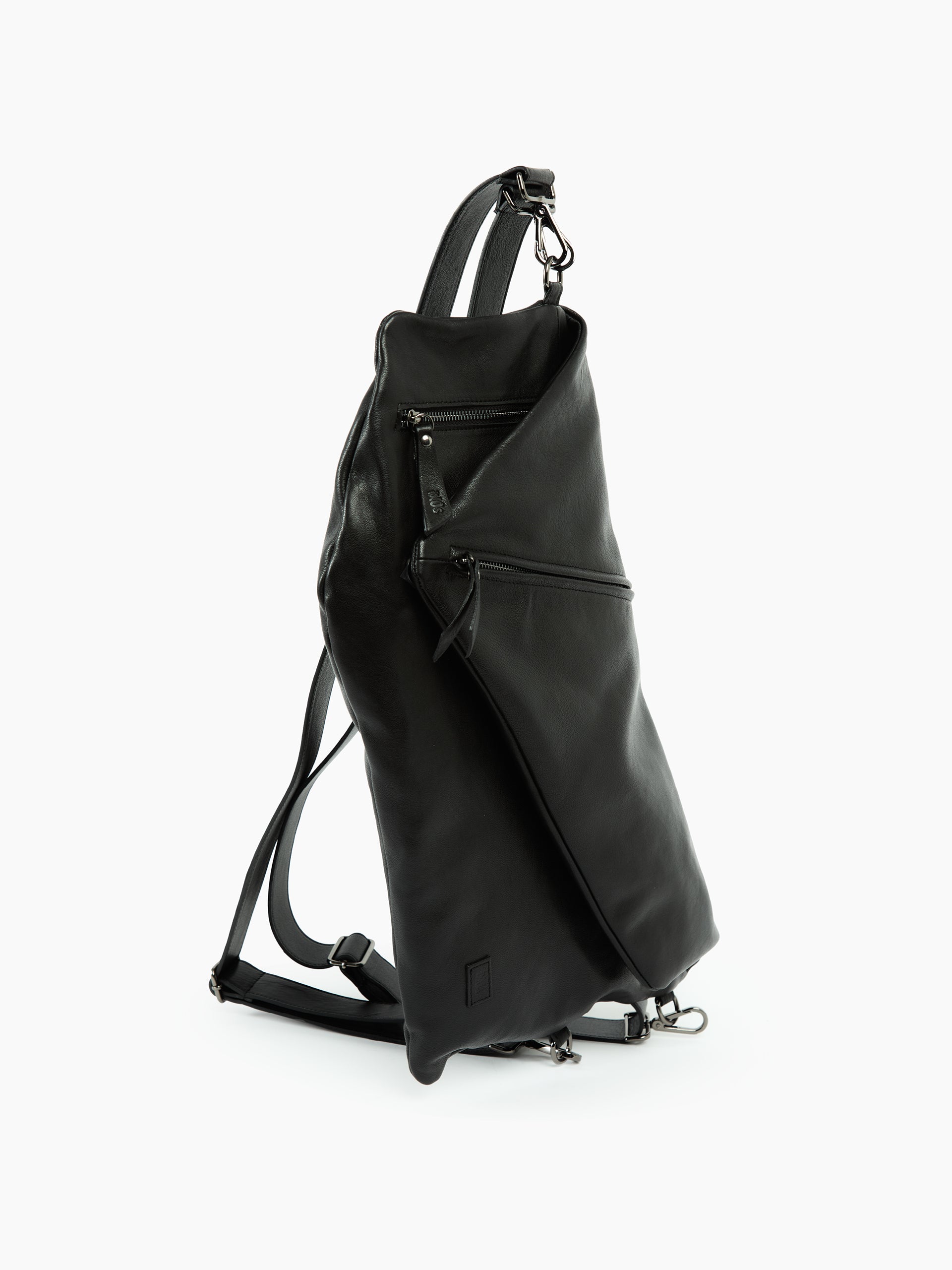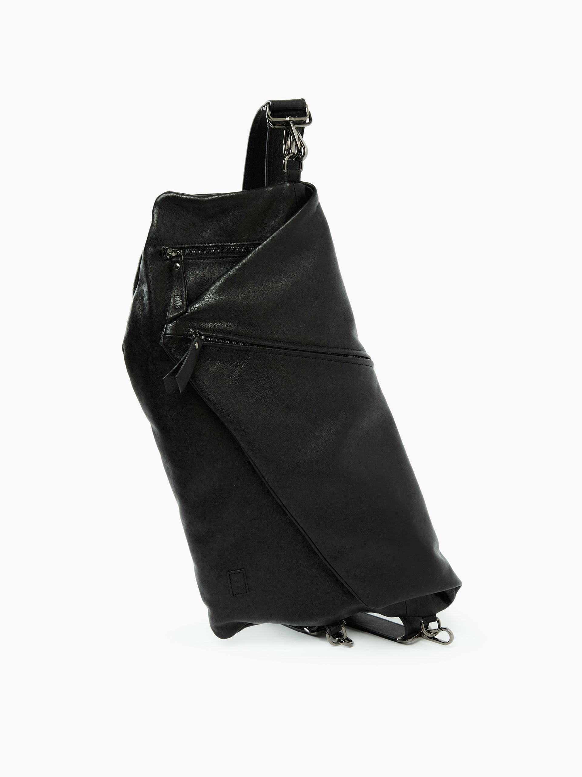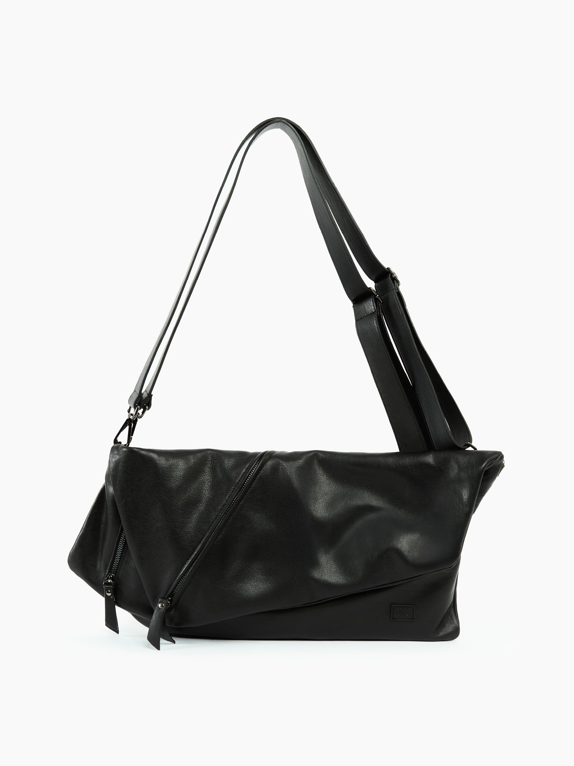 Questa borsa dal design contemporaneo unisce stile e funzionalità grazie alla sua struttura trasformabile e alle linee geometriche asimmetriche. Presenta una serie di zip diagonali che definiscono il volume e permettono di modulare lo spazio interno in base alle esigenze.