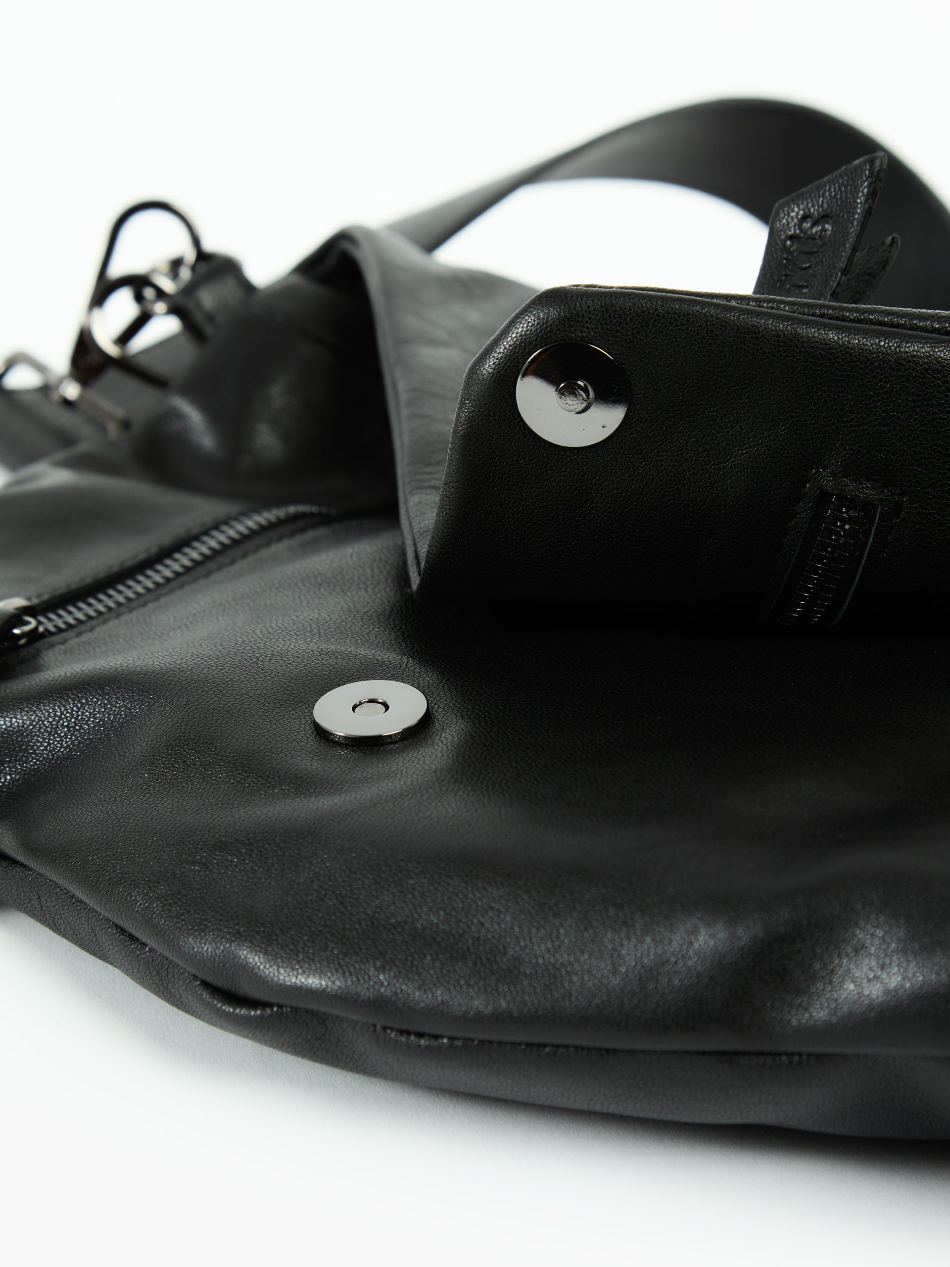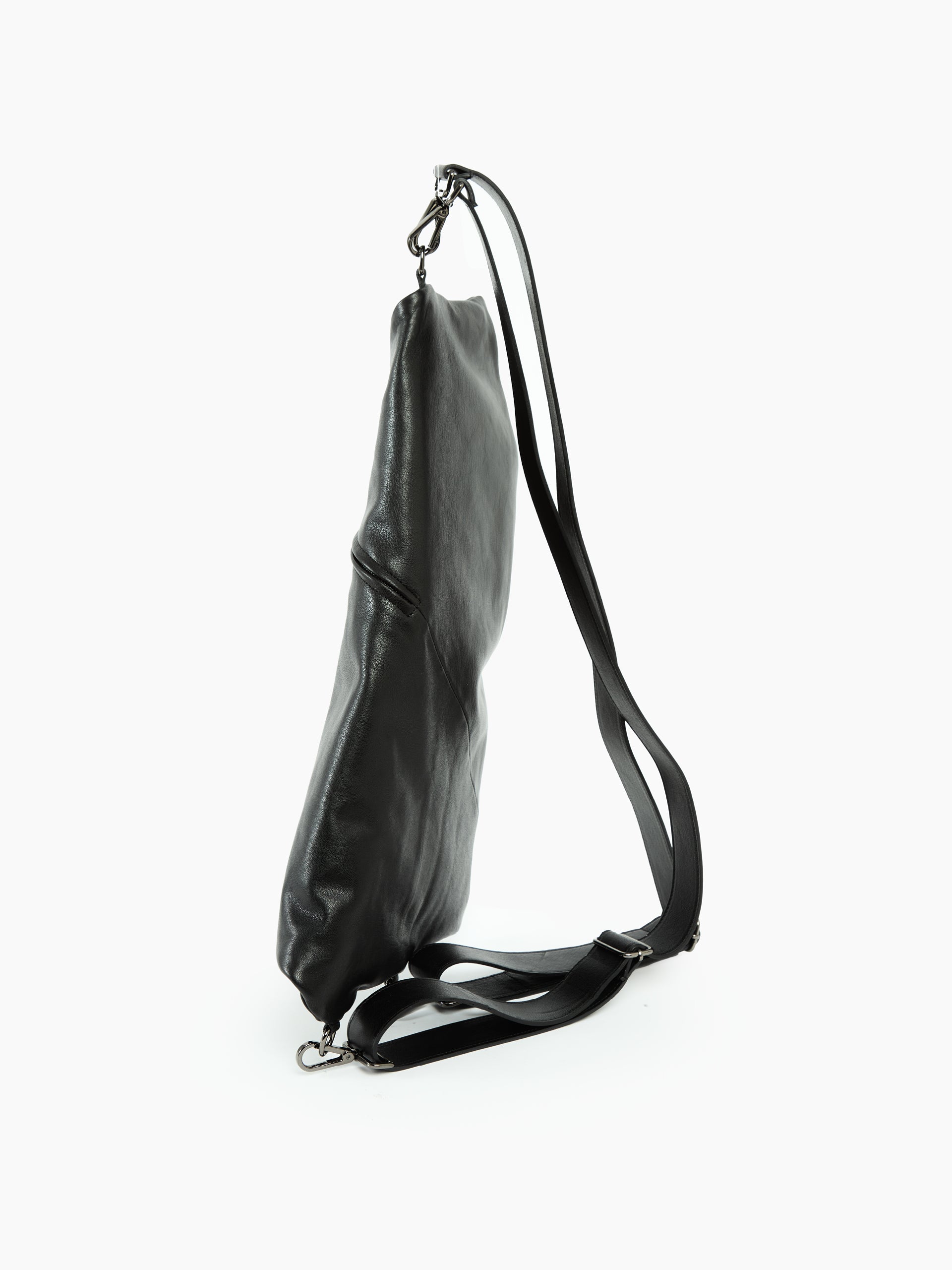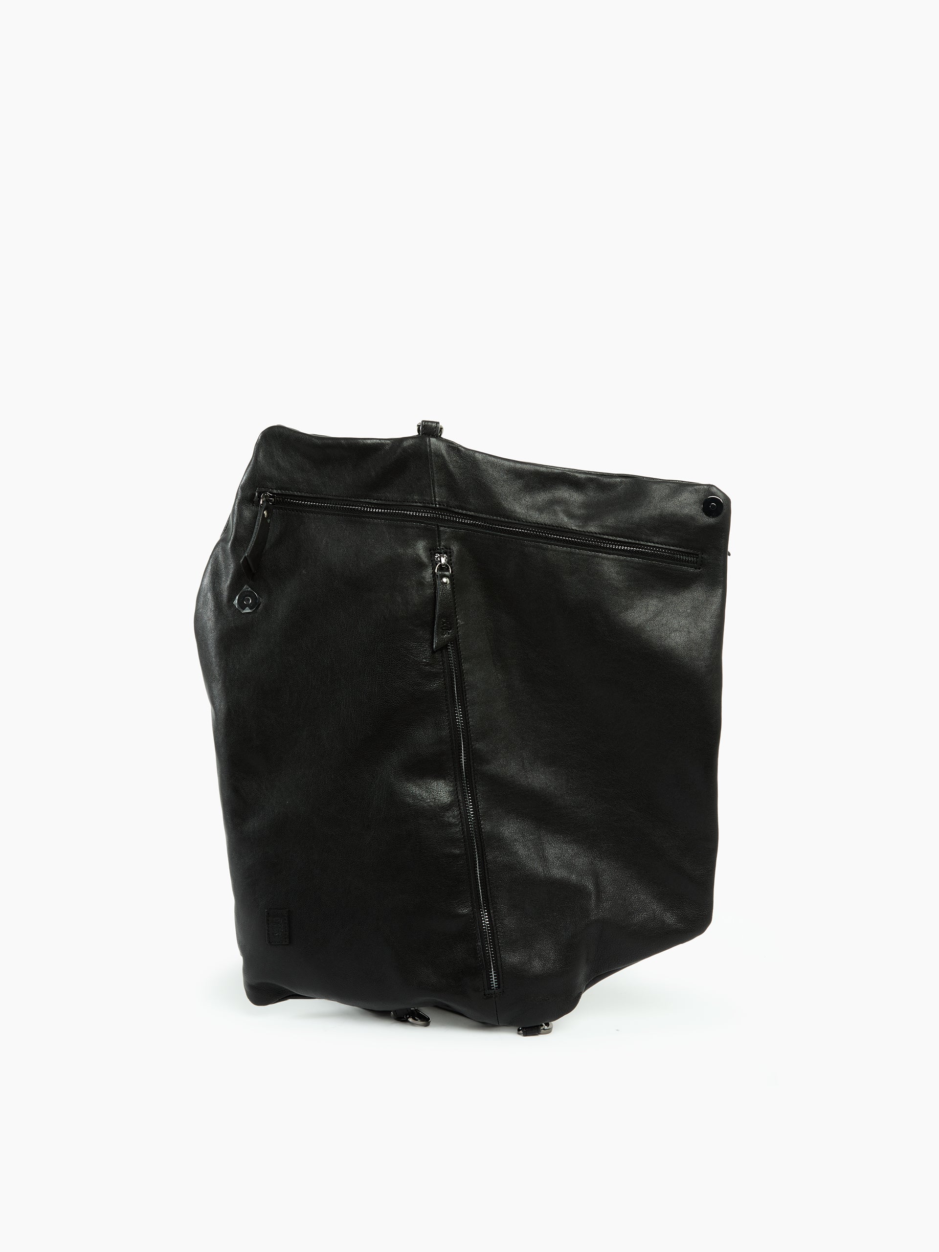 Questa borsa dal design contemporaneo unisce stile e funzionalità grazie alla sua struttura trasformabile e alle linee geometriche asimmetriche. Presenta una serie di zip diagonali che definiscono il volume e permettono di modulare lo spazio interno in base alle esigenze.