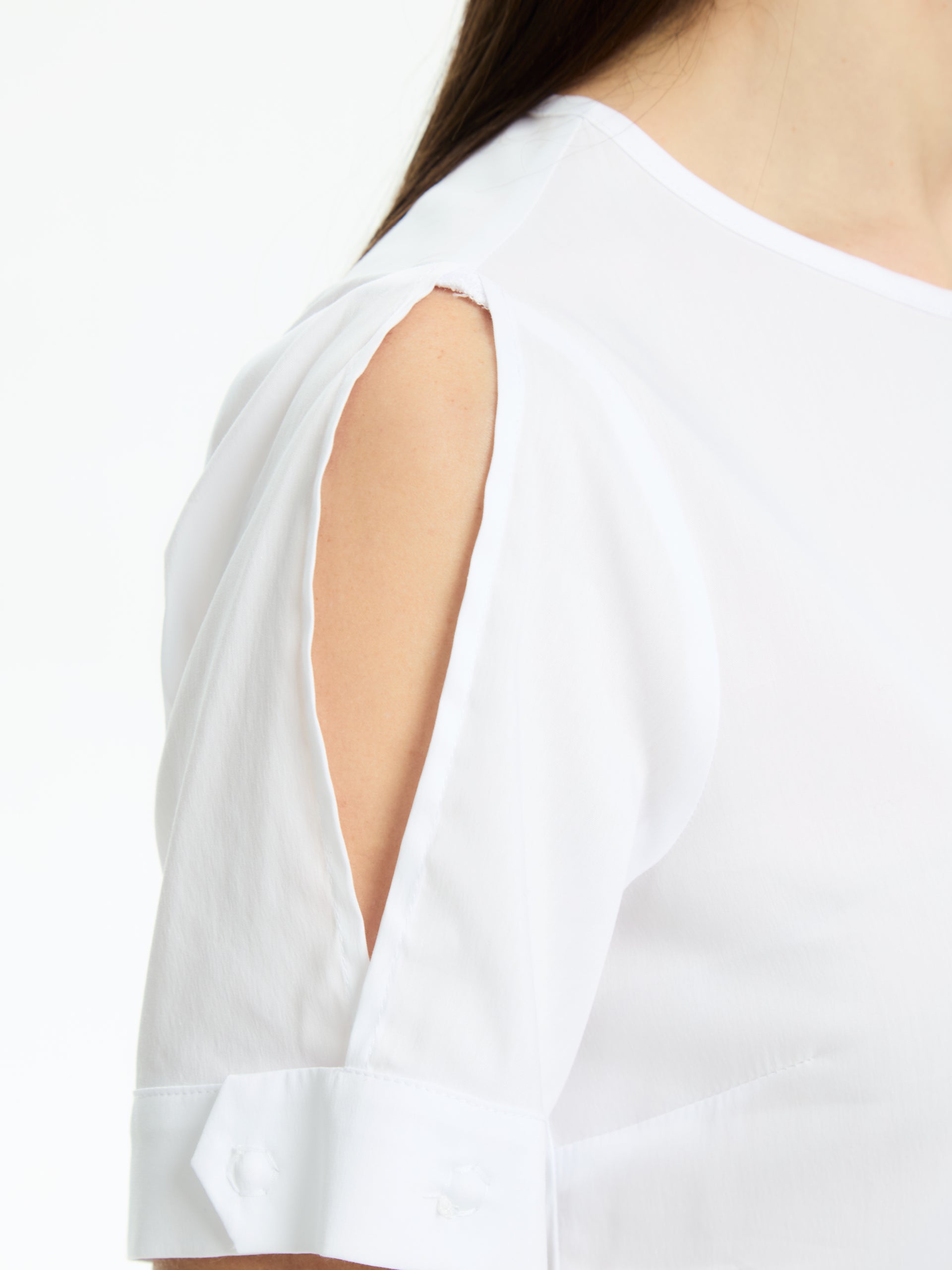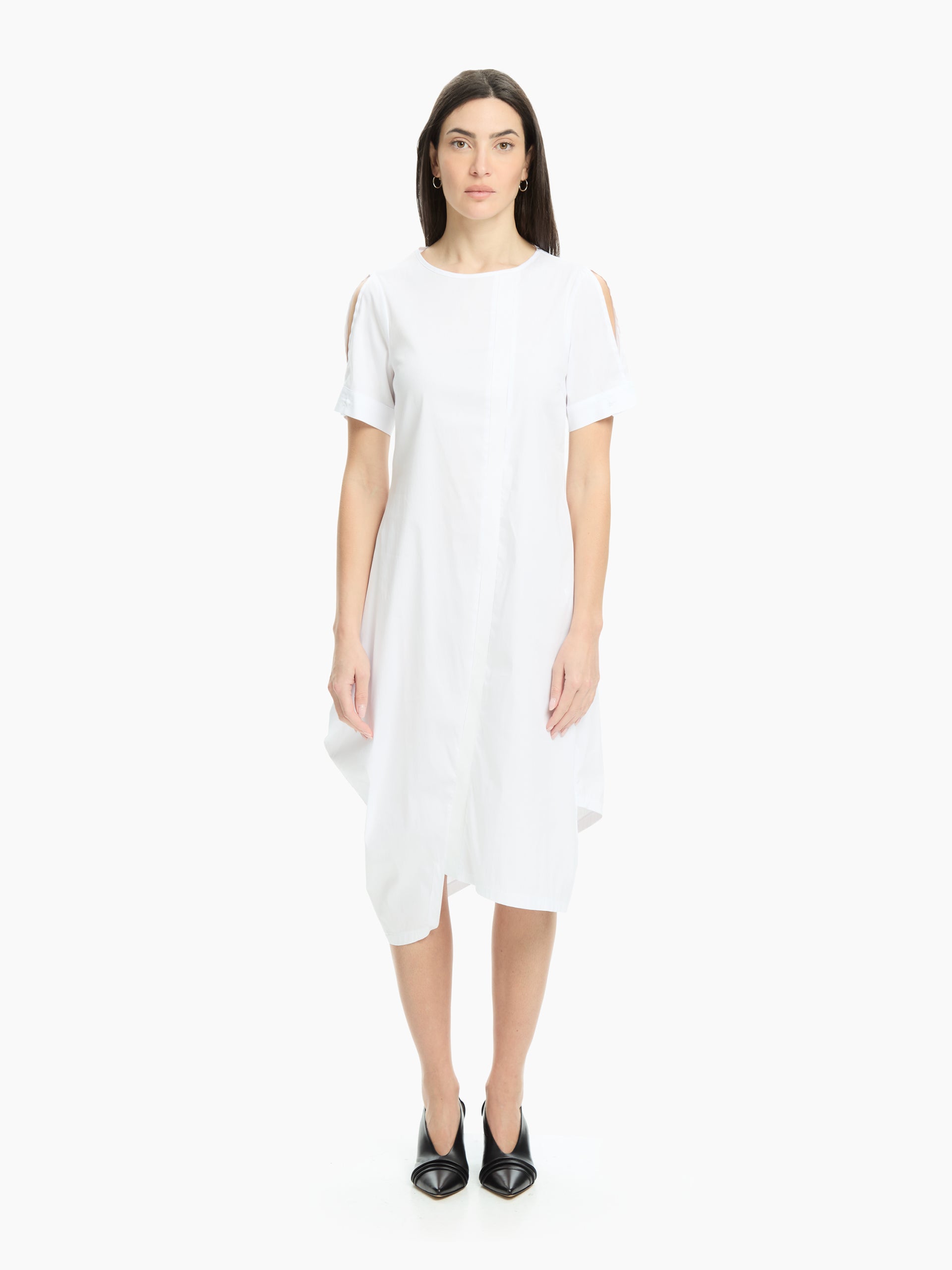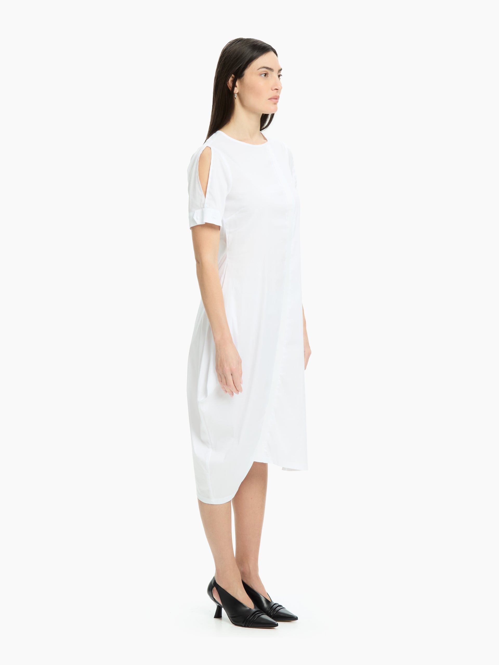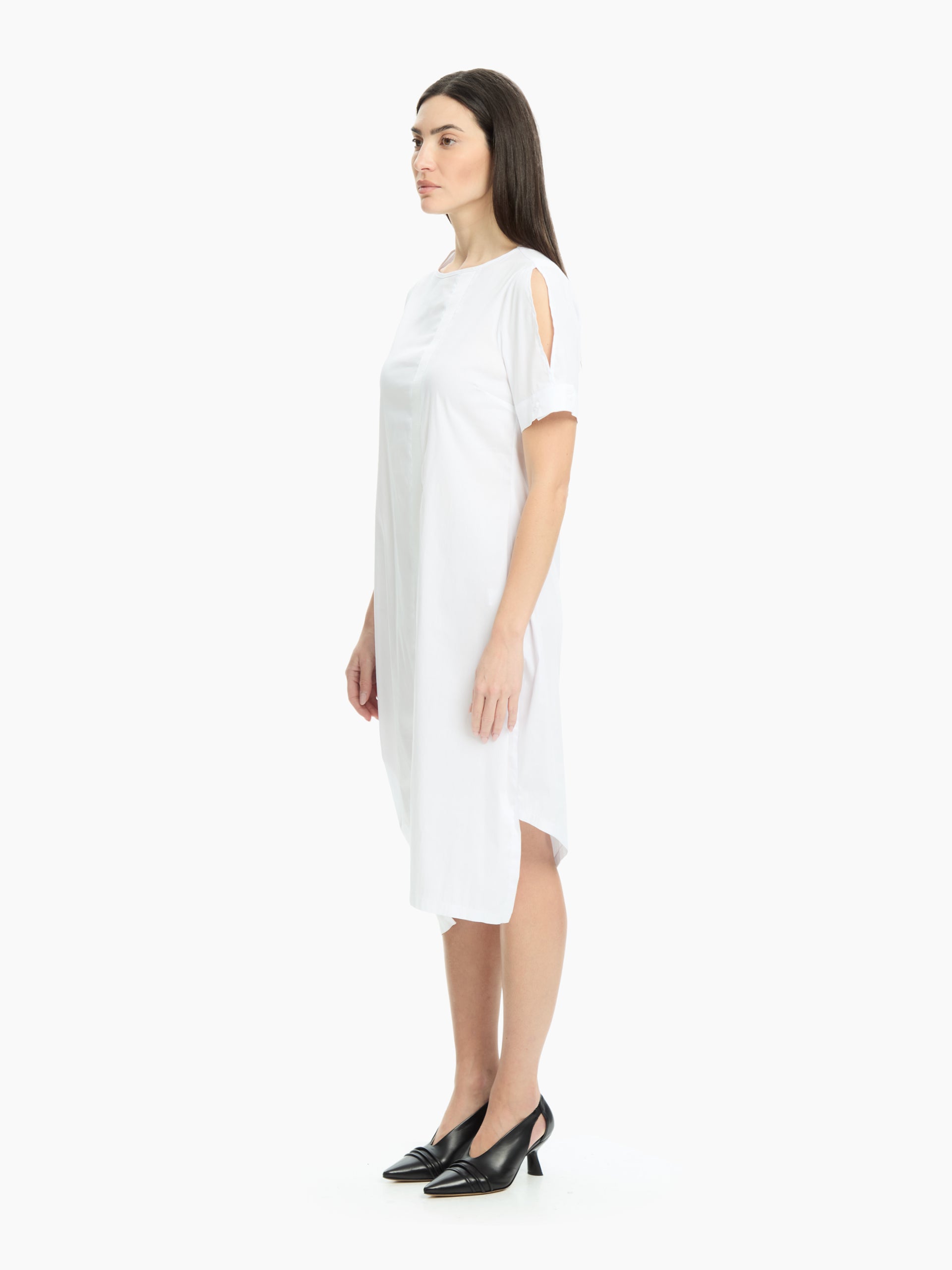 Abito con cut out sulle maniche. Cucitura verticale sulla struttura frontale ed orlo arrotondato. Vestibilità regular.