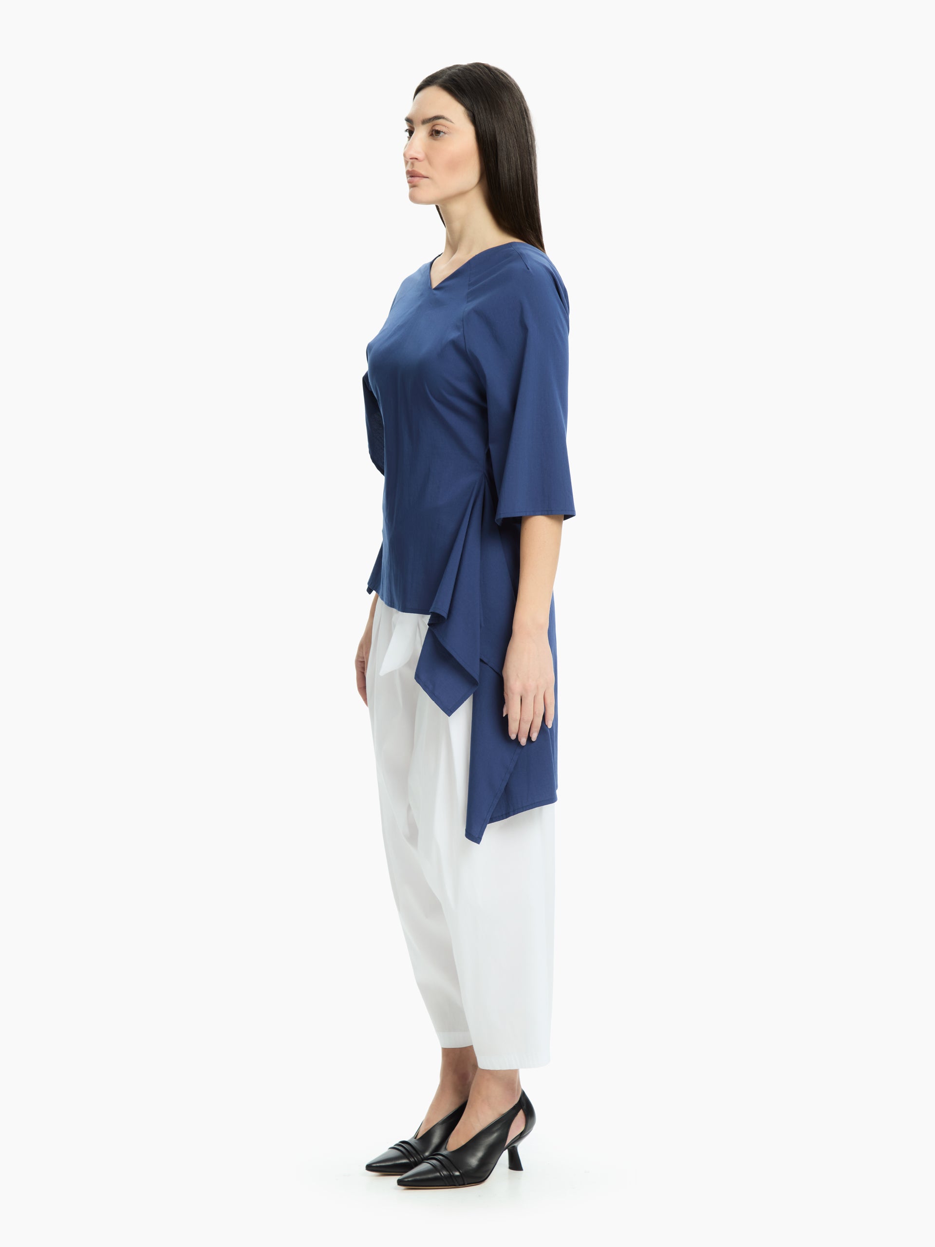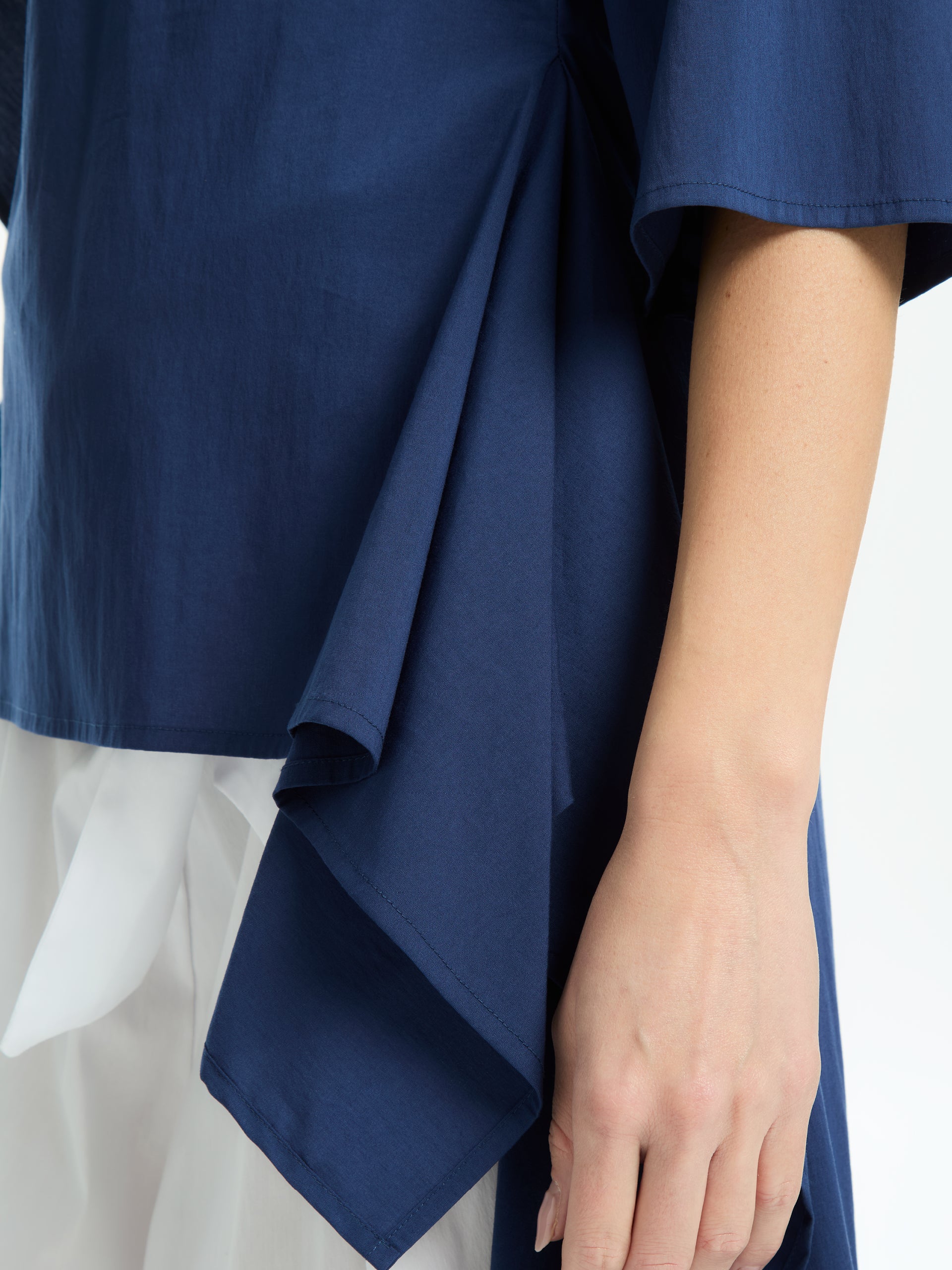 Blusa in misto cotone con scollo a V. Maniche ampie e costruzione asimmetrica con pannello drappeggiato sul fianco. Sul retro, profonda scollatura a V che aggiunge un tocco sofisticato. Vestibilità regular.
