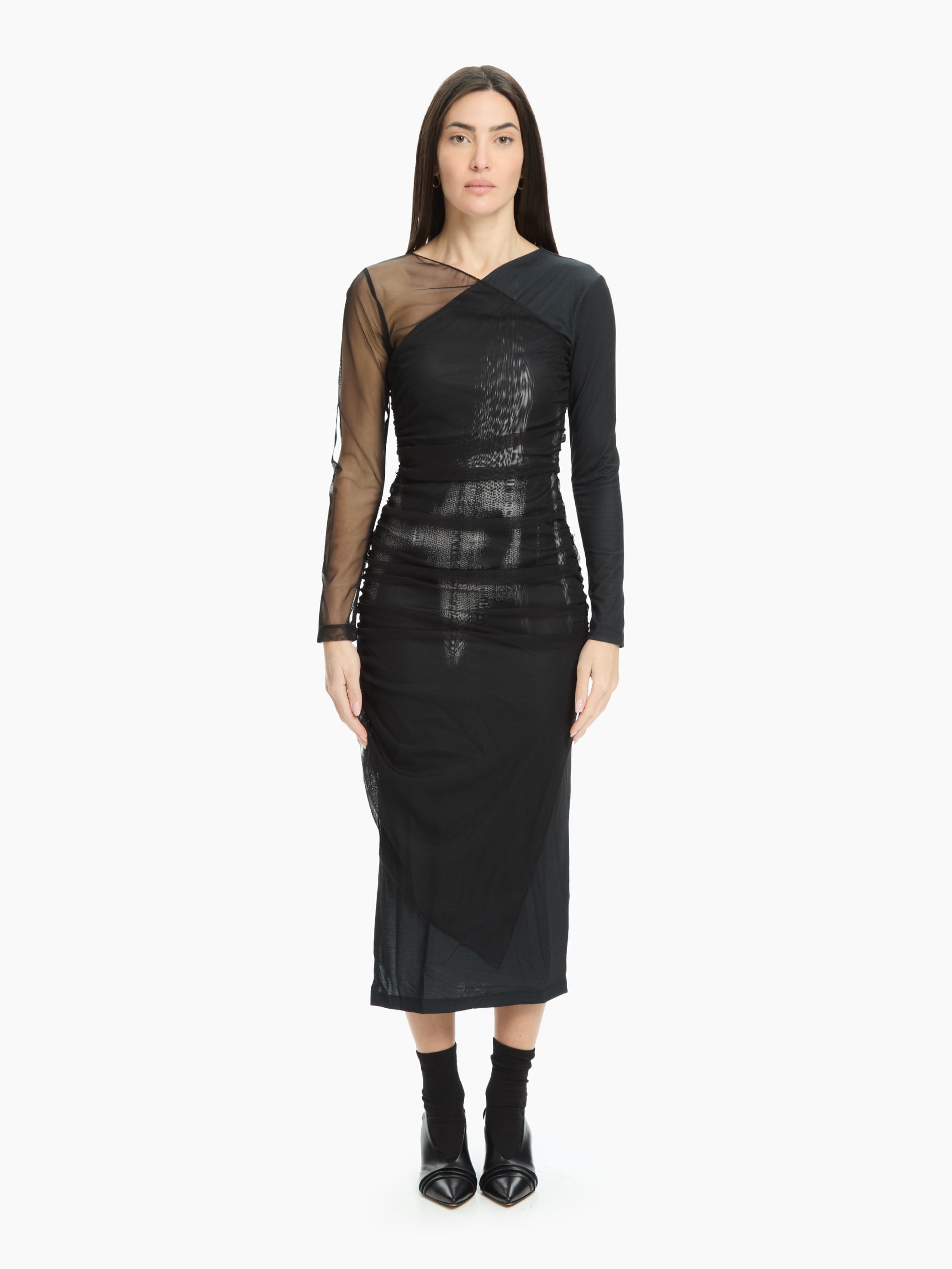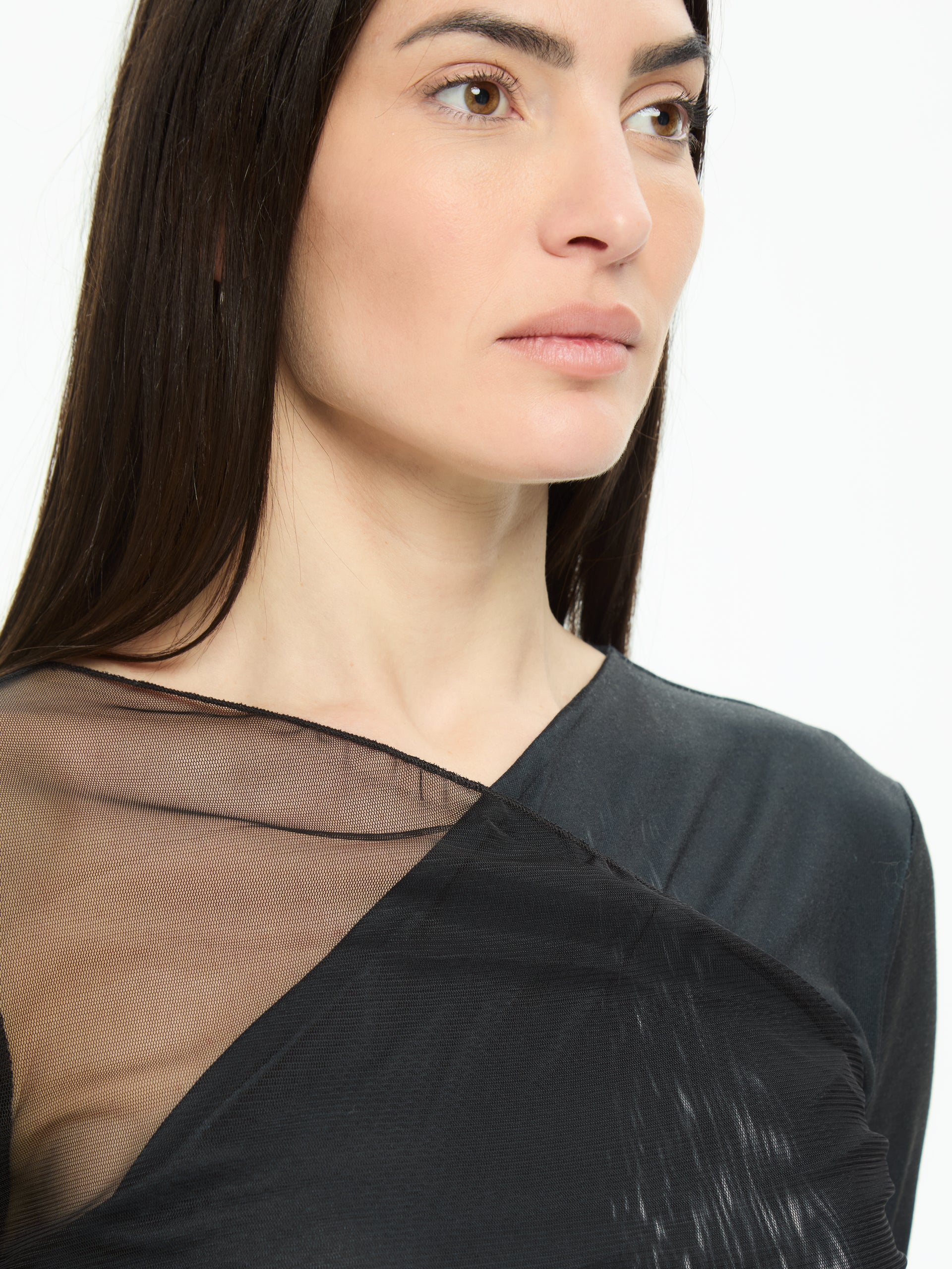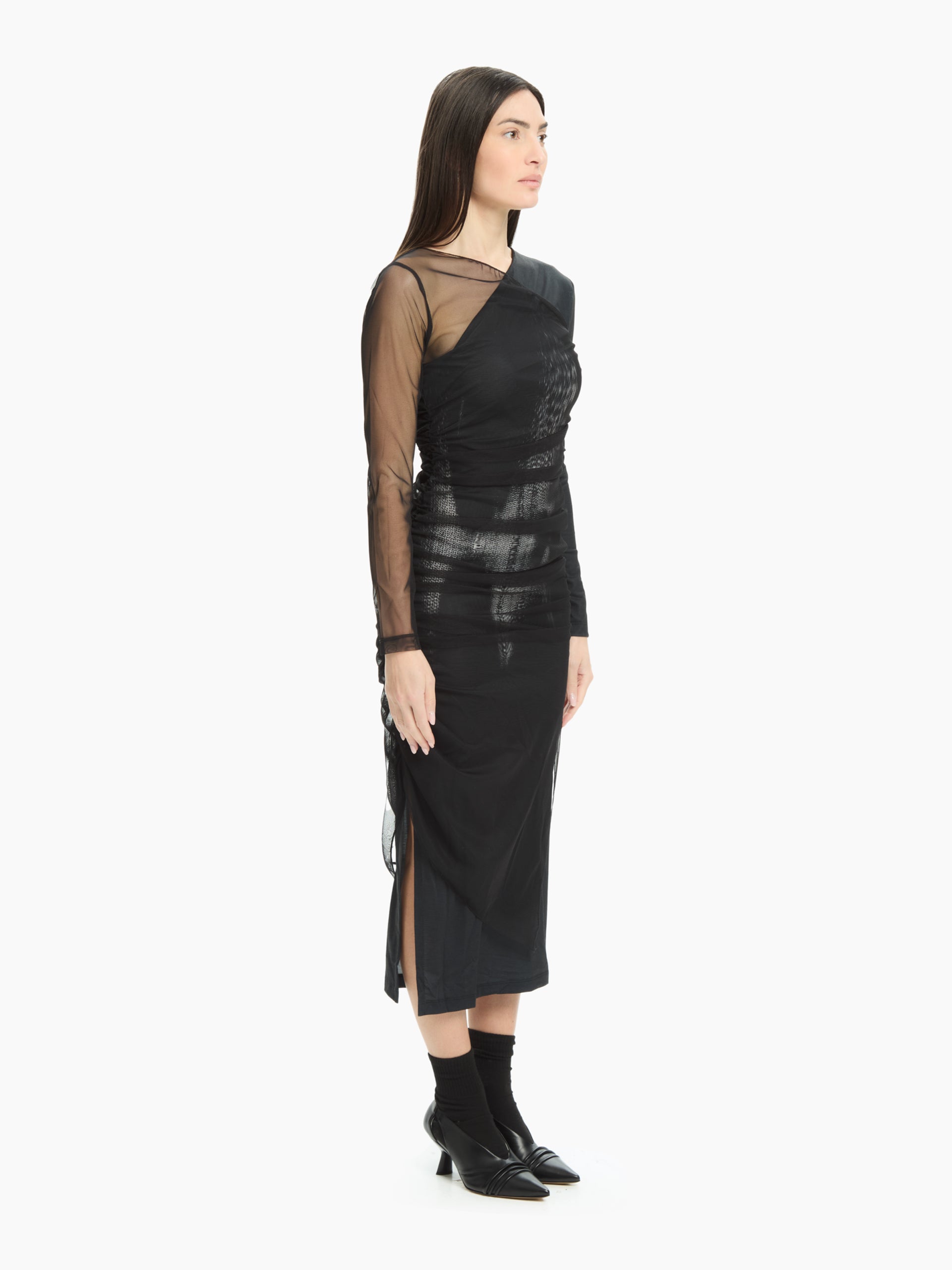 Abito in tessuto stretch con stampa astratta. Parte di abito in tulle. Vestibilità slim.