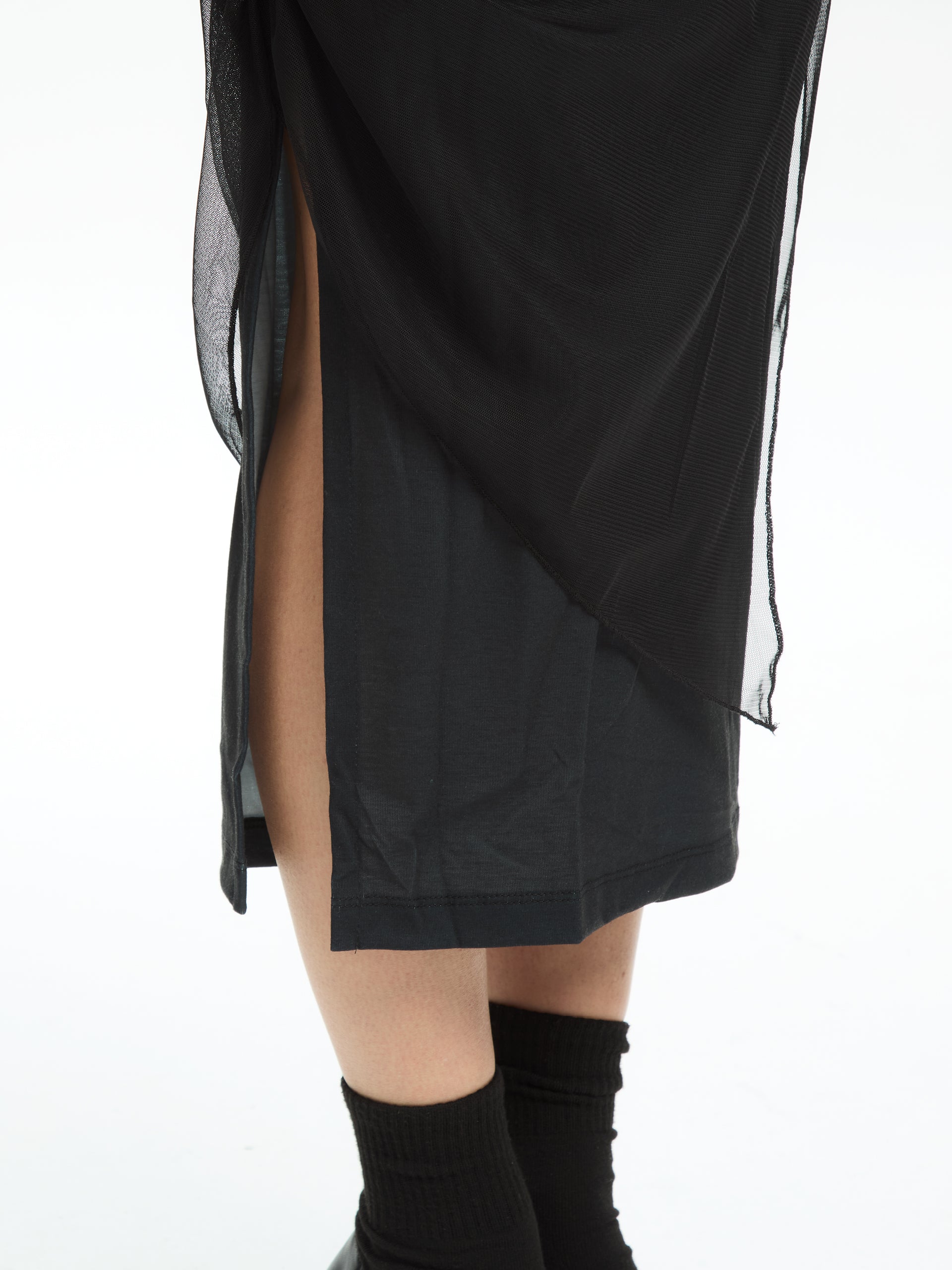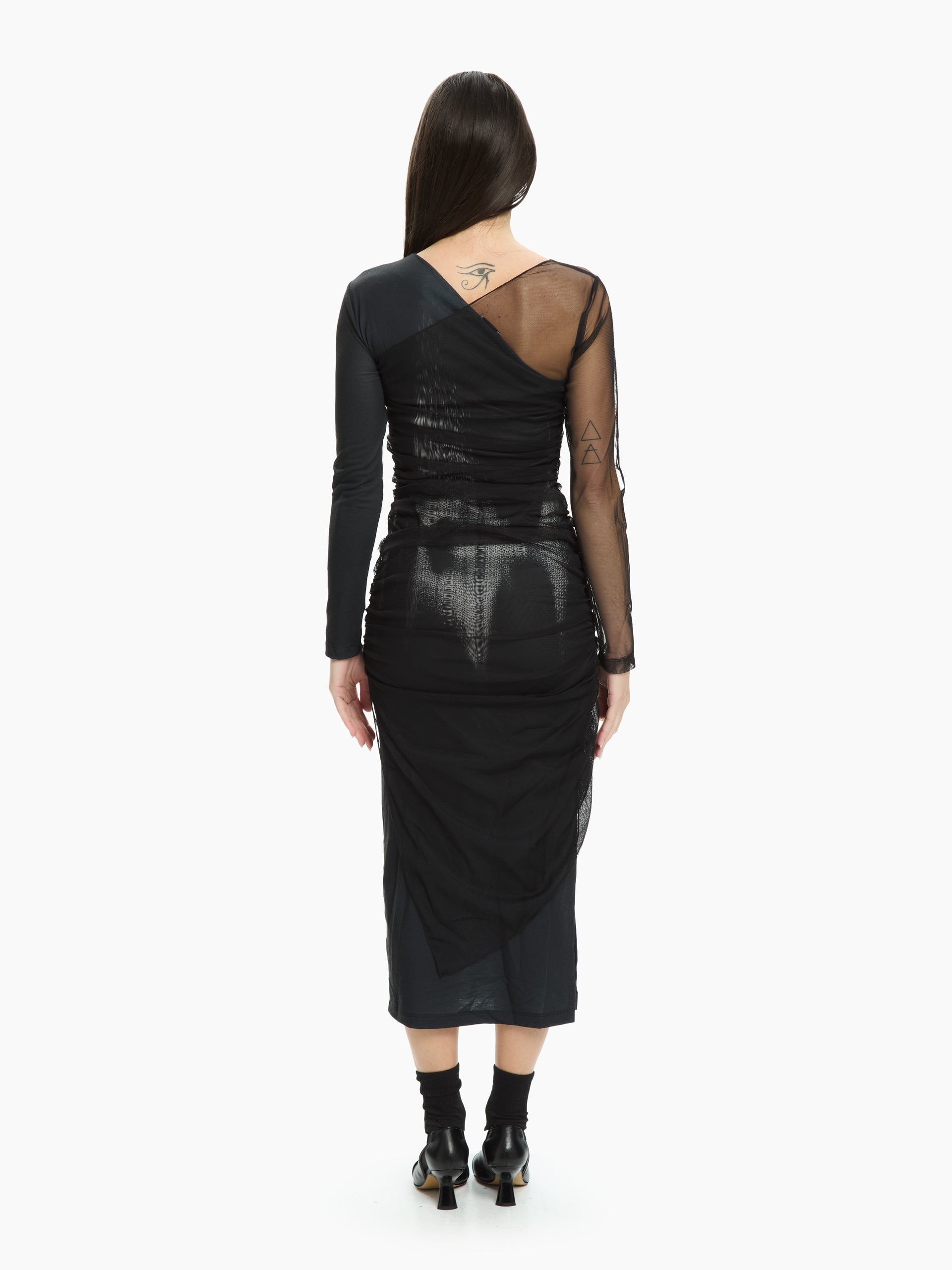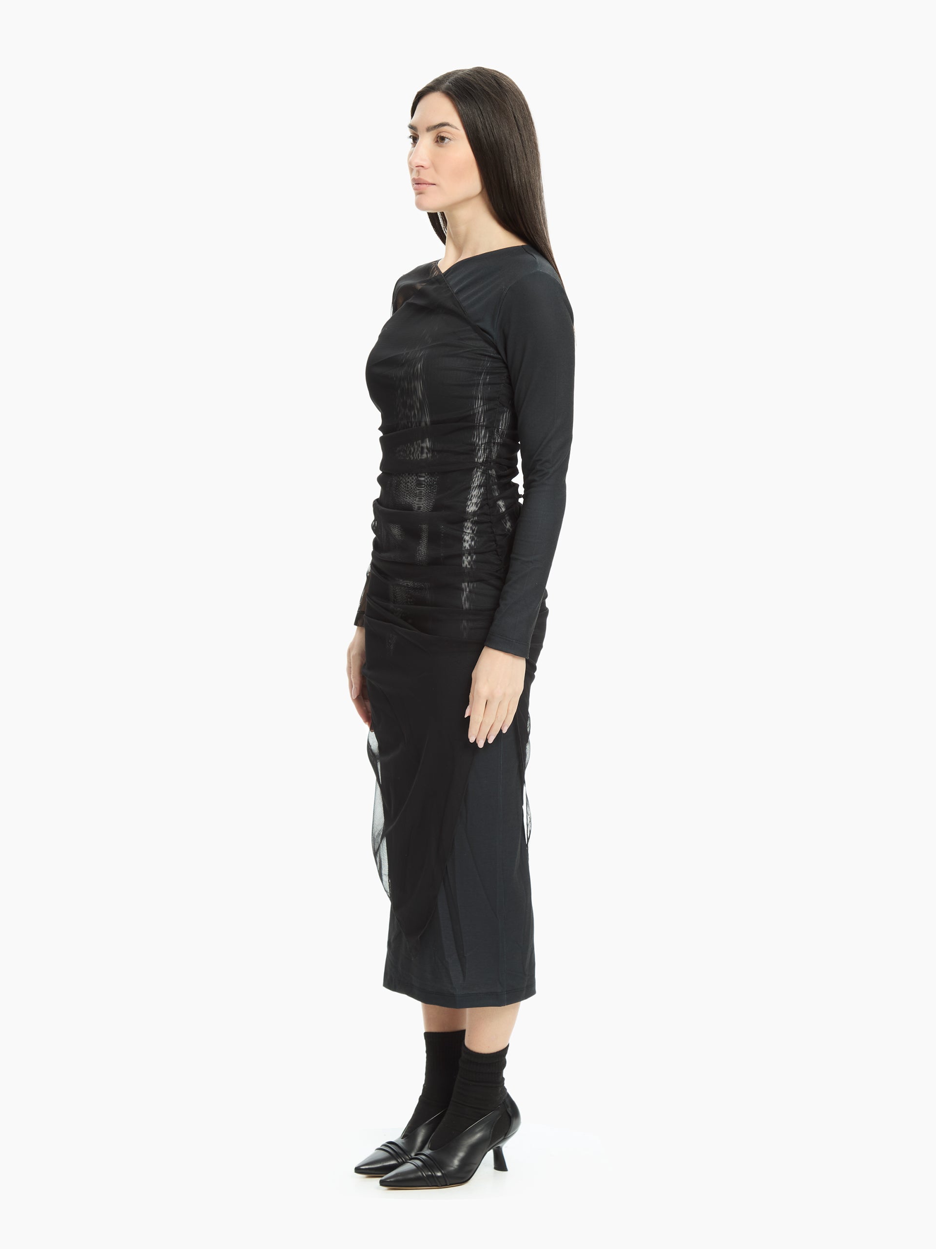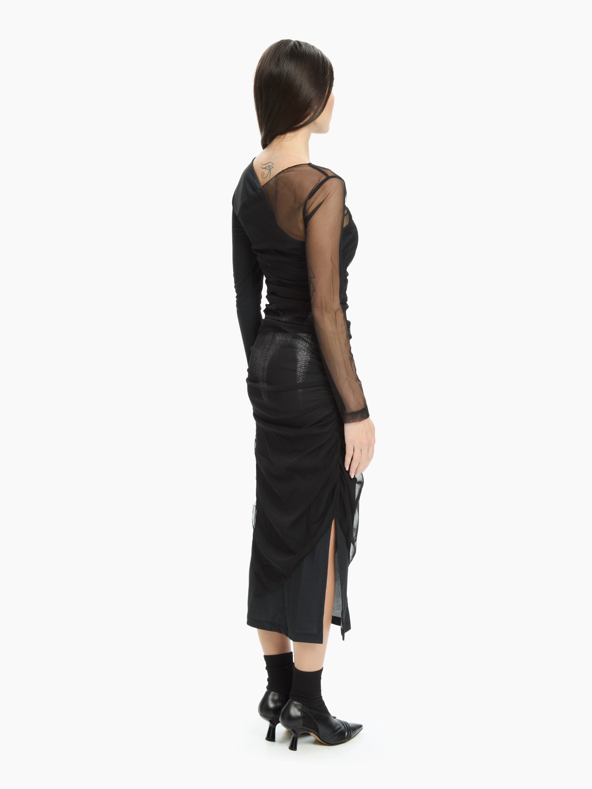 Abito in tessuto stretch con stampa astratta. Parte di abito in tulle. Vestibilità slim.