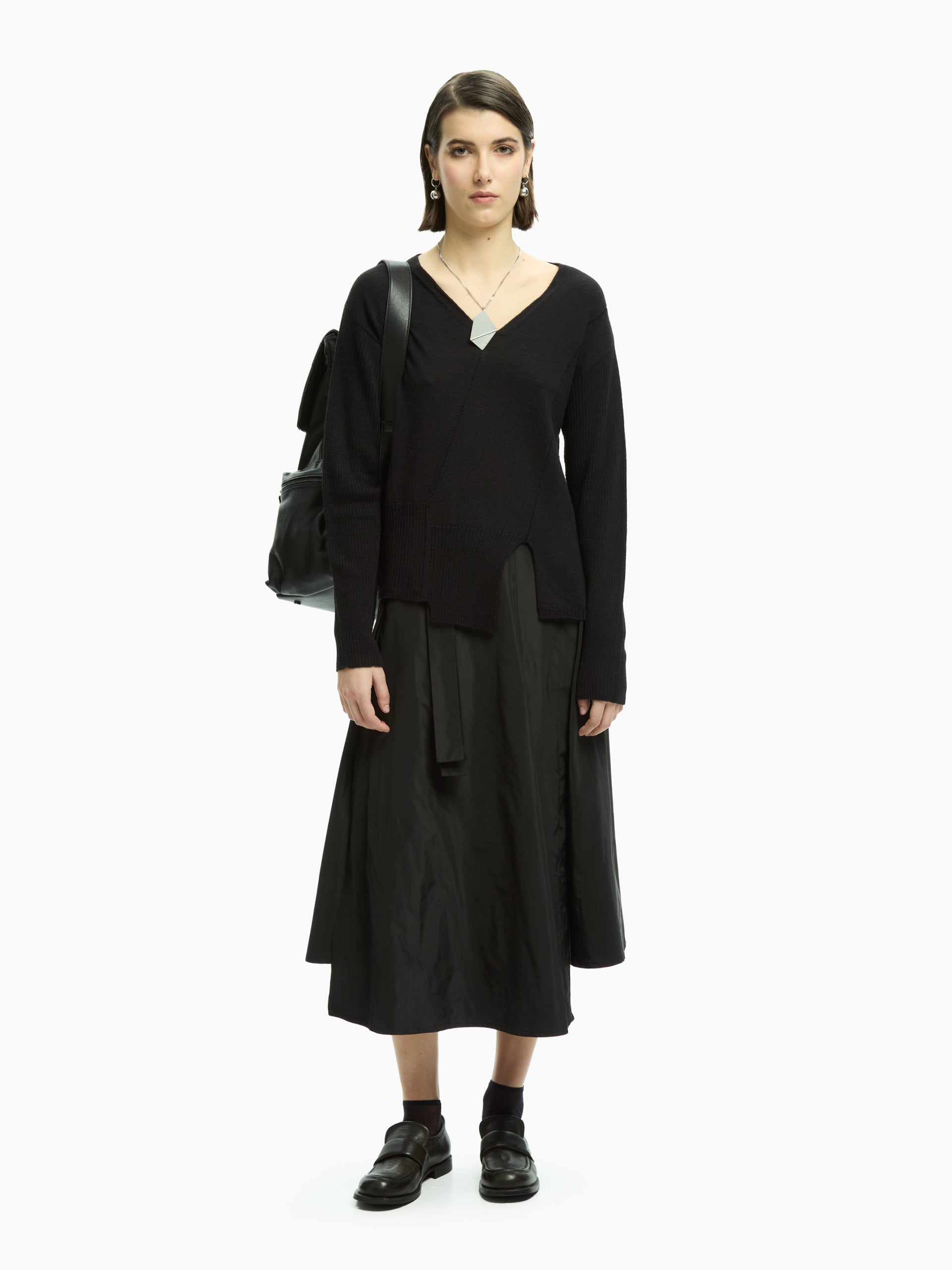 - Pannello frontale con piega asimmetrica e dettaglio applicato