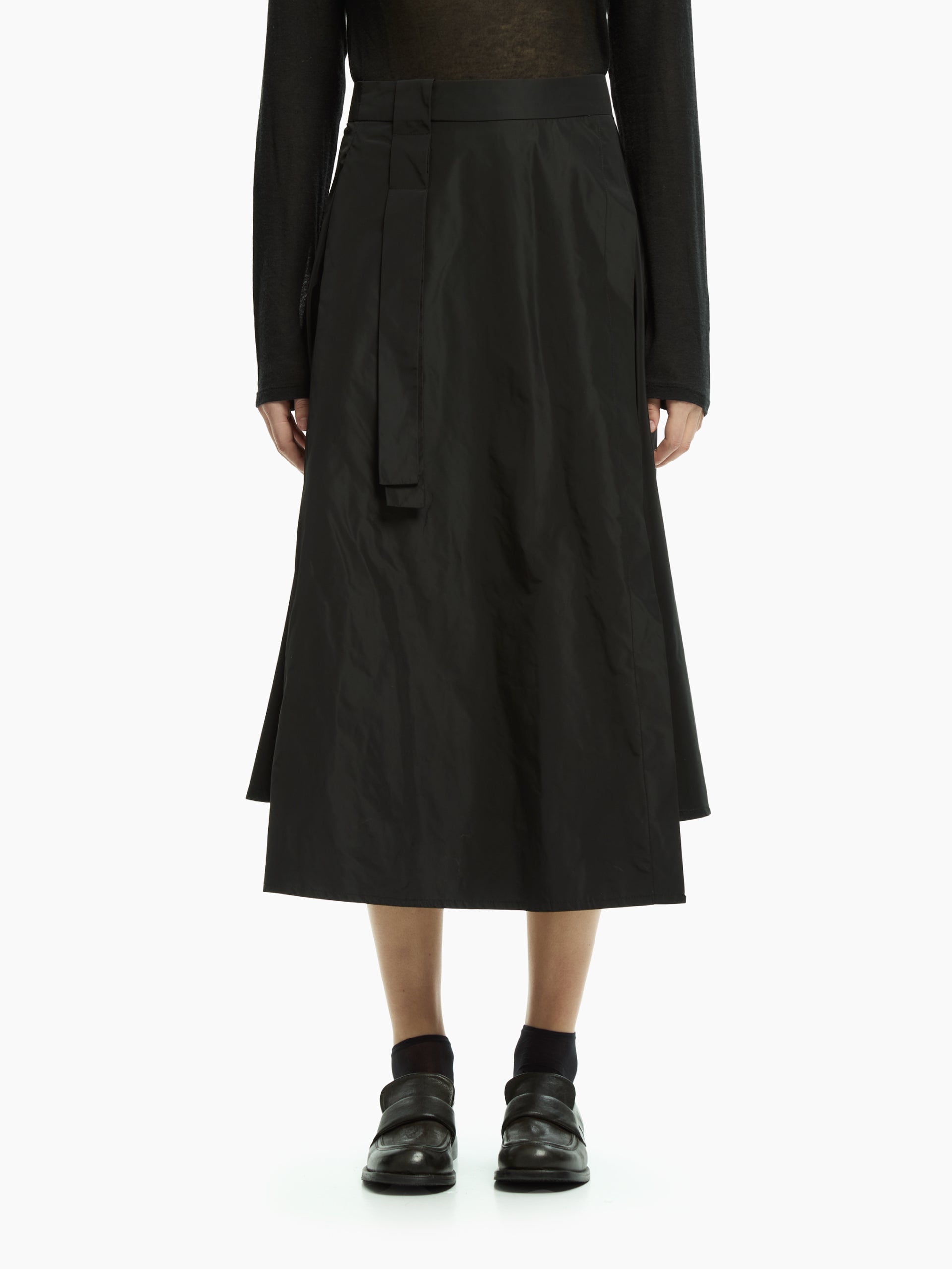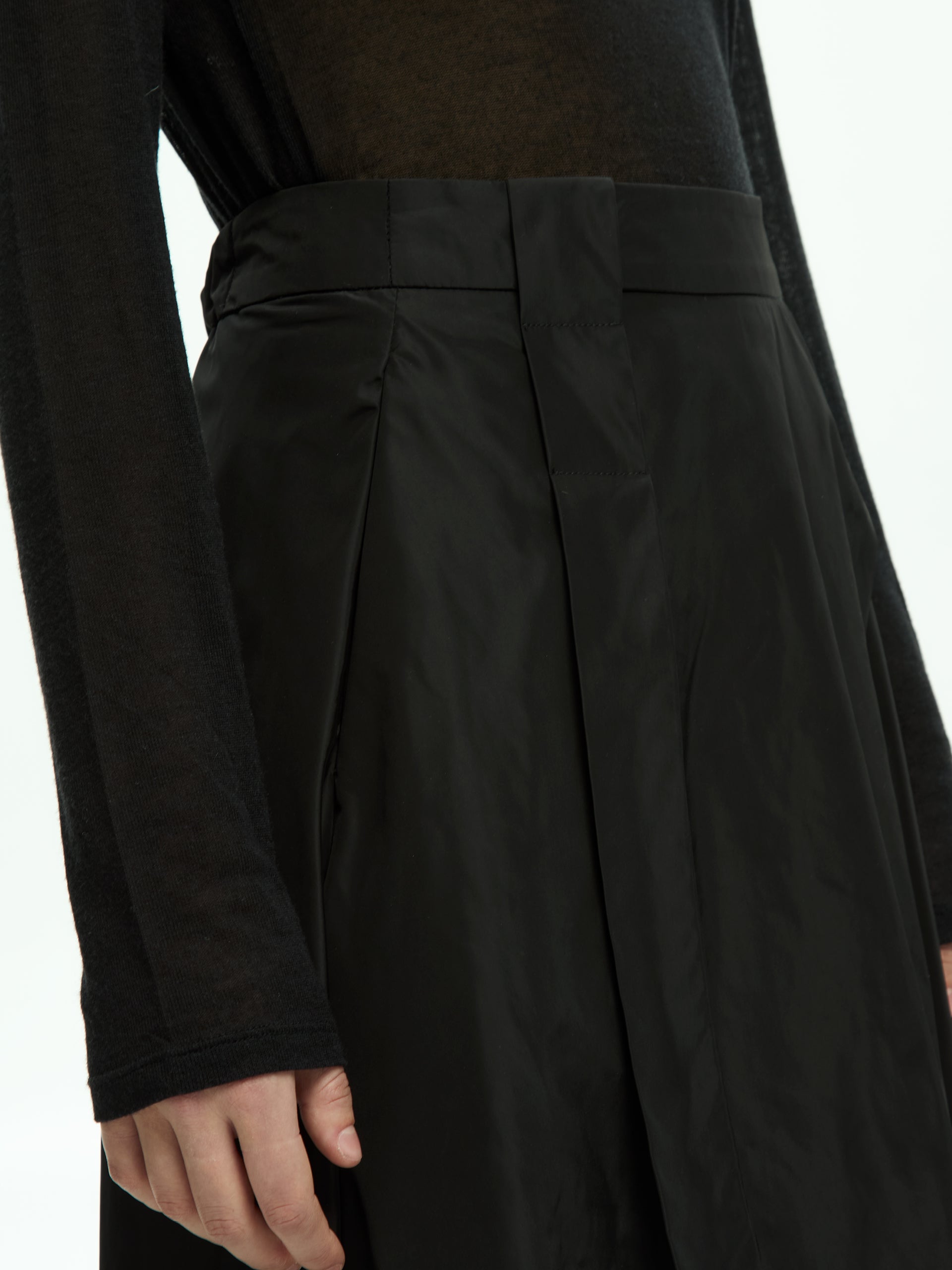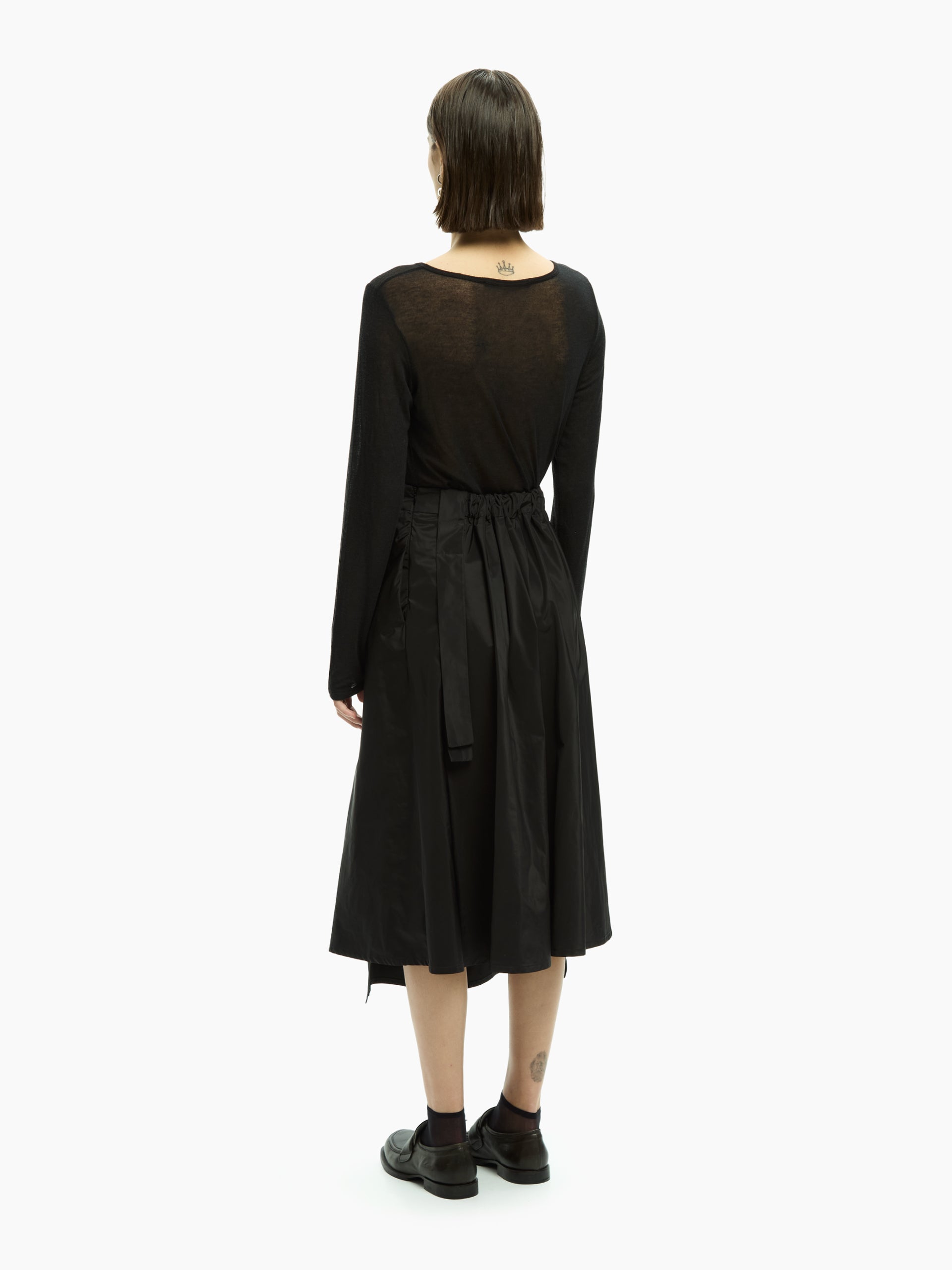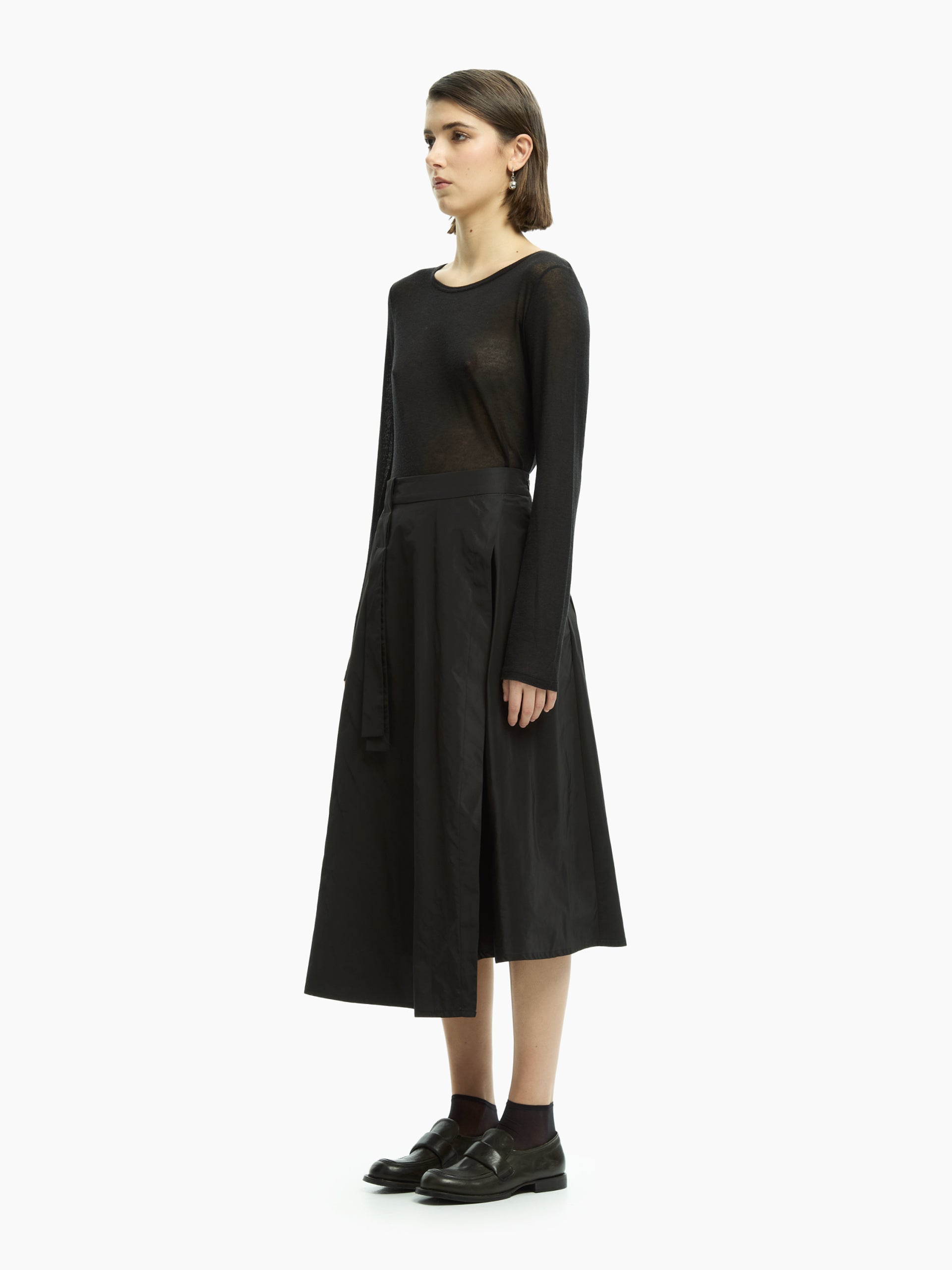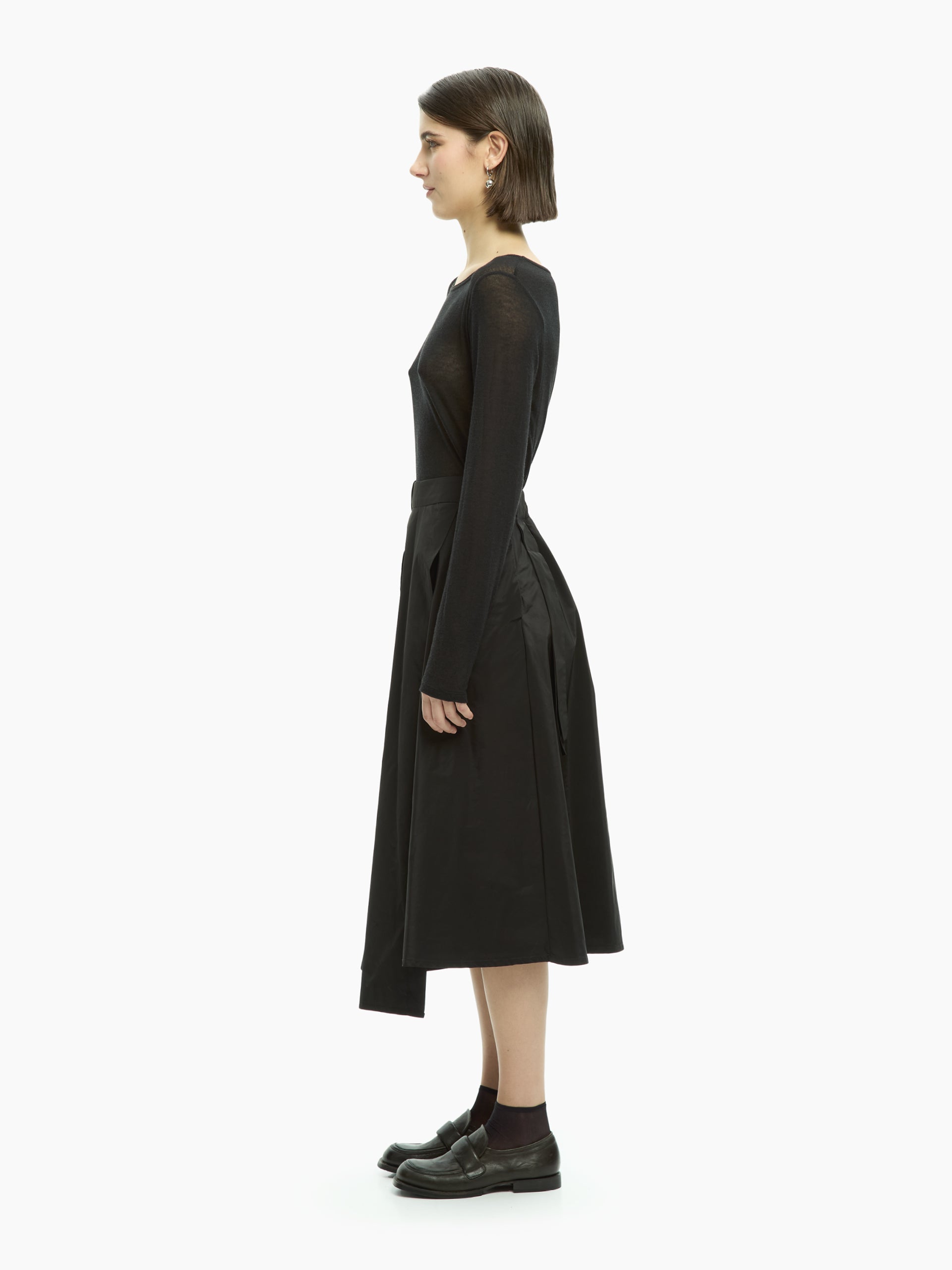 Questa gonna IXOS interpreta l’eleganza contemporanea con un tratto deciso e al tempo stesso fluido. La costruzione avvolgente e la morbida caduta del tessuto accompagnano i movimenti con naturalezza.