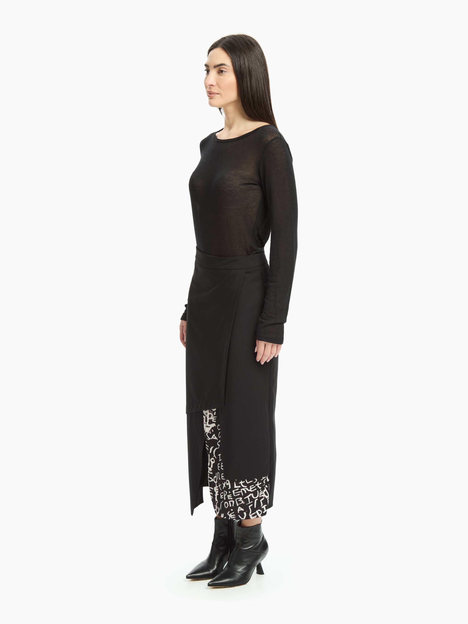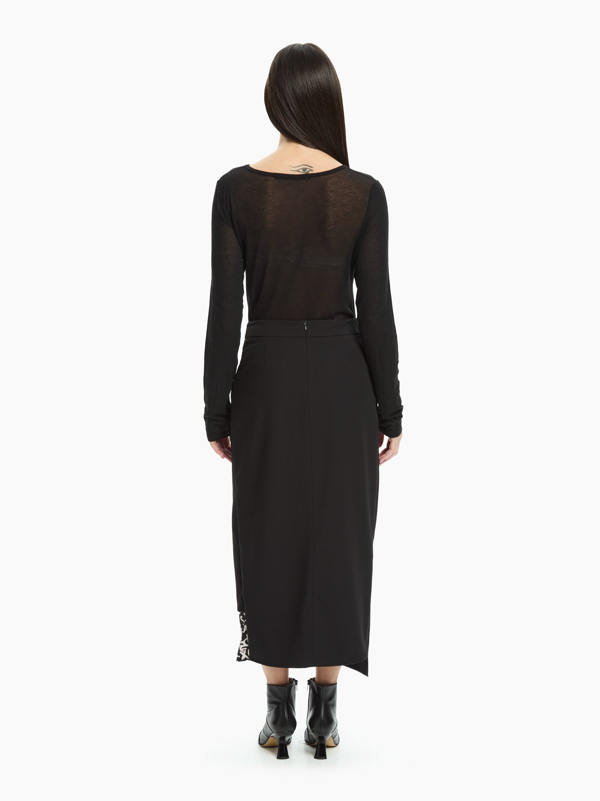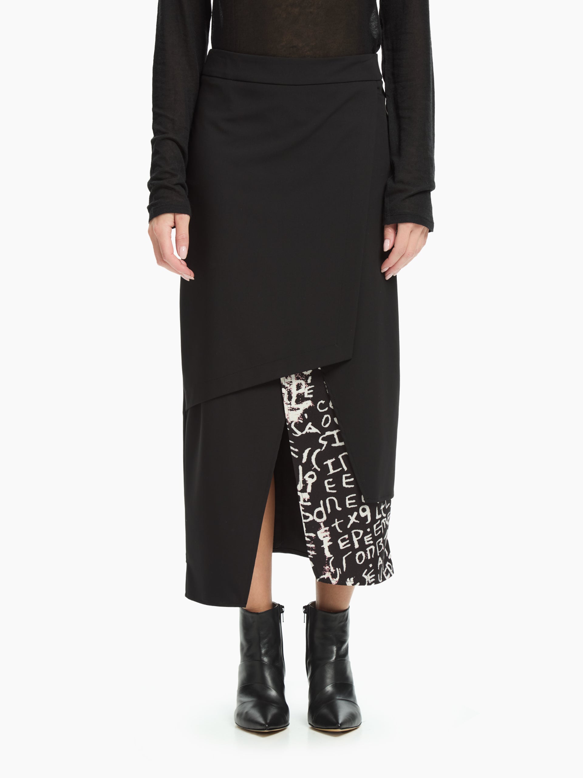 Gonna midi con pannelli sovrapposti e spacco frontale