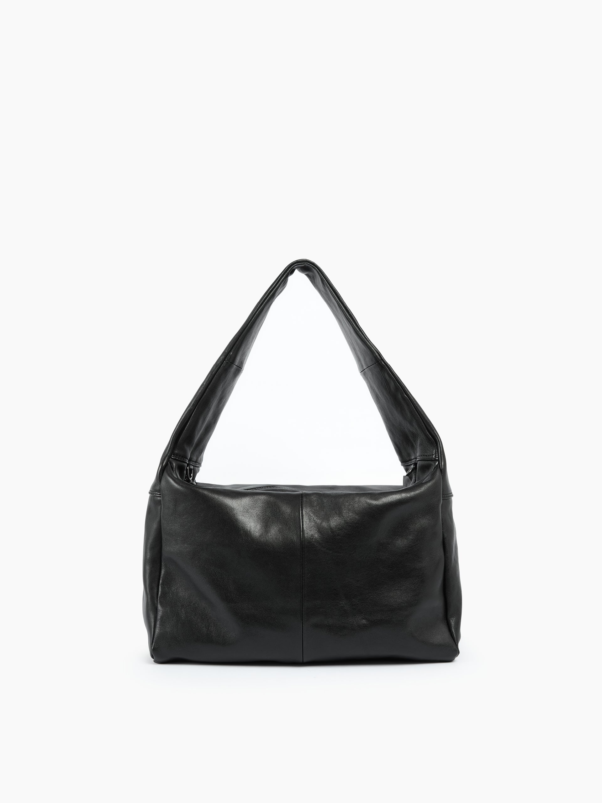 Borsa in pelle dalla linea ampia e destrutturata, caratterizzata da un design essenziale che esalta la naturale morbidezza del materiale. Il manico unico e avvolgente assicura una portabilità comoda sulla spalla.
