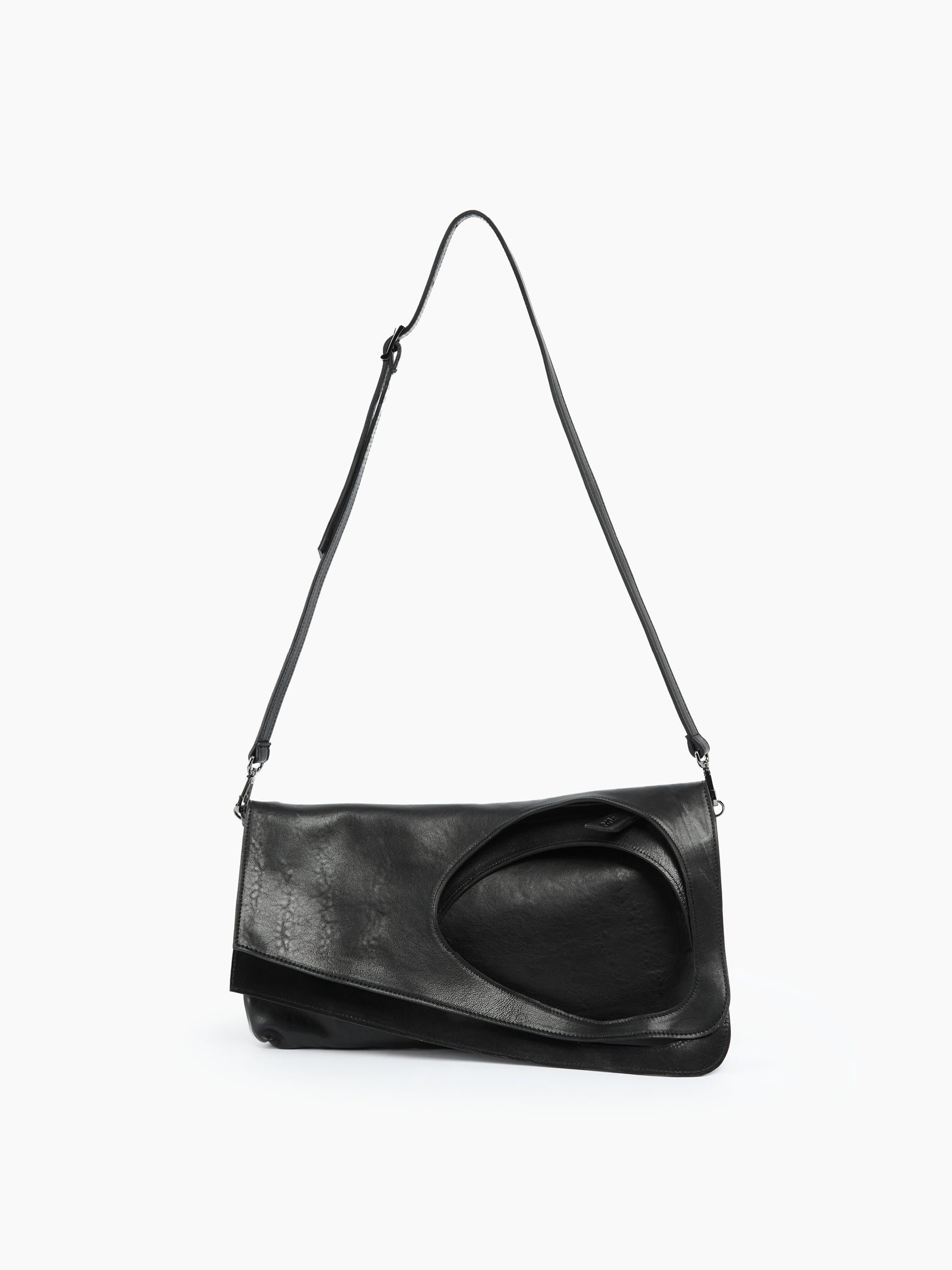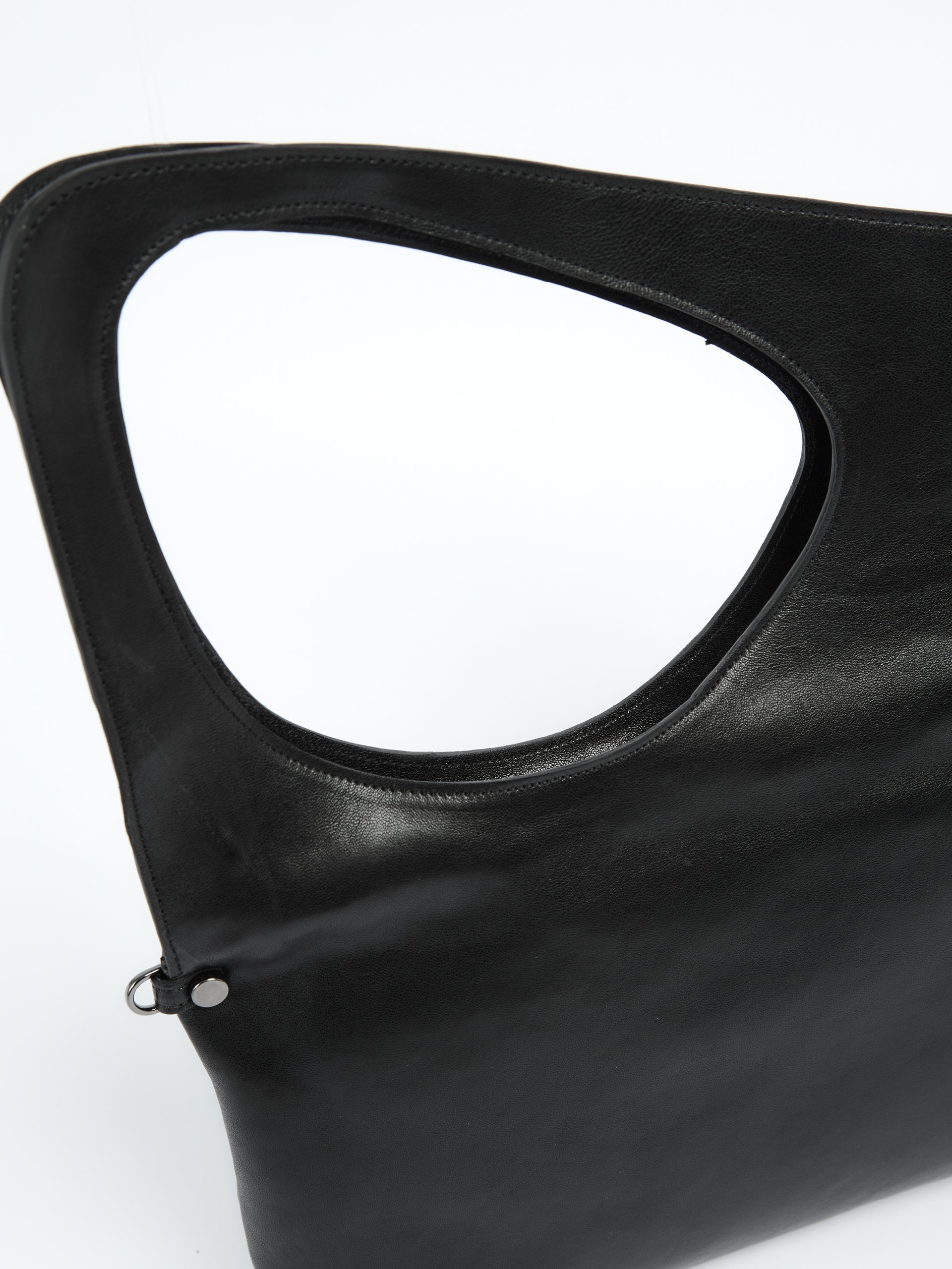 Borsa in morbida pelle dal design moderno e destrutturato, caratterizzata da un ampio manico integrato che crea una silhouette originale e contemporanea. La linea pulita la rende versatile e adatta a diverse occasioni.