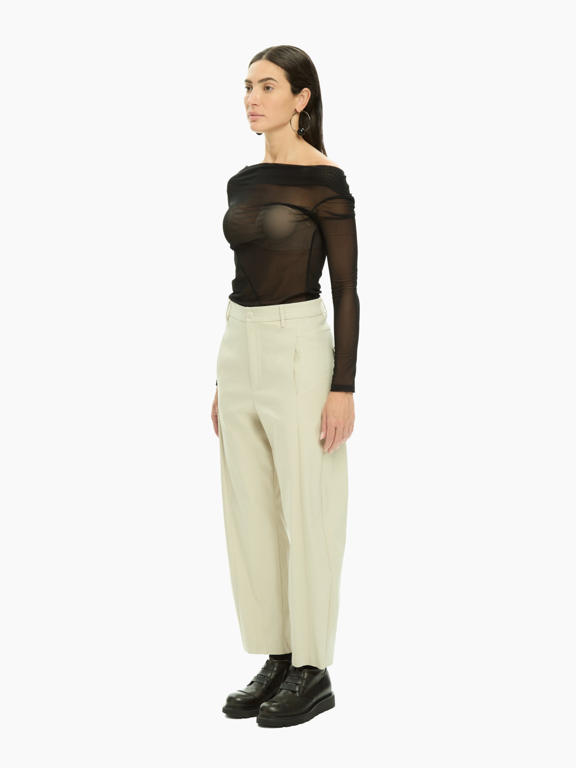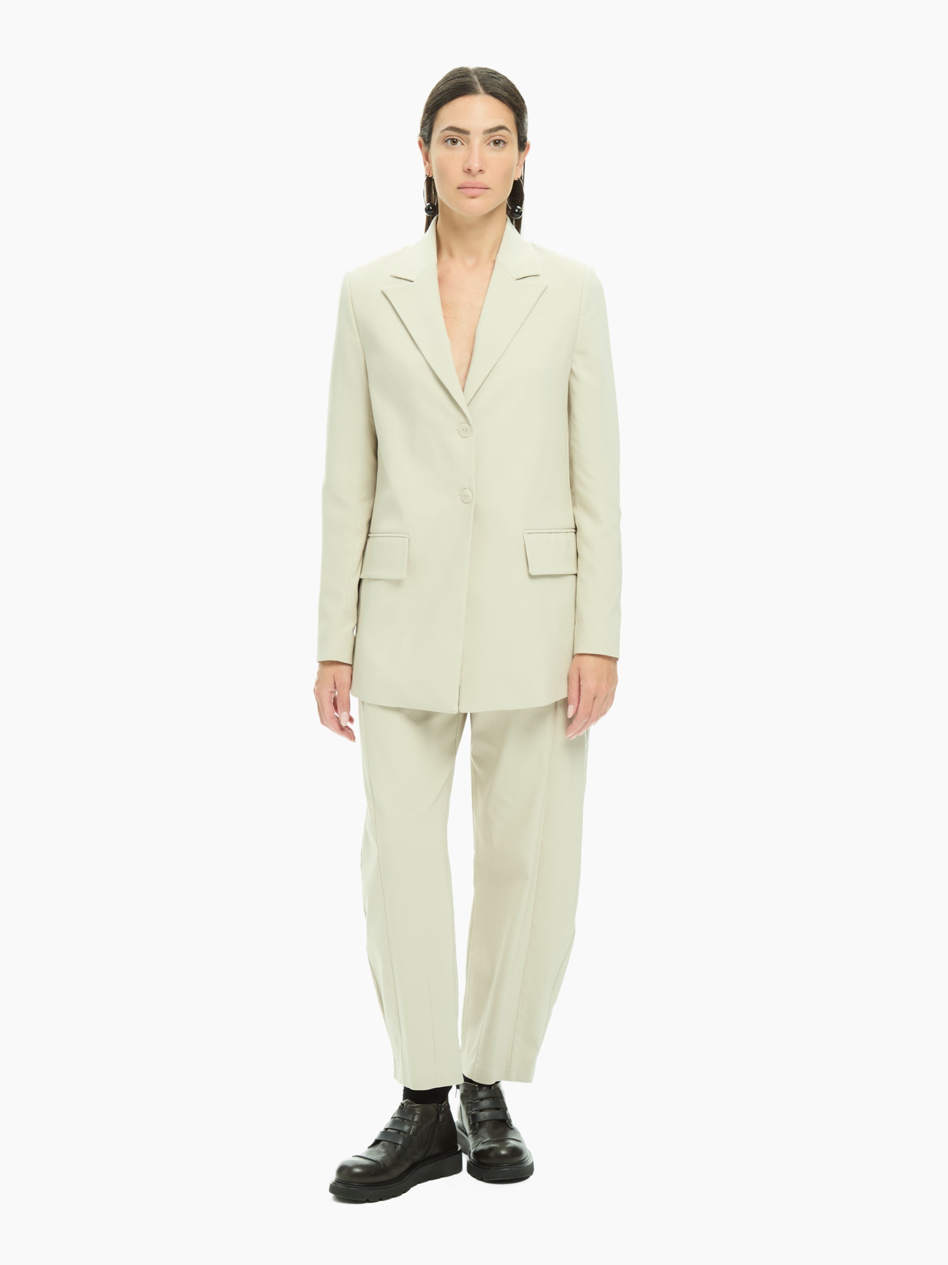 Clean and refined, these contemporary-cut trousers interpret everyday elegance with an essential line and balanced proportions. The light shade adds brightness and versatility, making them ideal for day or evening looks.
