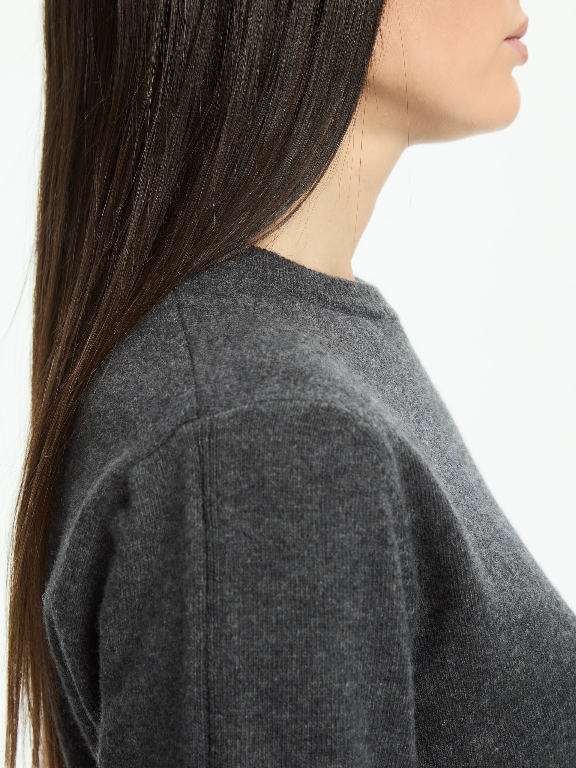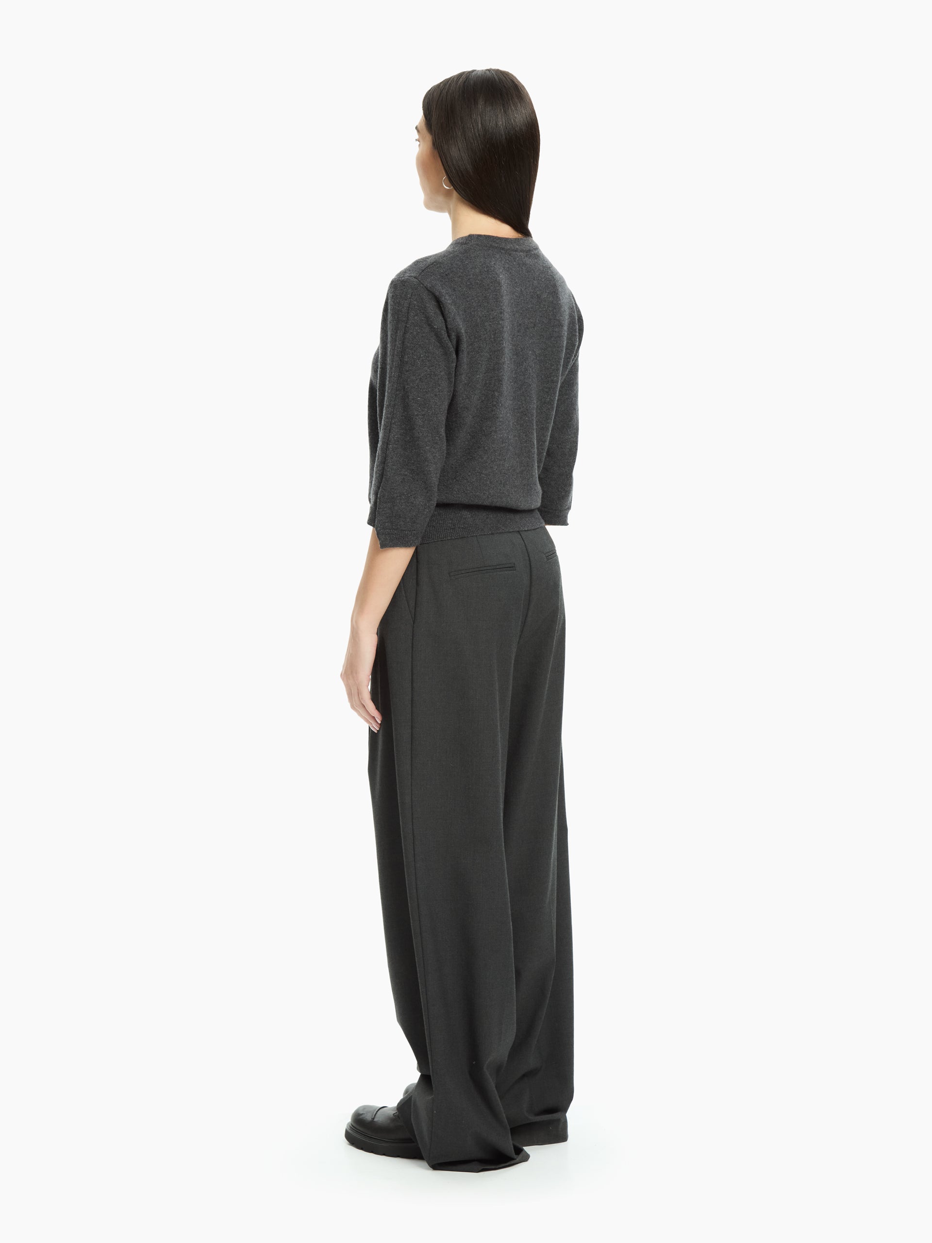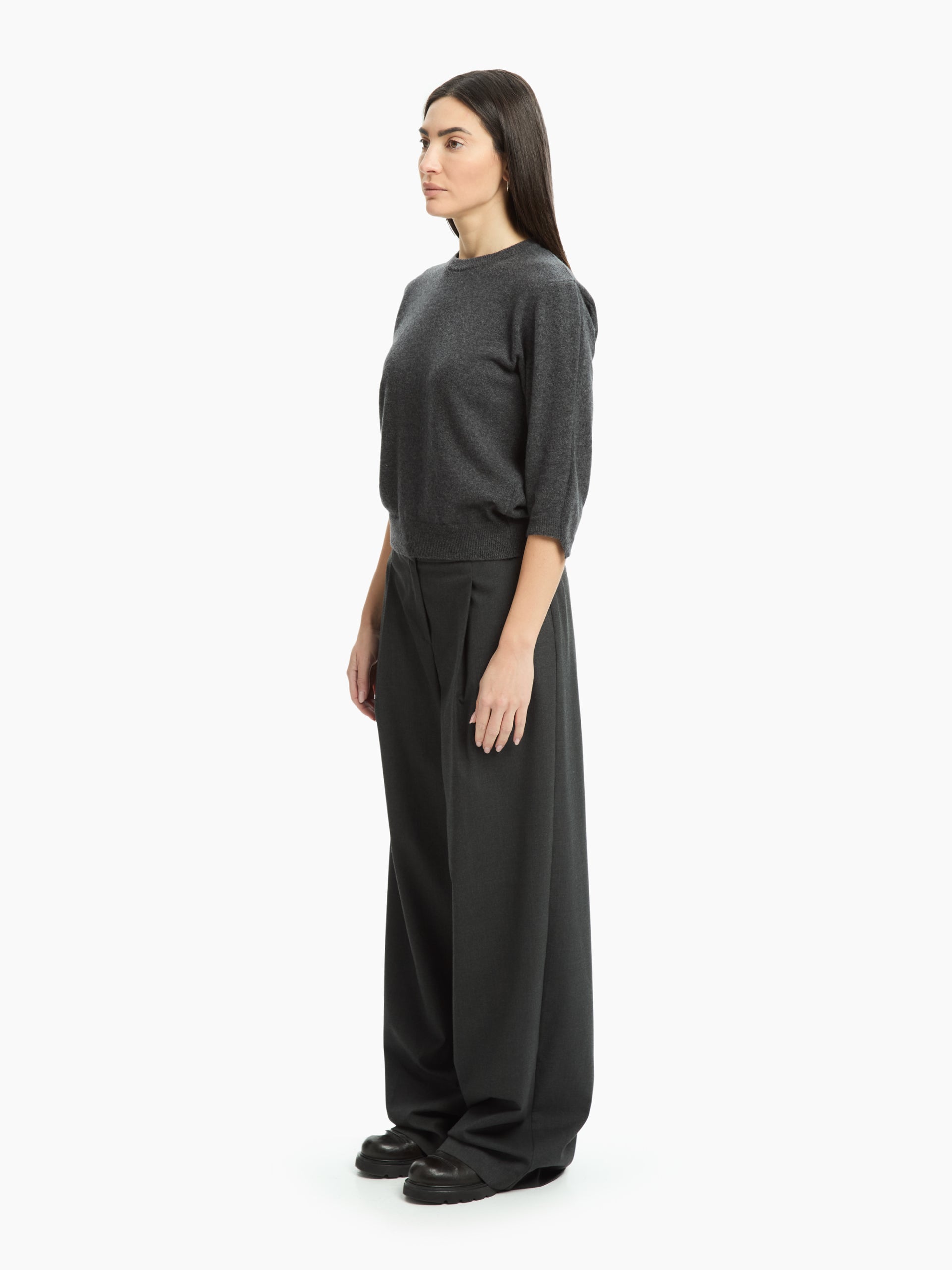 A simple yet sophisticated jumper, made from fine yarn for softness and comfort. The three-quarter sleeves and clean lines give it a relaxed elegance, ideal for creating contemporary and versatile looks. The ribbed hem, collar and cuffs define the design with understated precision.