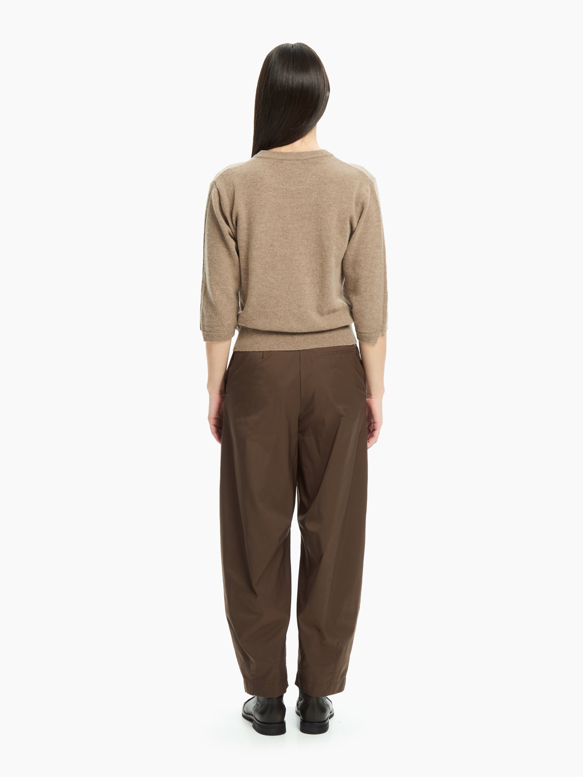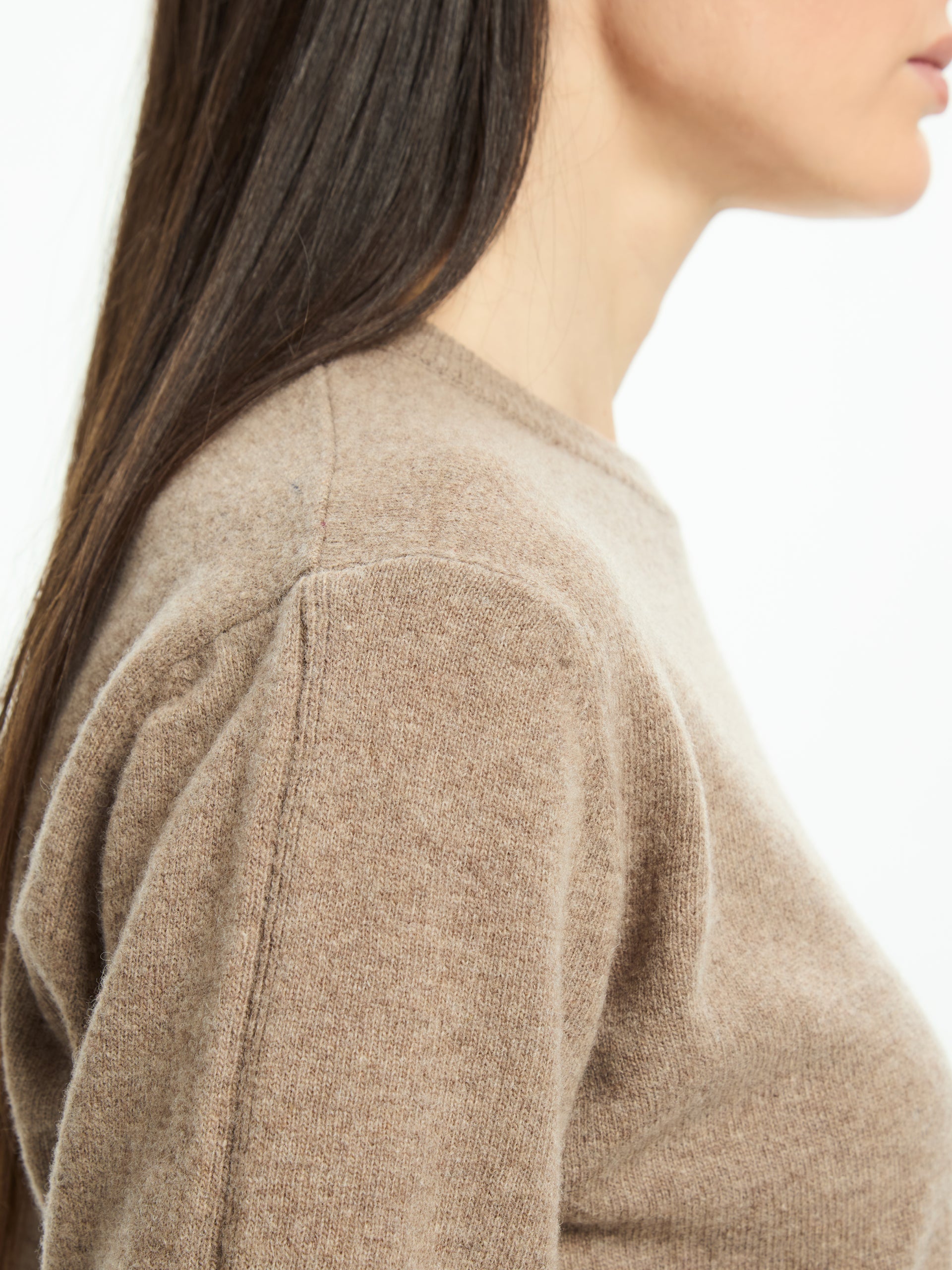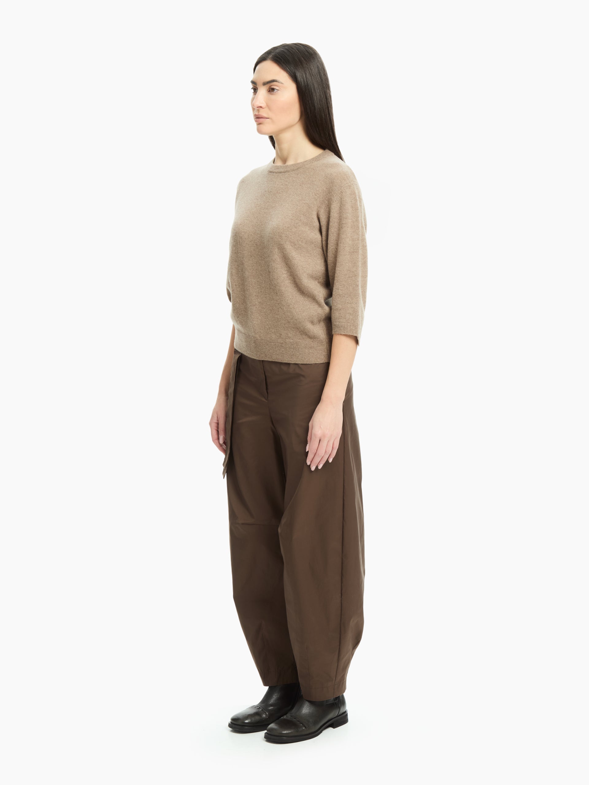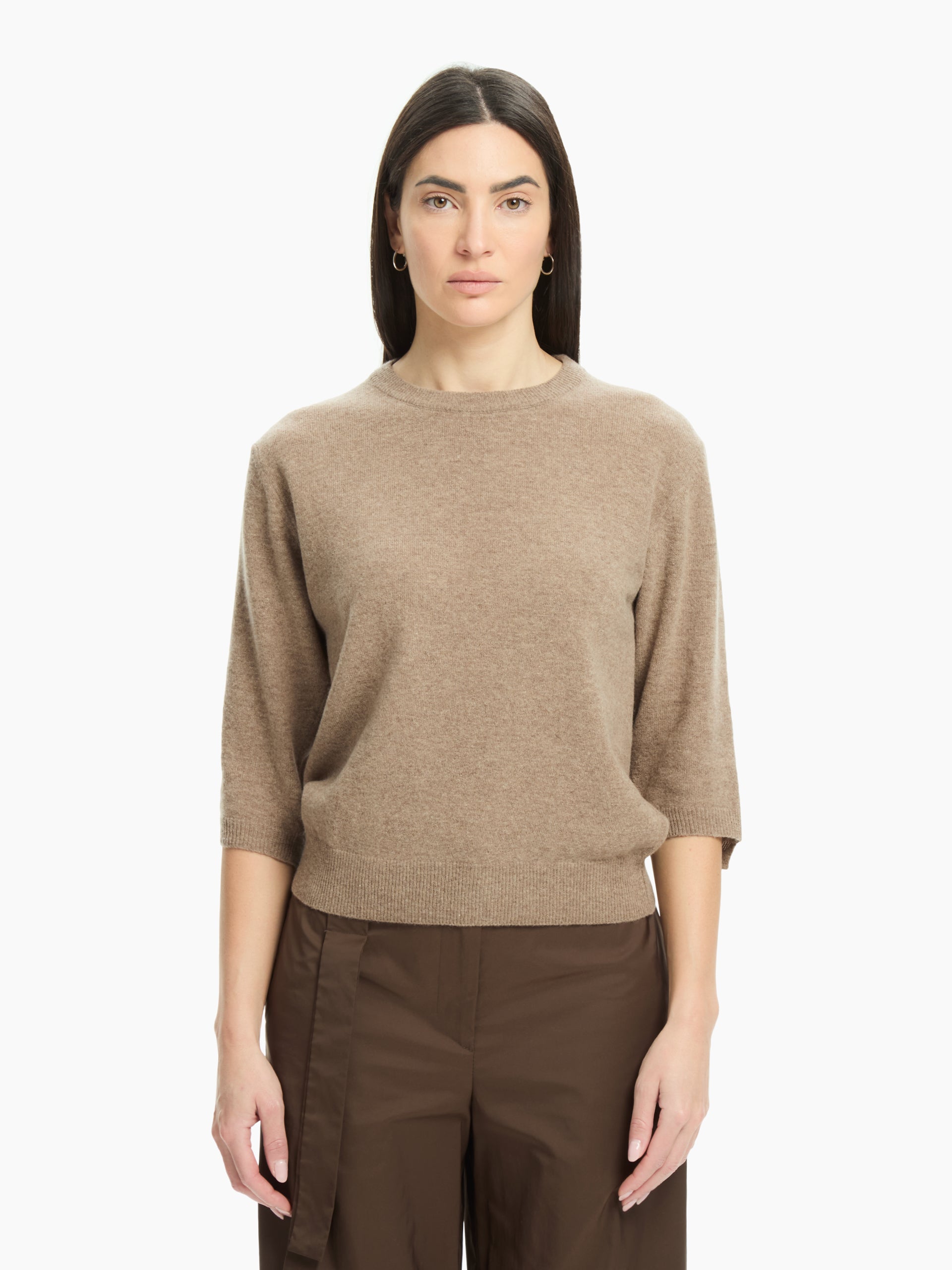 A simple yet sophisticated jumper, made from fine yarn for softness and comfort. The three-quarter sleeves and clean lines give it a relaxed elegance, ideal for creating contemporary and versatile looks. The ribbed hem, collar and cuffs define the design with understated precision.