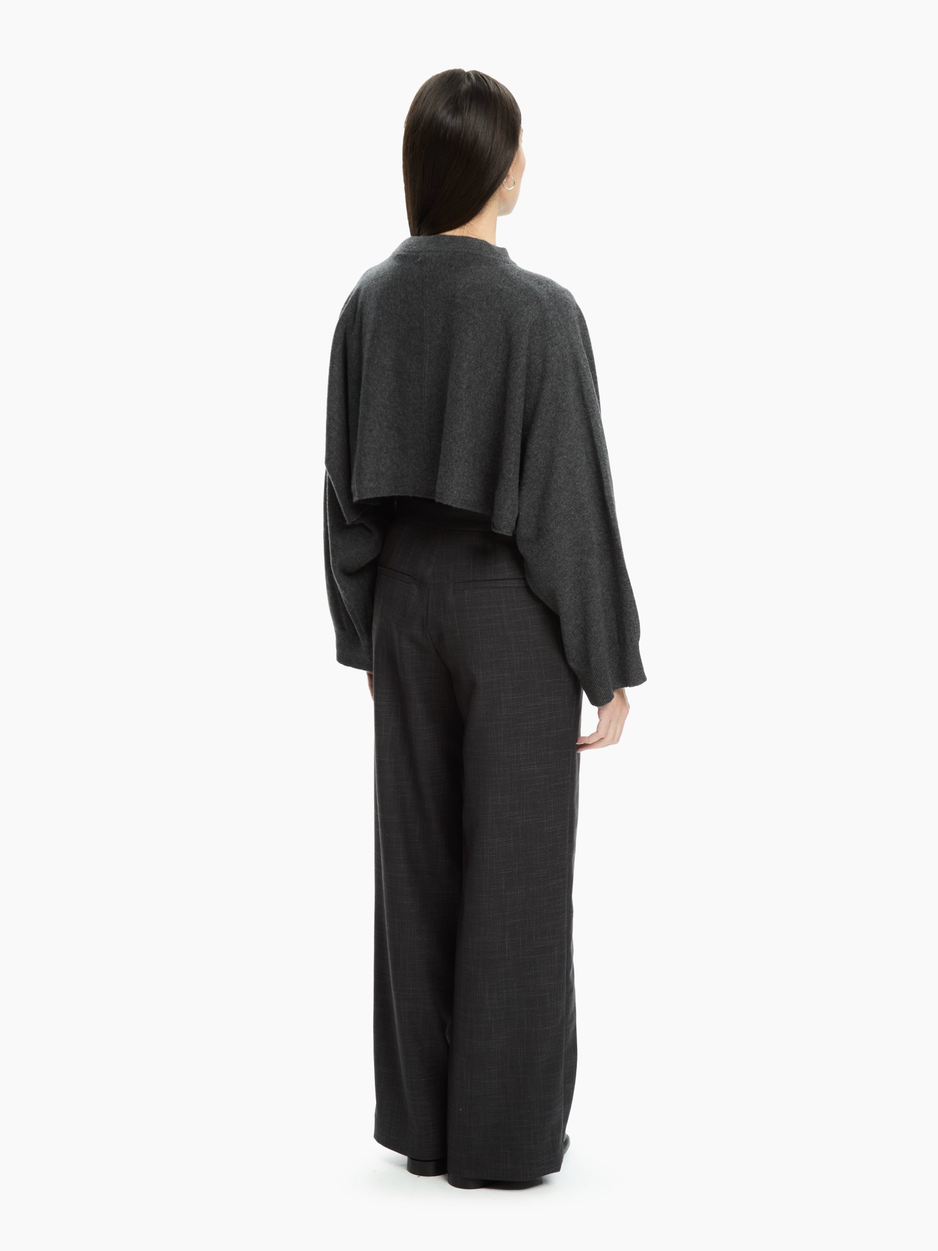 - Soft, voluminous sleeves gathered at the cuffs for a harmonious, fluid line.