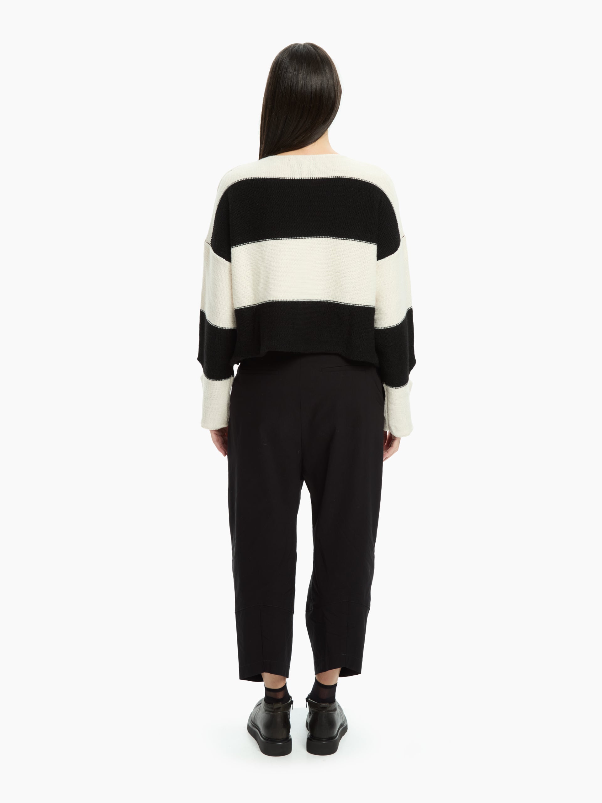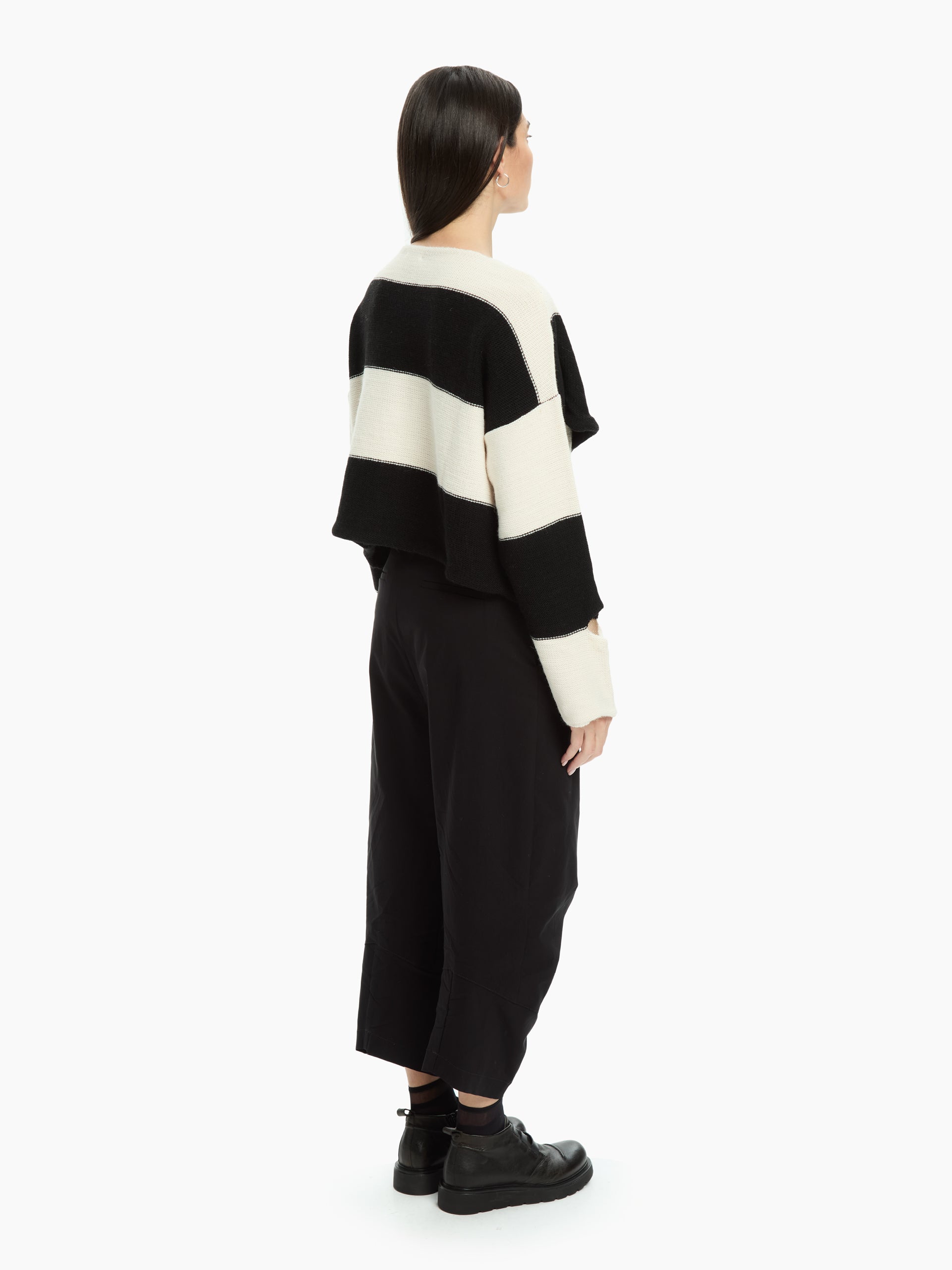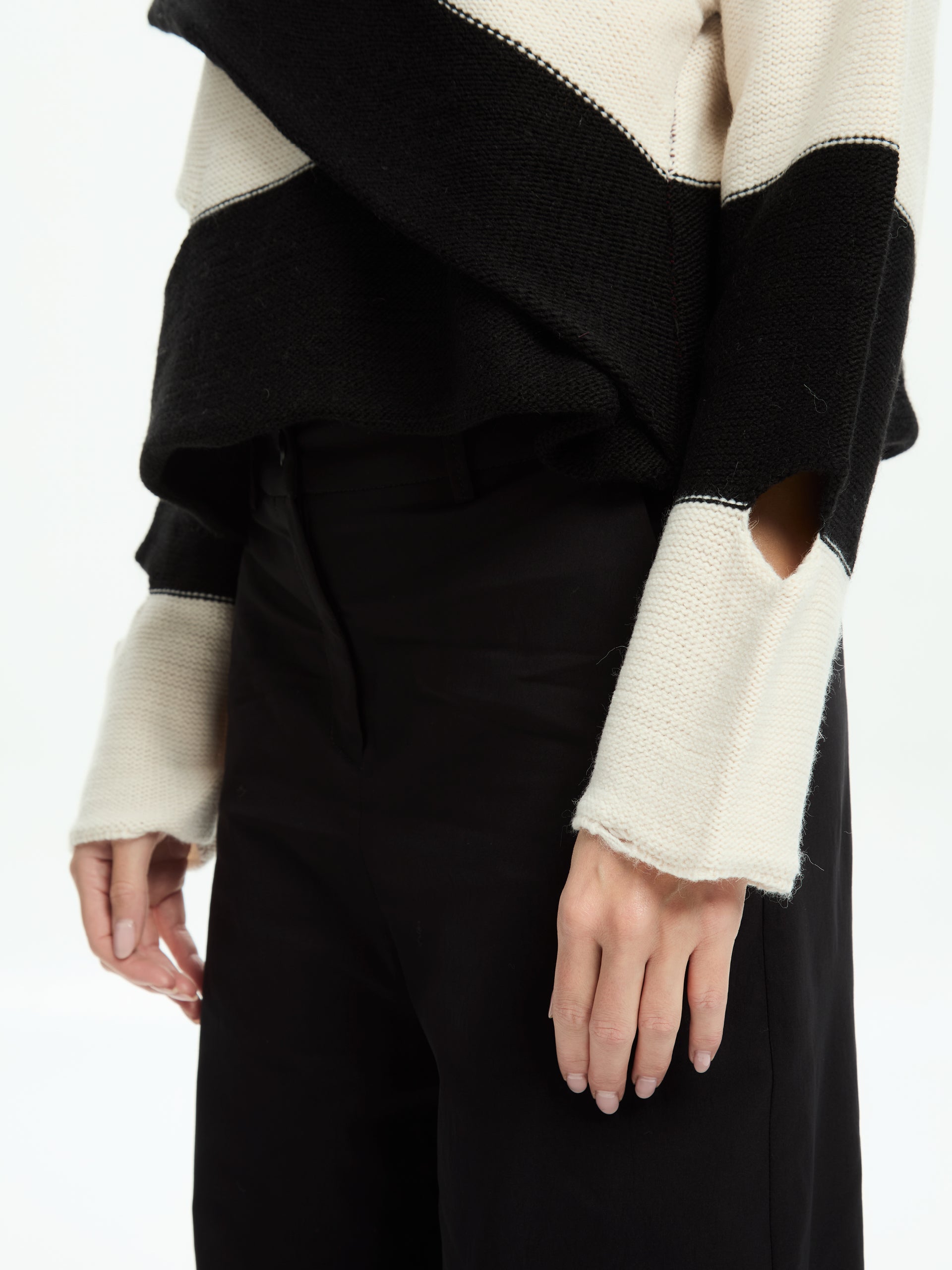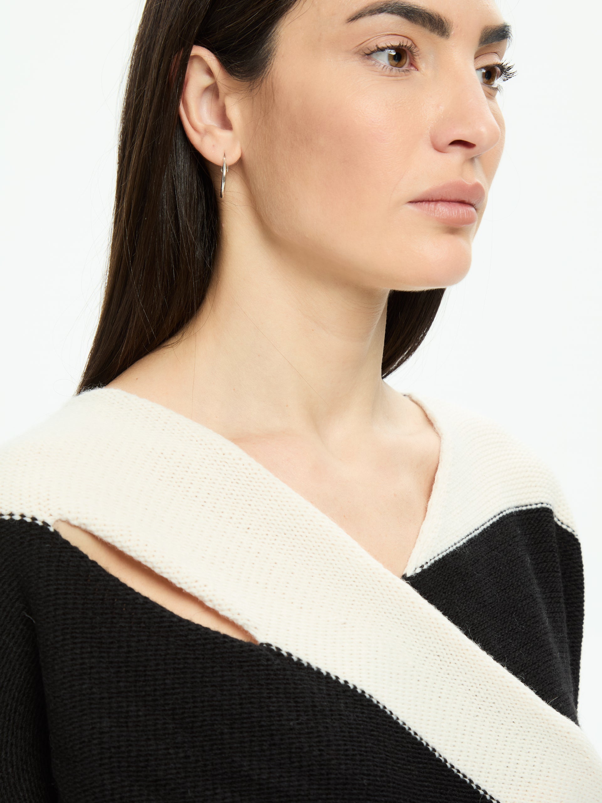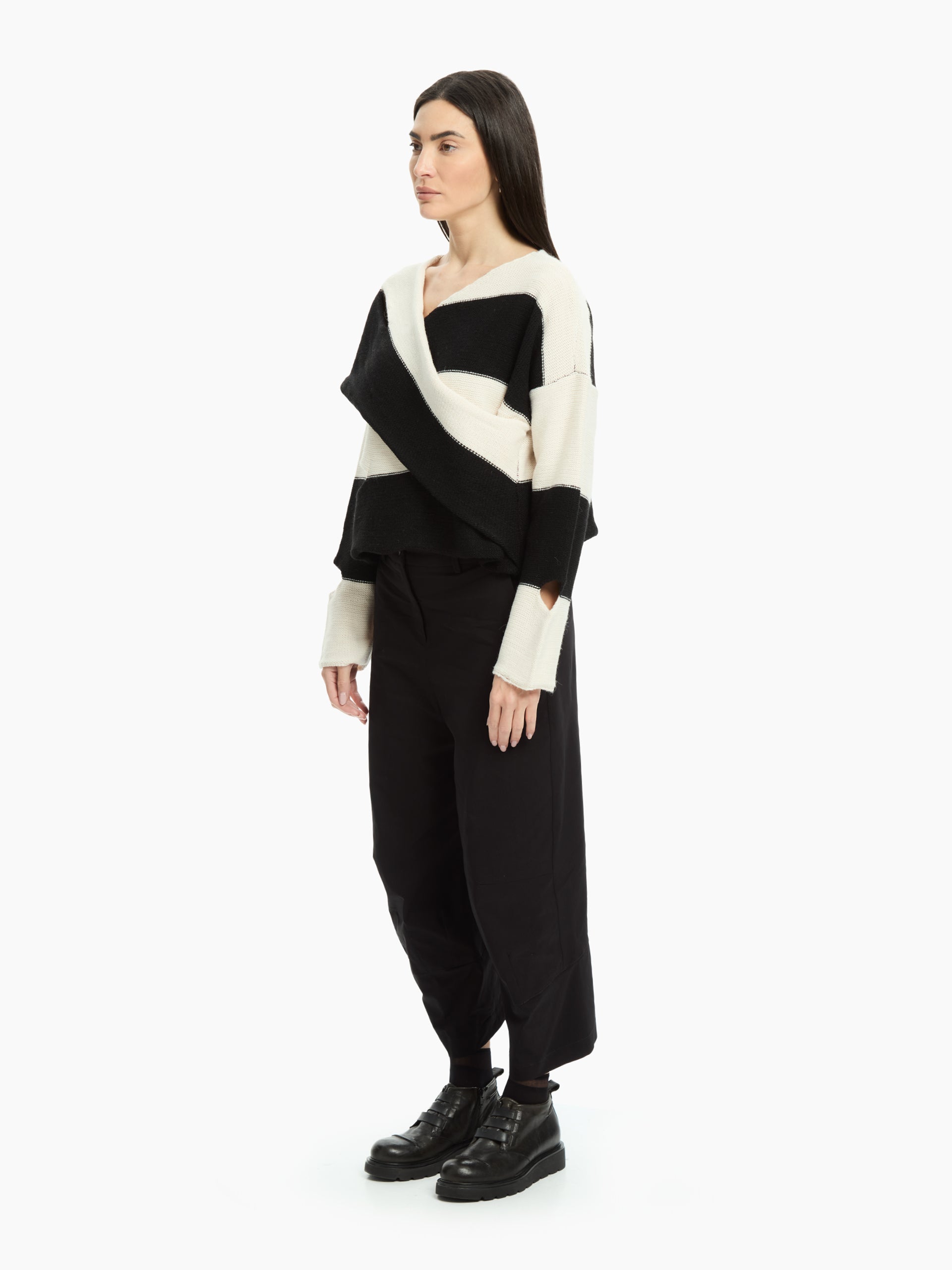 Innovative and graphically appealing, this IXOS jumper reinterprets traditional striped knitwear with an asymmetrical, modern design. The wide two-tone stripes create a dynamic visual effect, while the crossover front adds movement and an original silhouette. The cut-out details add a contemporary and bold touch, perfect for those who love to stand out in style.