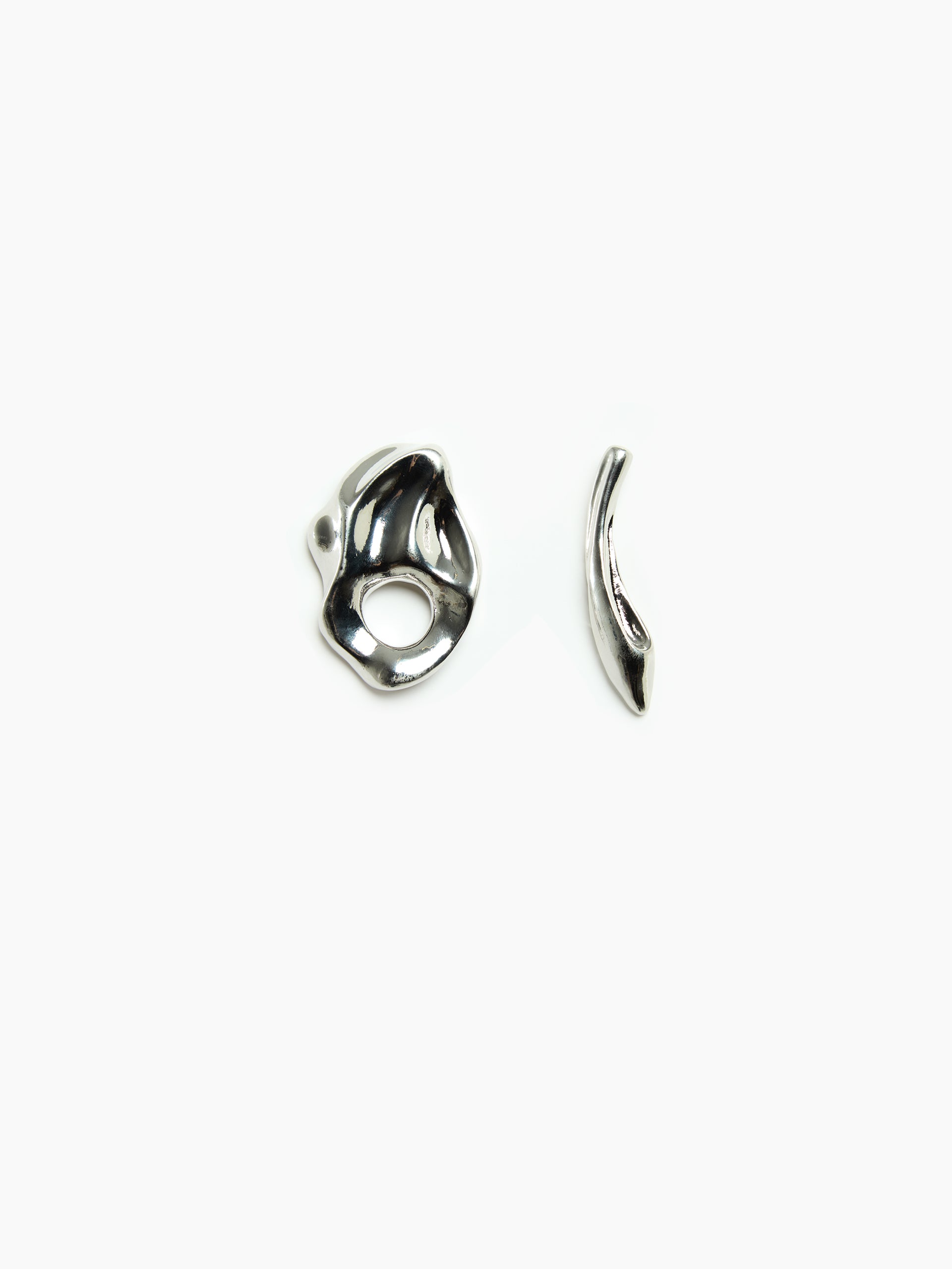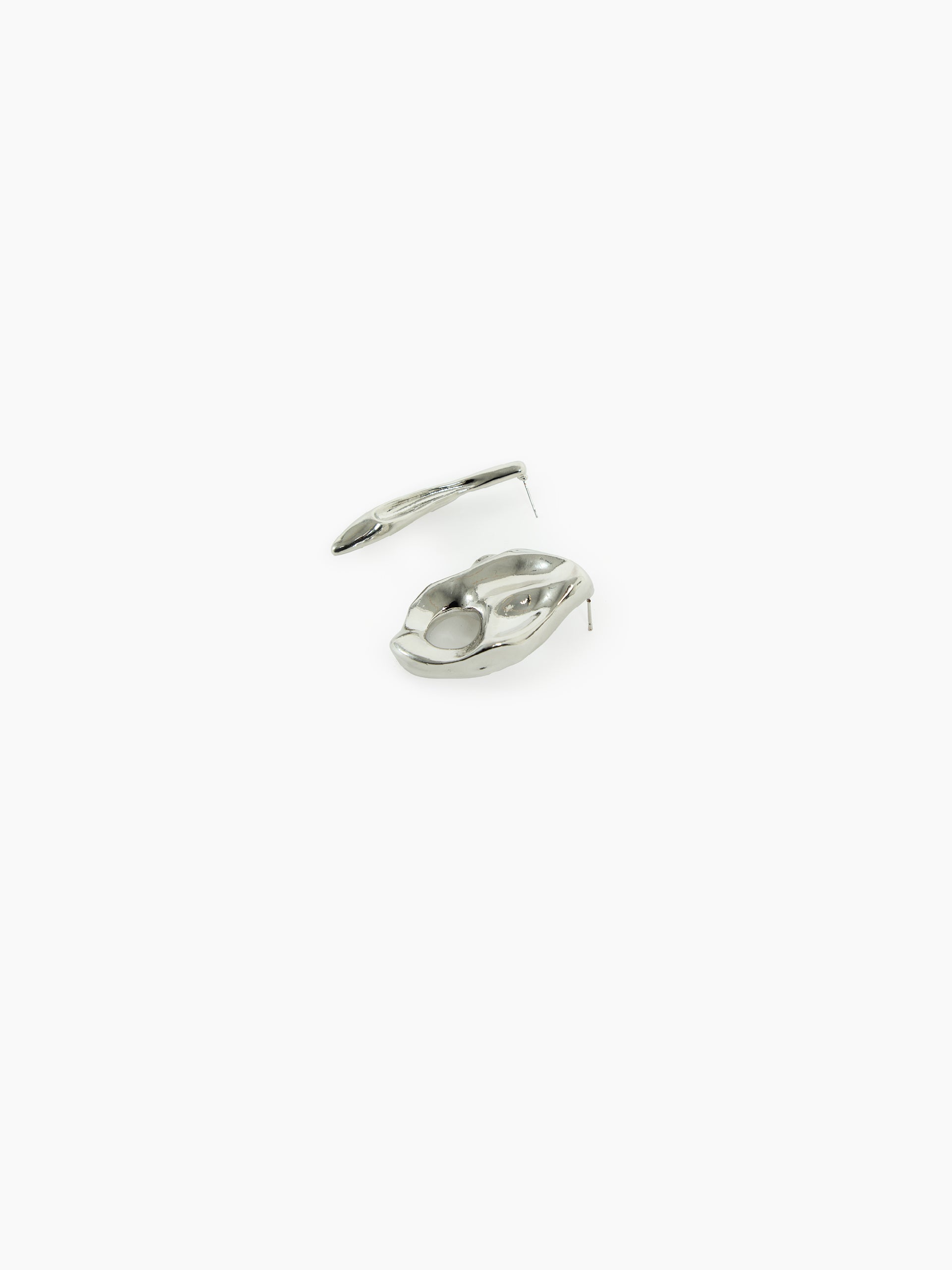 These contemporary earrings stand out for their irregular, soft shape, inspired by organic and natural elements. The main body features a sinuous structure with openings and curves that create an elegant play of light and volume.