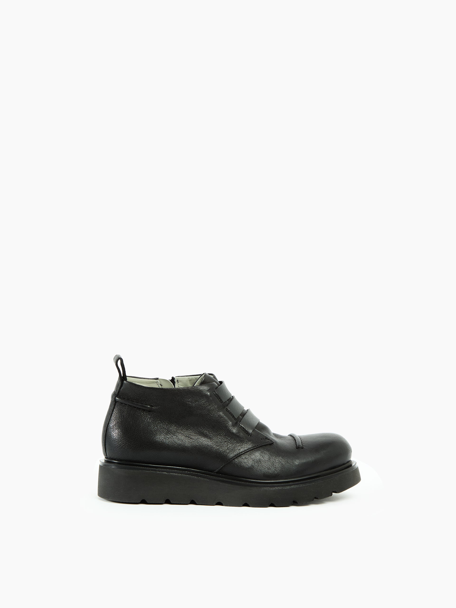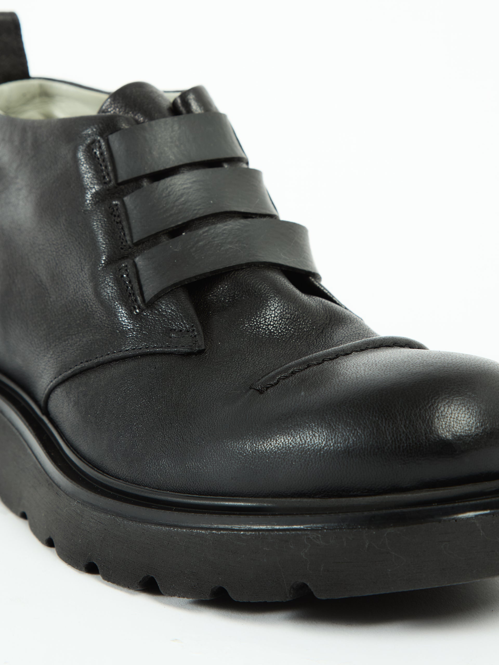 Made from soft vintage-effect leather, these contemporary lace-up shoes combine comfort and character. The design is enhanced by leather straps instead of classic laces, for a bold and sophisticated style. The lightweight rubber lug sole guarantees grip and durability, while the inner lining ensures comfort throughout the day. Perfect for those looking for versatile and modern footwear to wear both in the city and in their free time.