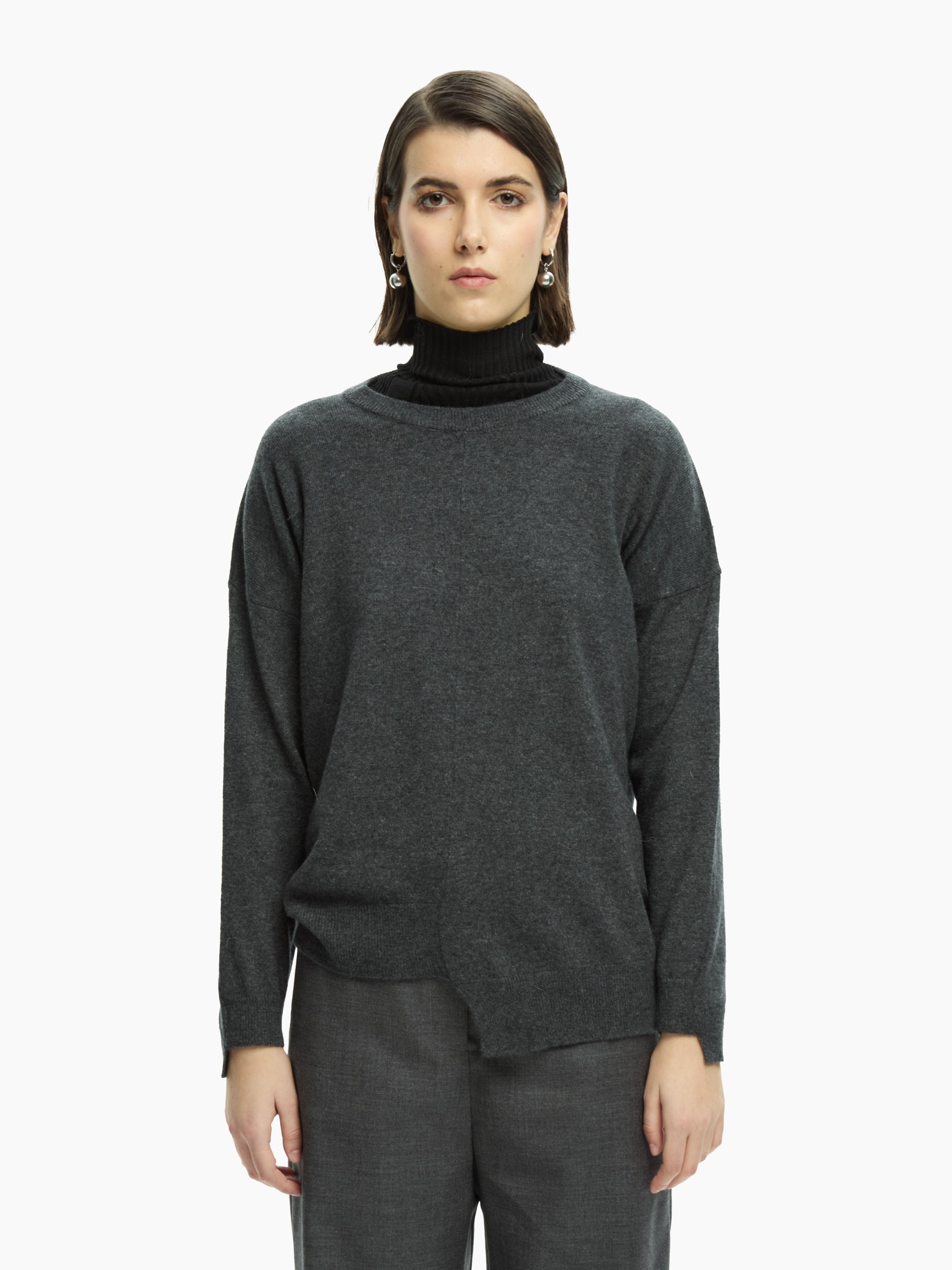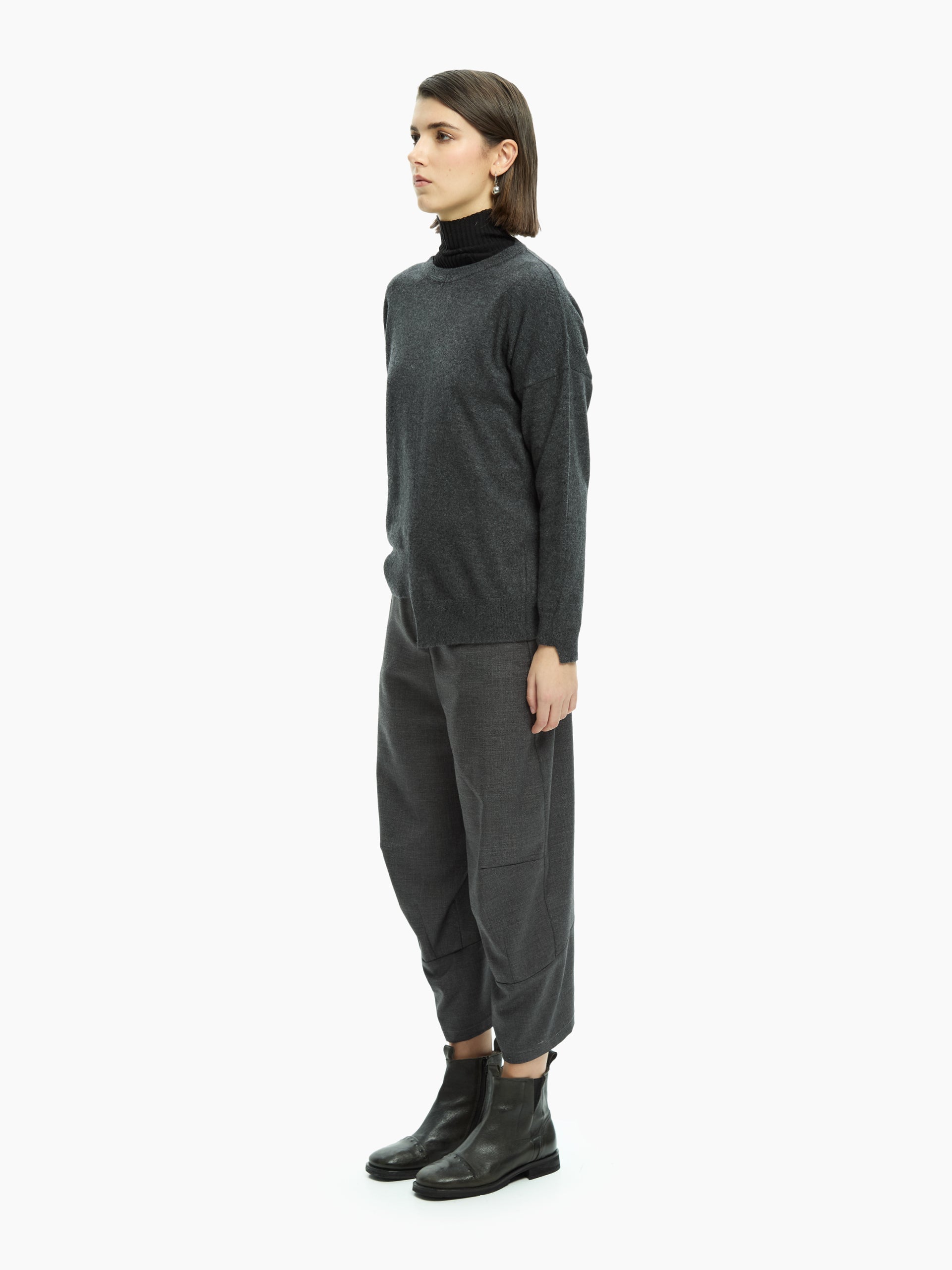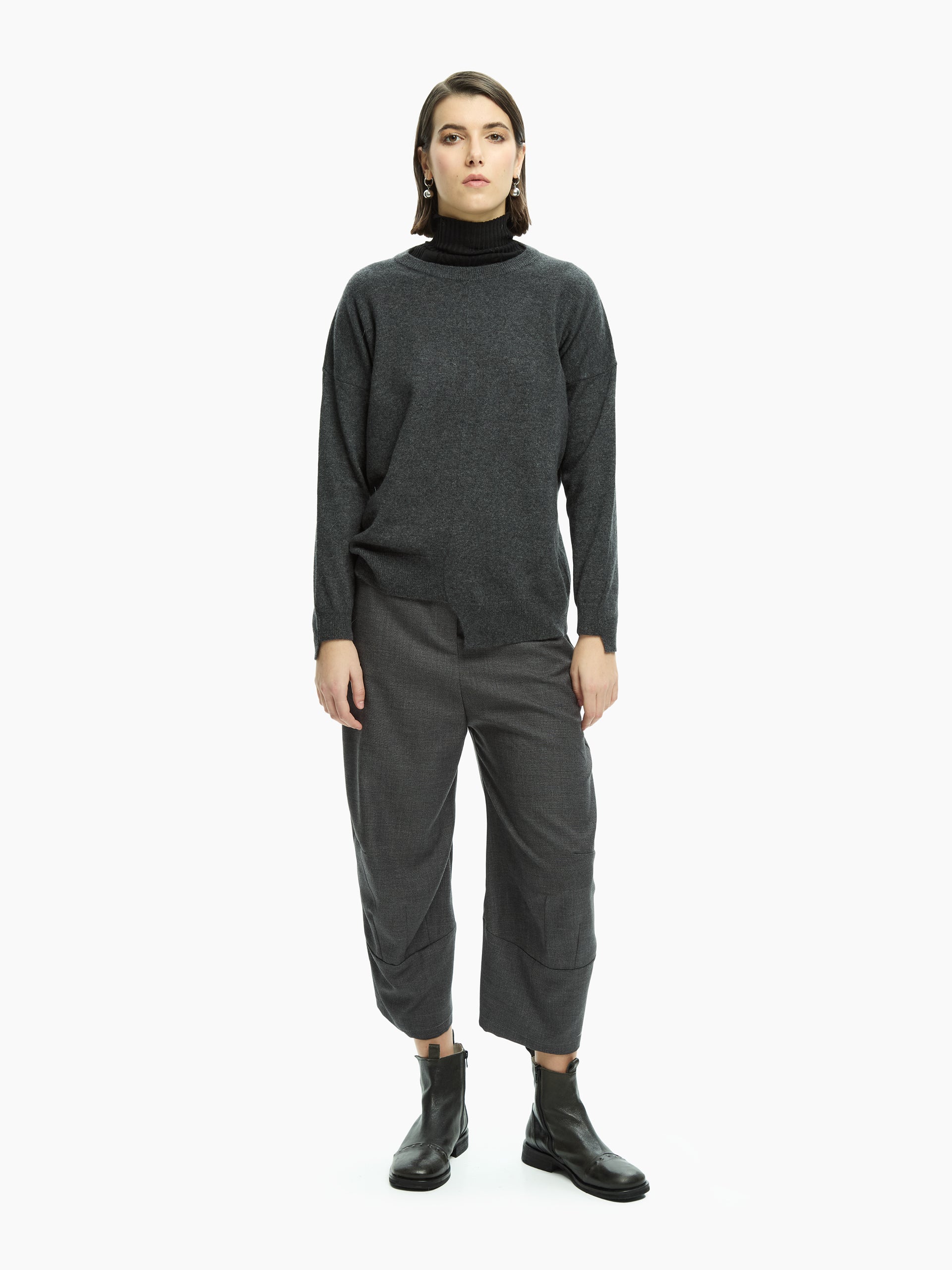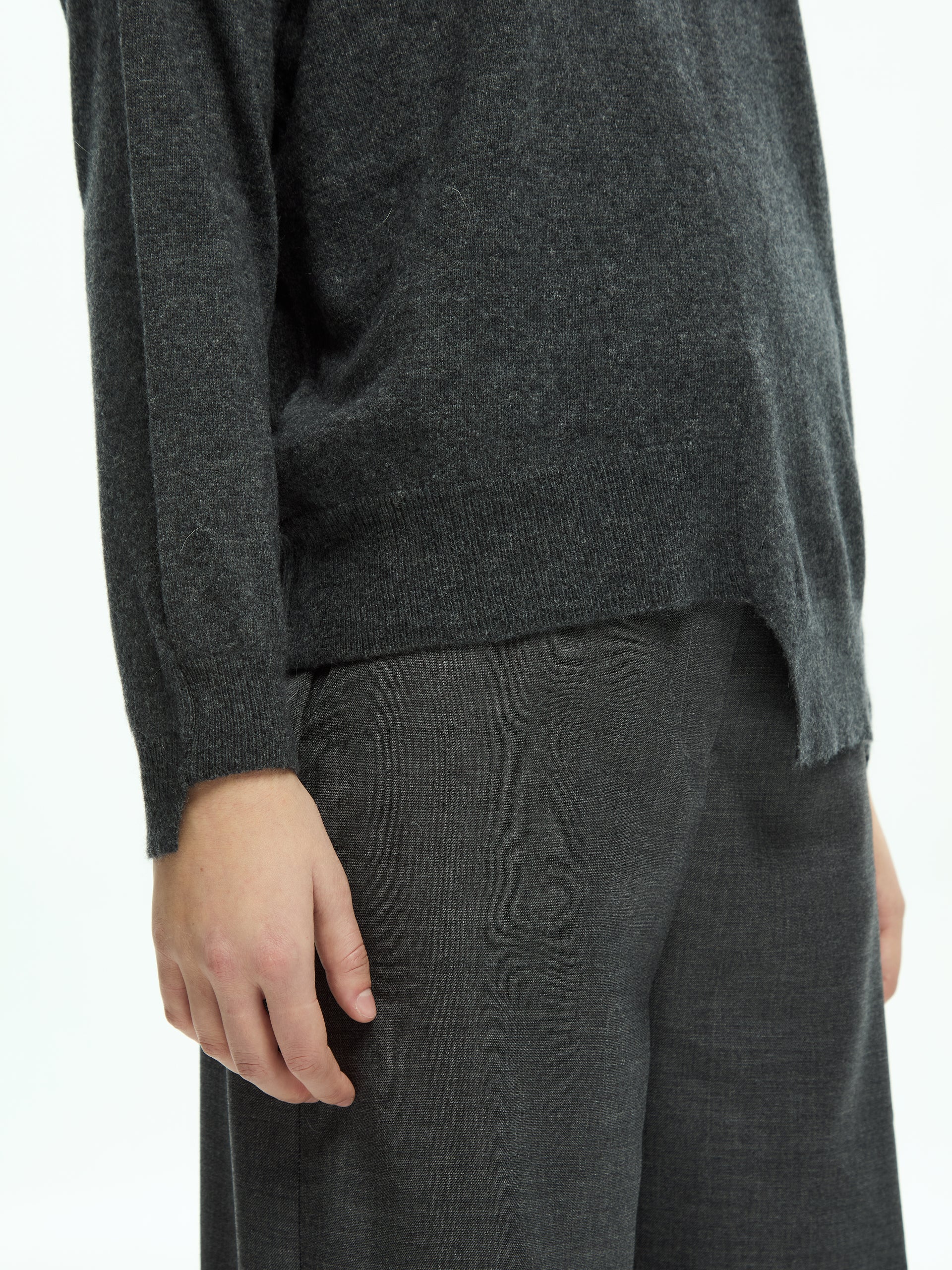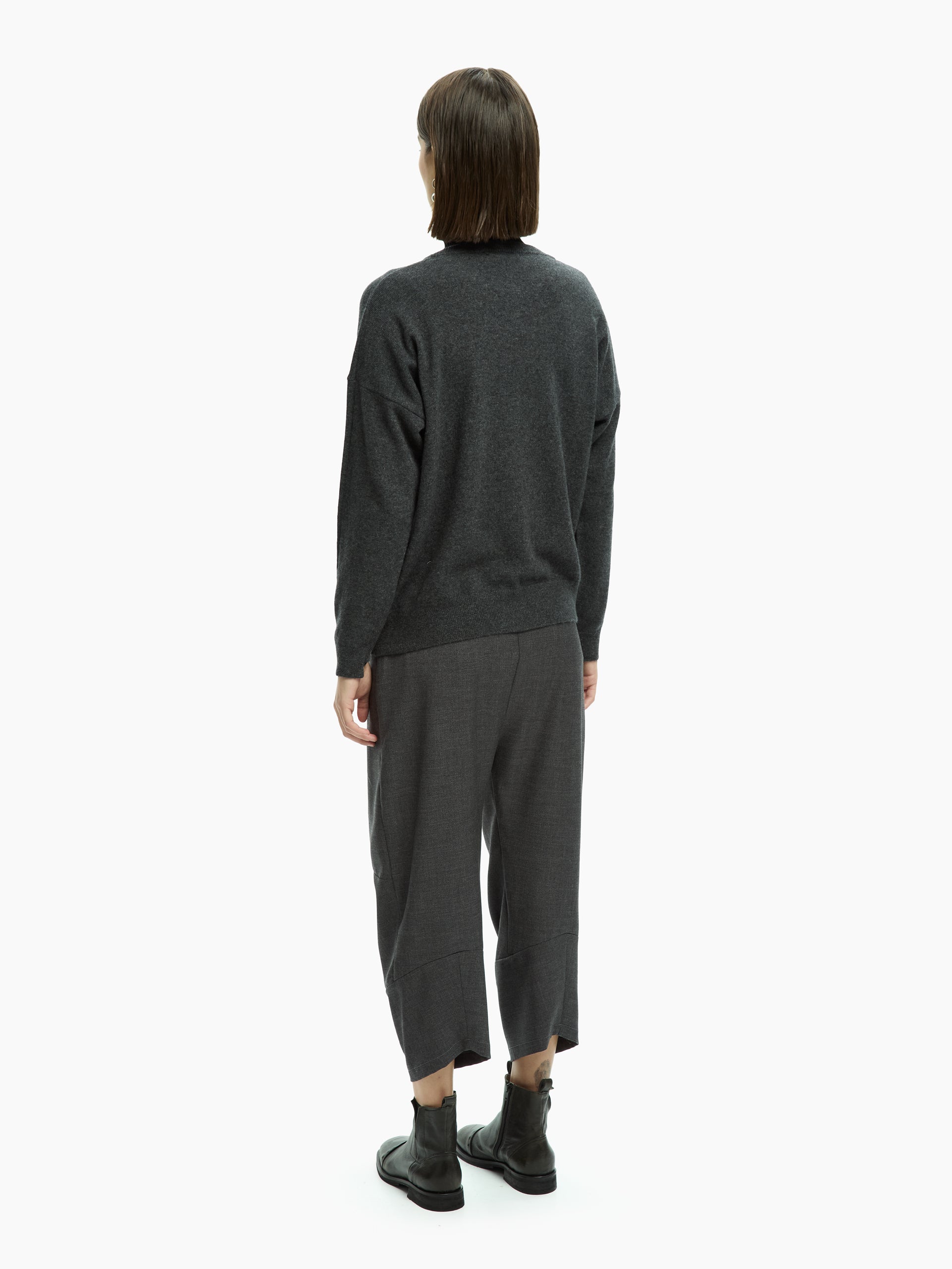 A garment designed to interpret minimalism in a contemporary key. The clean lines are enriched by a fluid construction that naturally accompanies the body, creating a refined balance between comfort and rigour.
