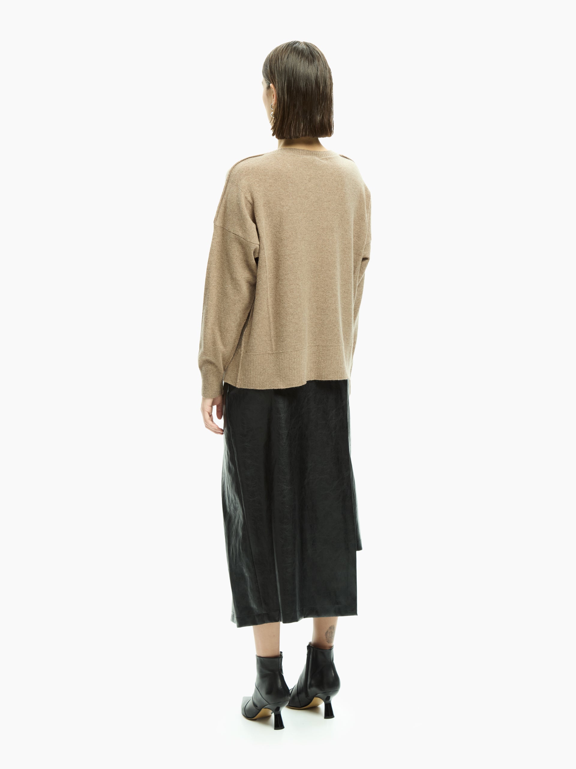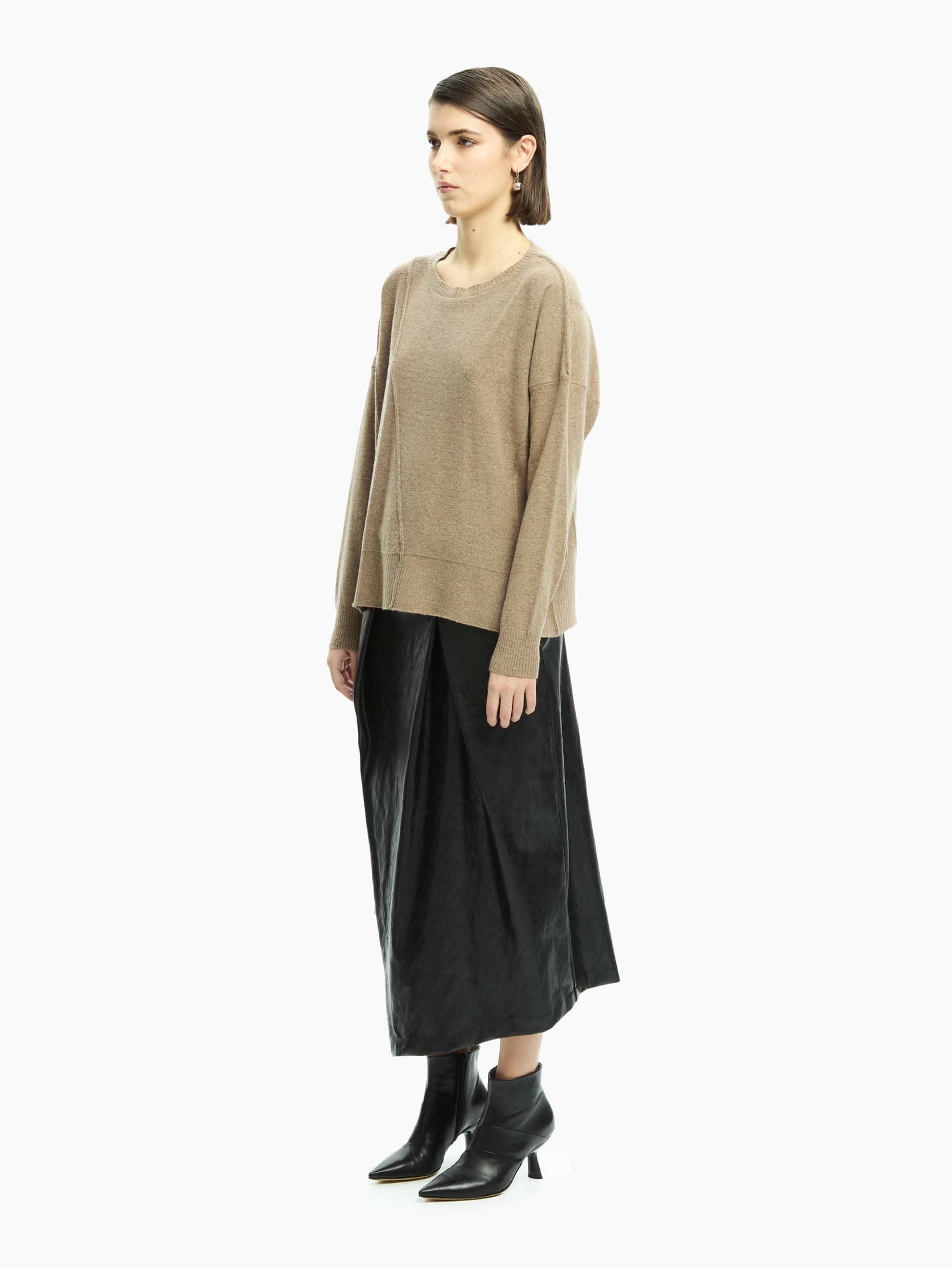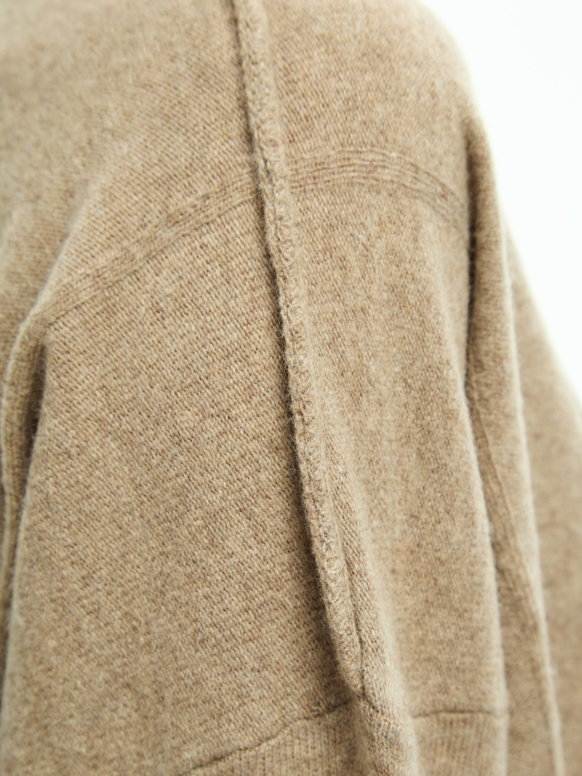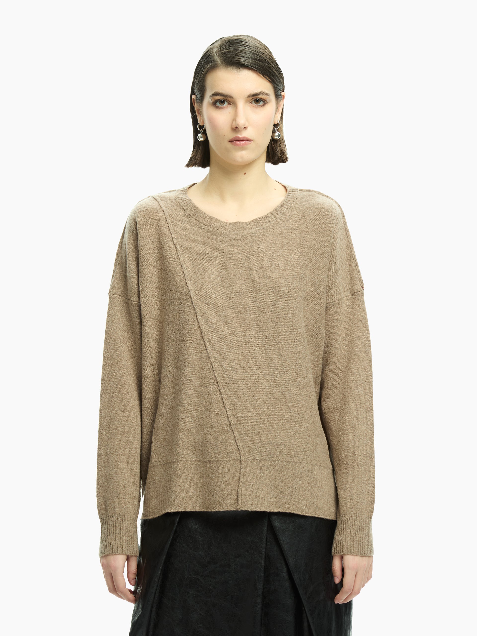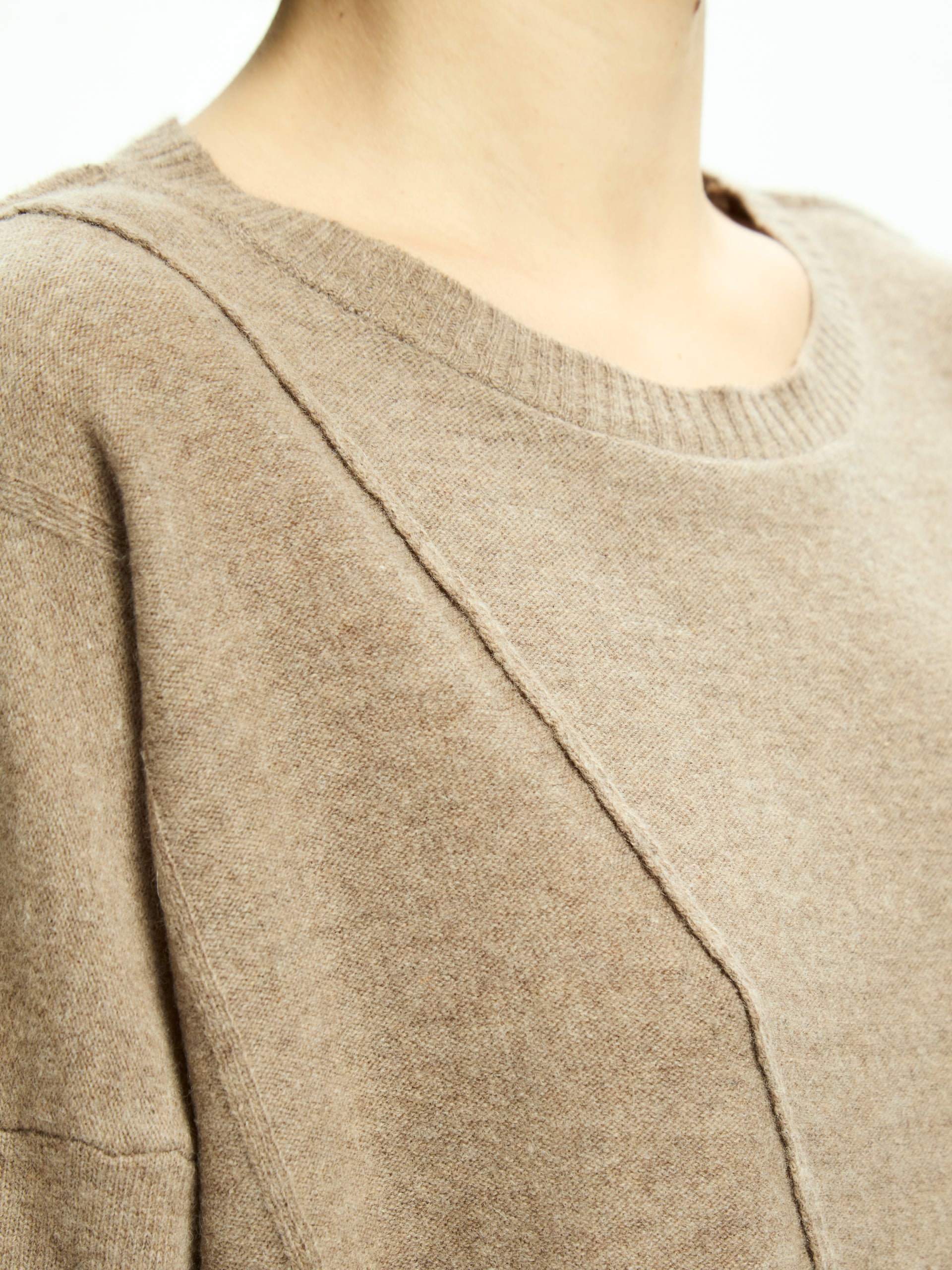 An essential piece reinterpreted through a dynamic and refined construction. The soft line is enhanced by a diagonal seam across the front, creating a delicate graphic effect and adding character to the design. The relaxed cut and rounded collar provide balance and versatility.