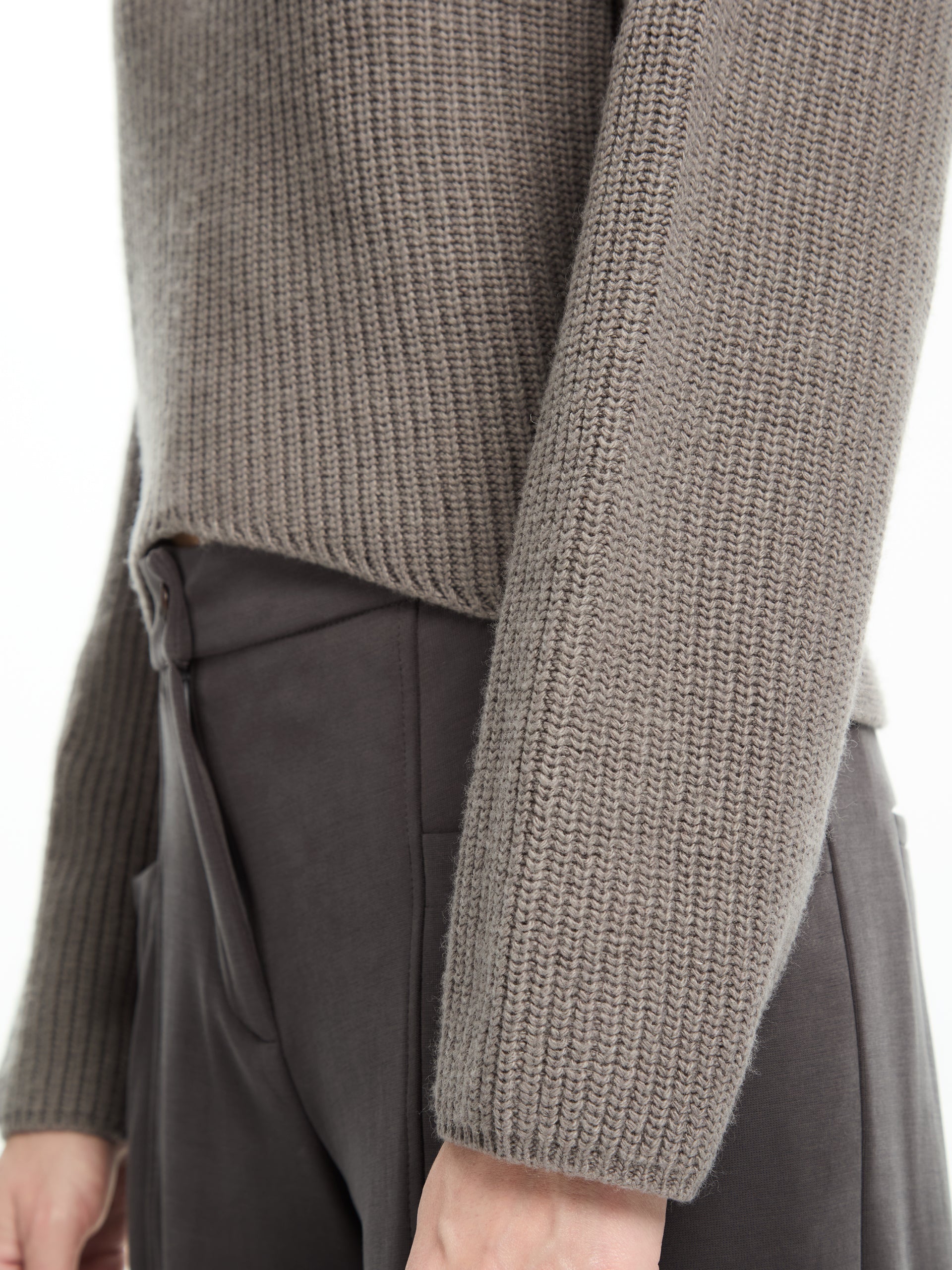 - Compact ribbed knit, which gives structure and a pleasant feeling of warmth.