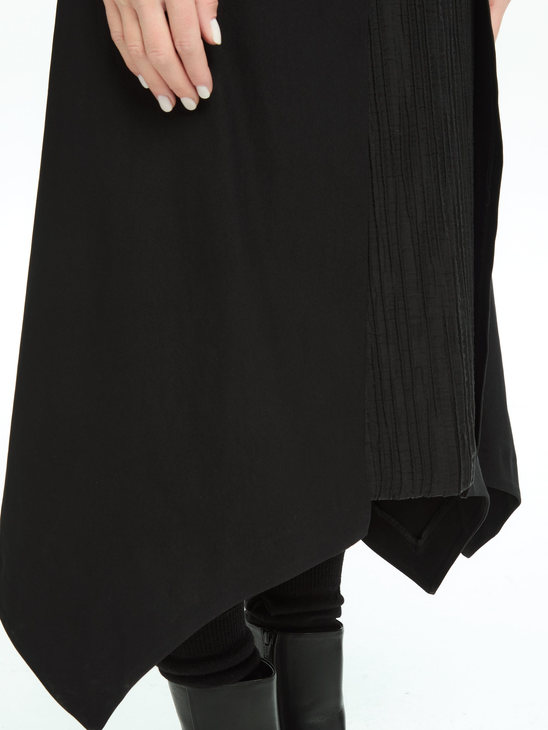 - Asymmetrical hem with soft points, designed to create movement and a dynamic effect when walking.