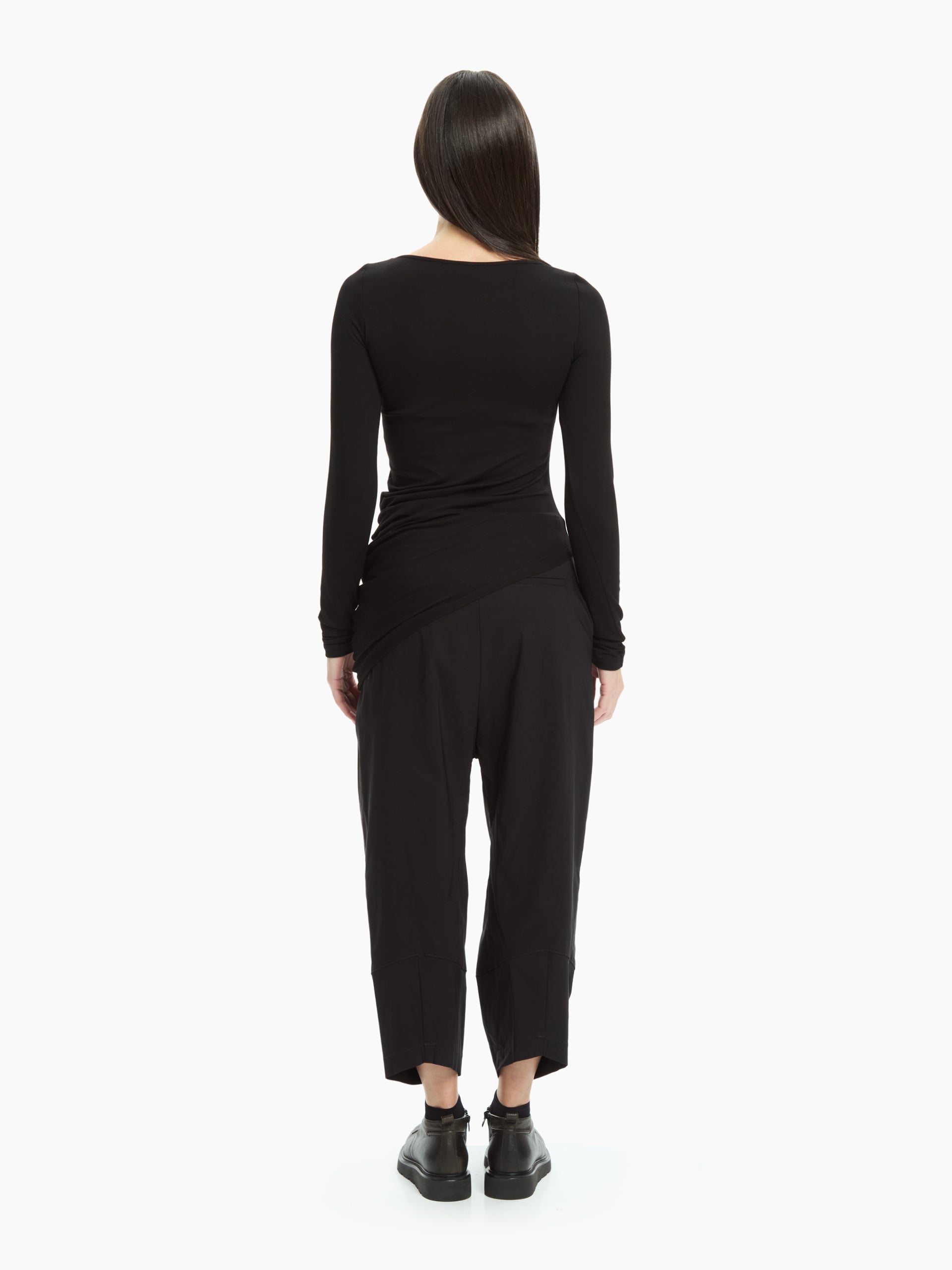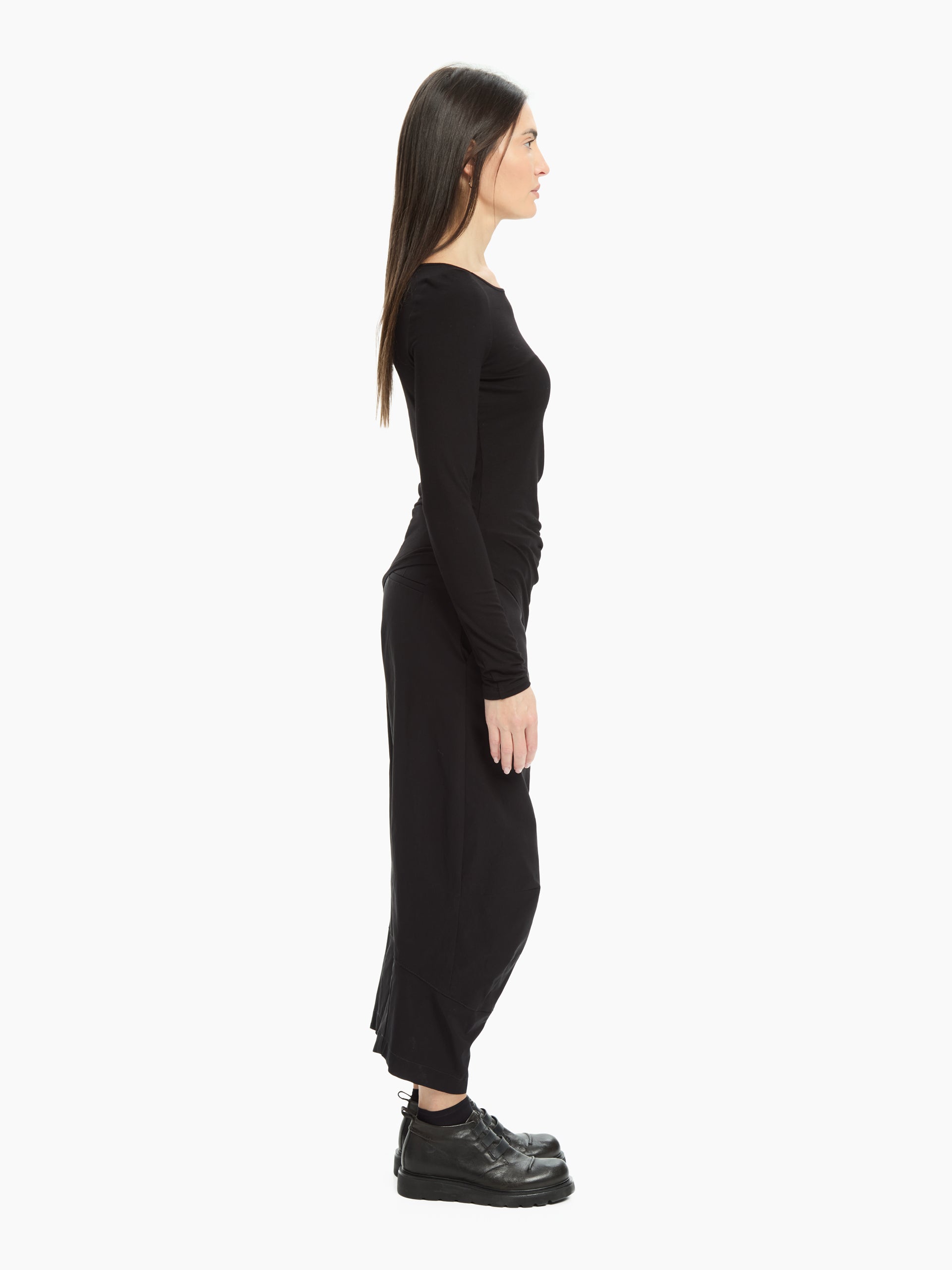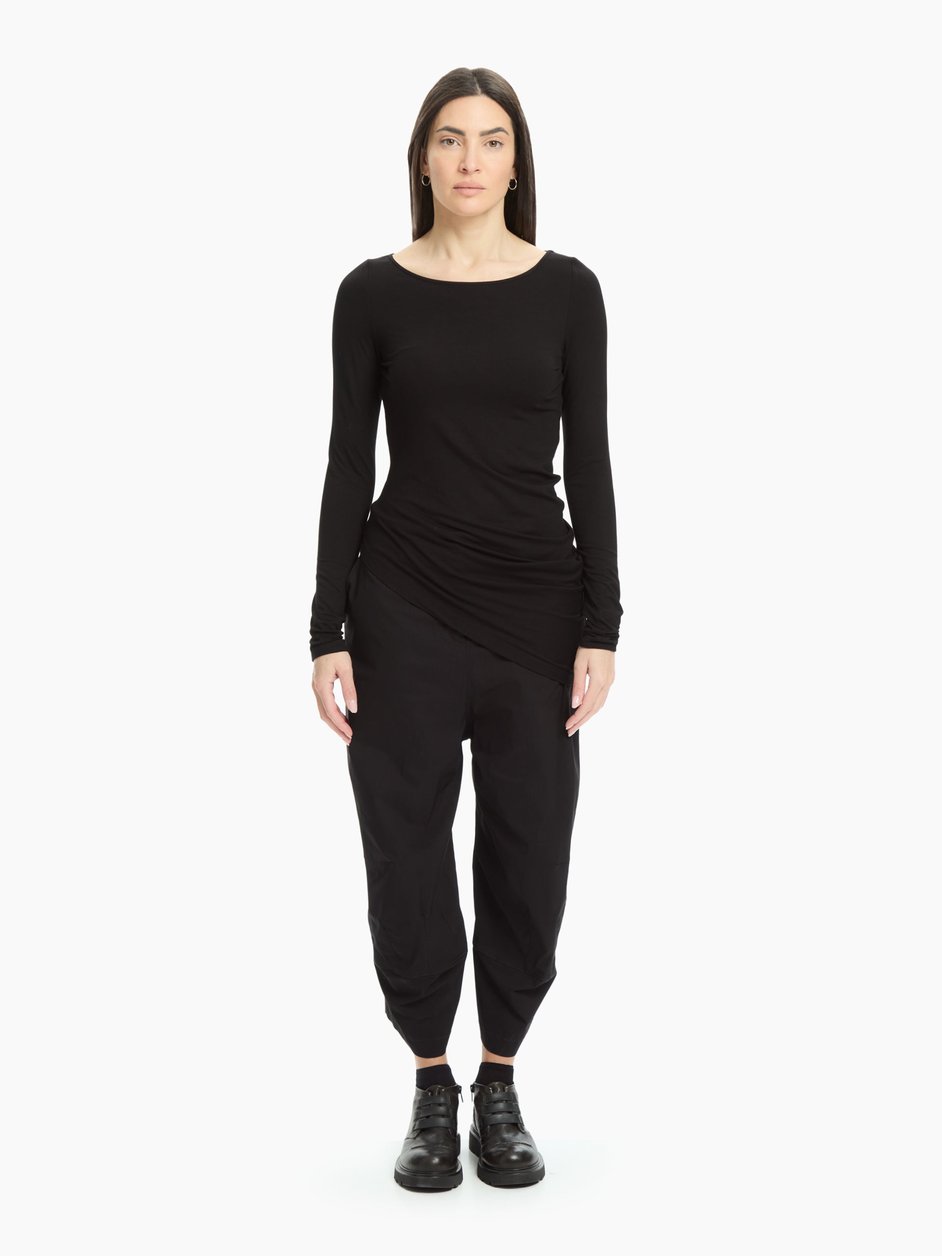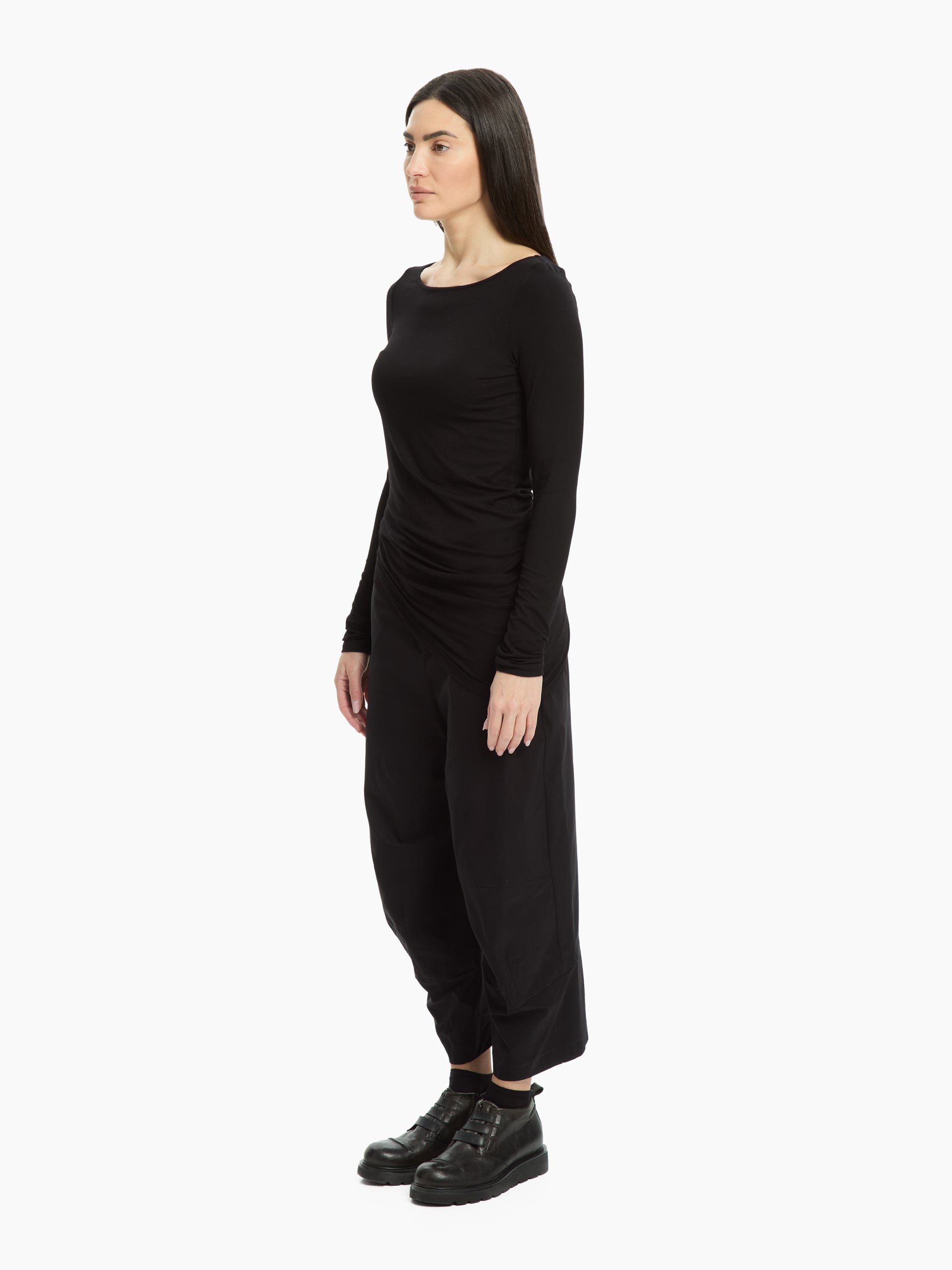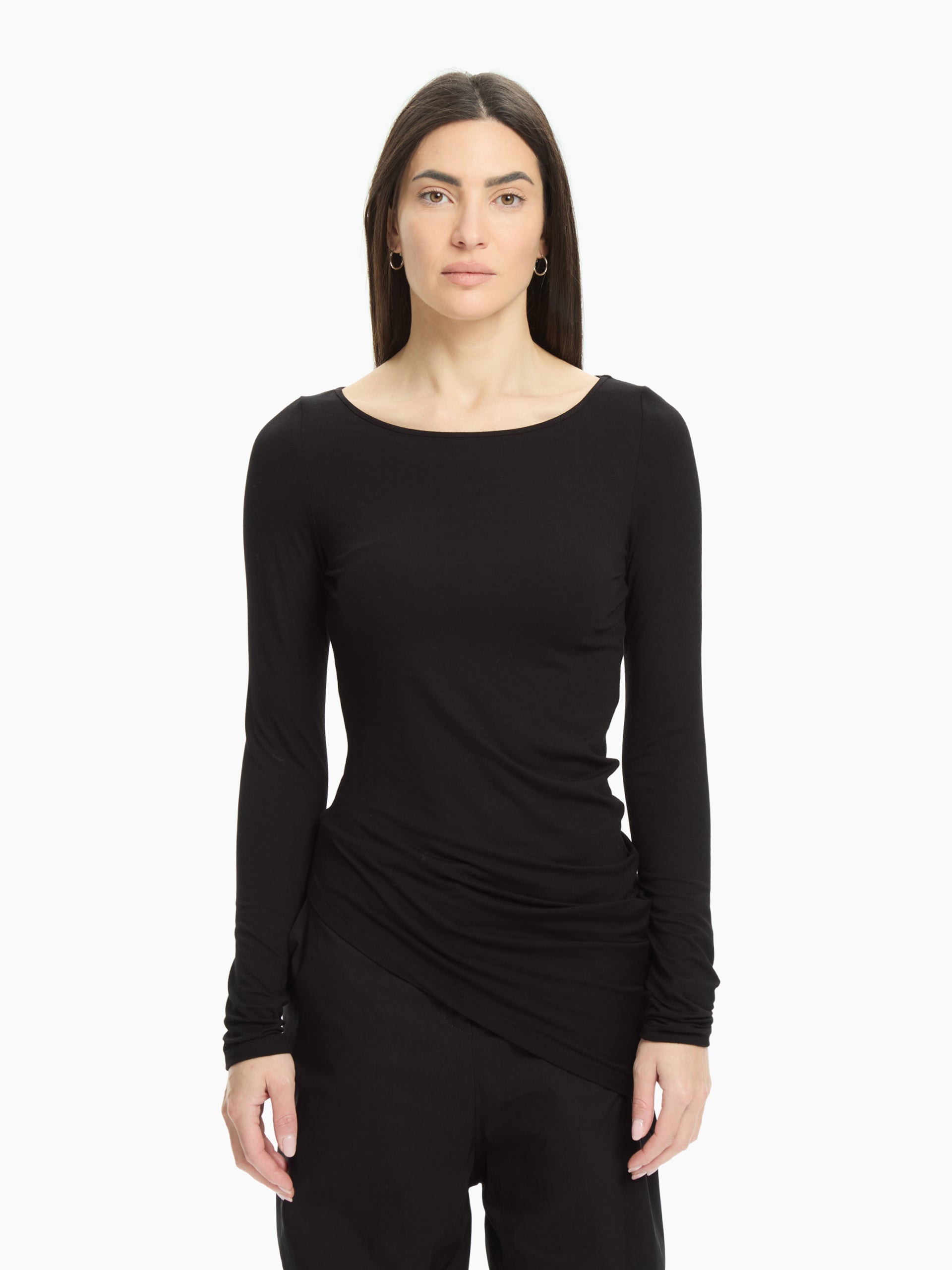Un capo essenziale e versatile, pensato per un’eleganza quotidiana. Il design minimal e la costruzione pulita valorizzano la silhouette con naturalezza, mentre la linea asimmetrica sul fondo aggiunge un dettaglio discreto ma distintivo.