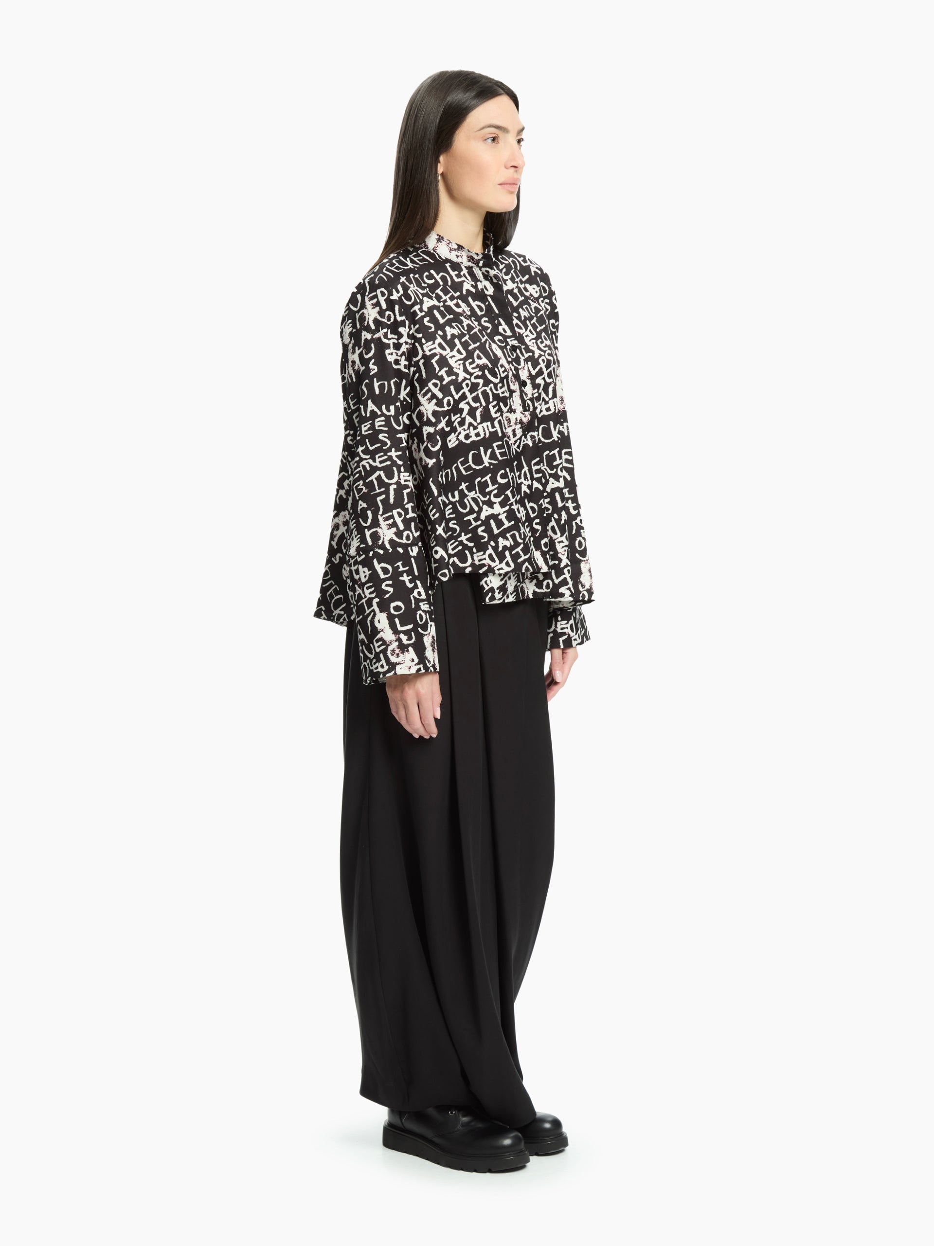A garment that combines art and tailoring: this shirt features an exclusive all-over lettering print that plays with contrasts and visual movement.