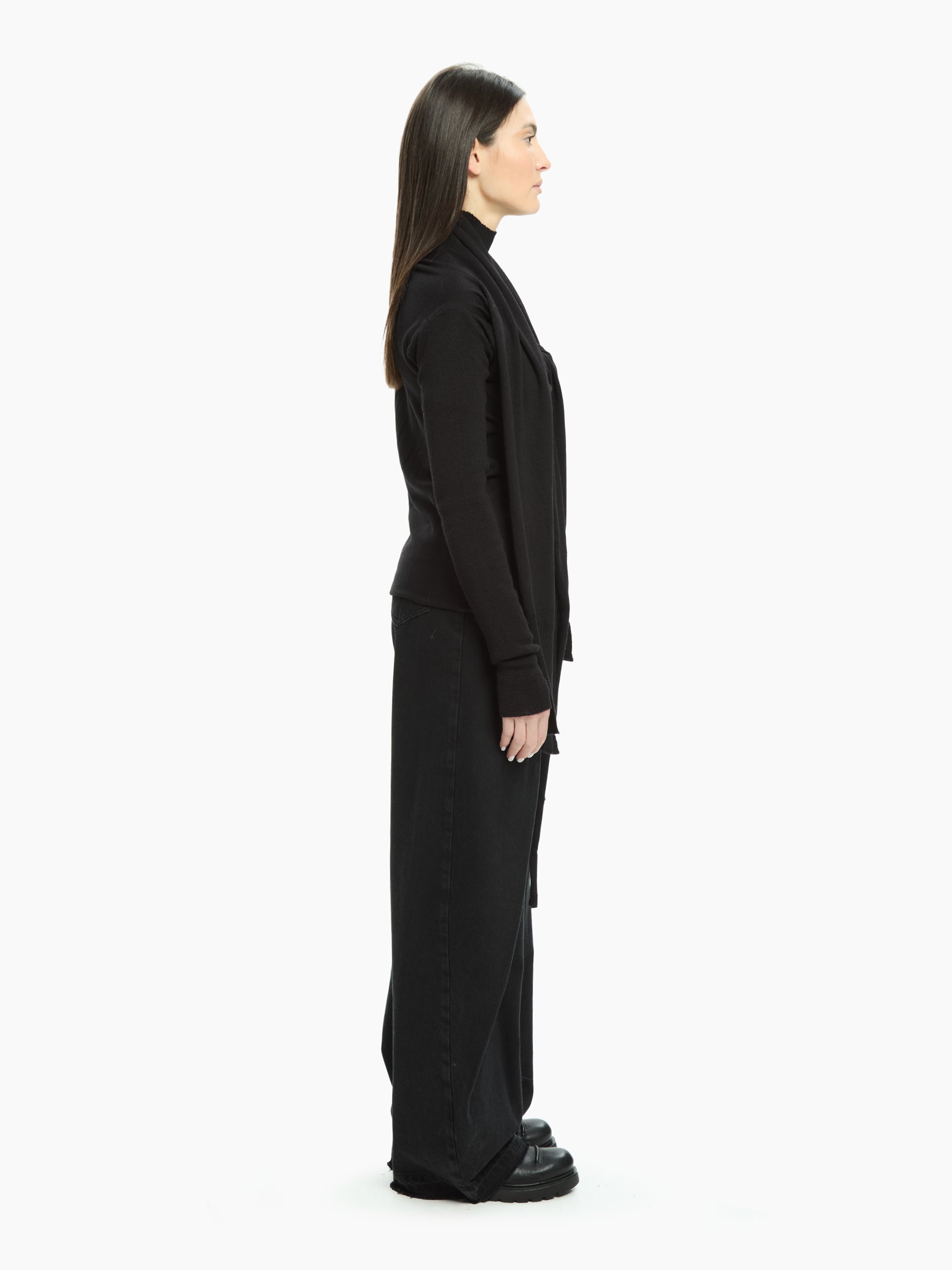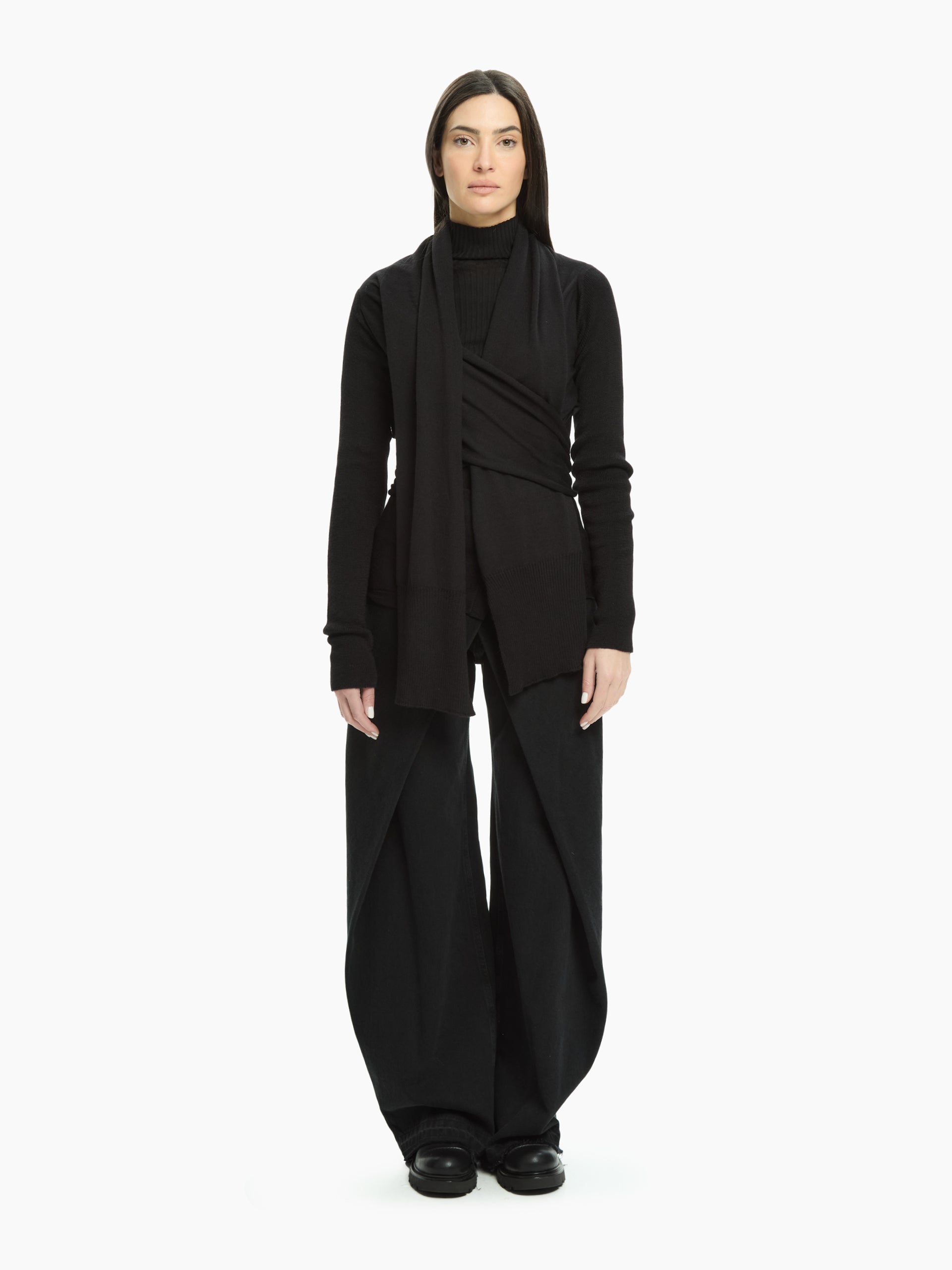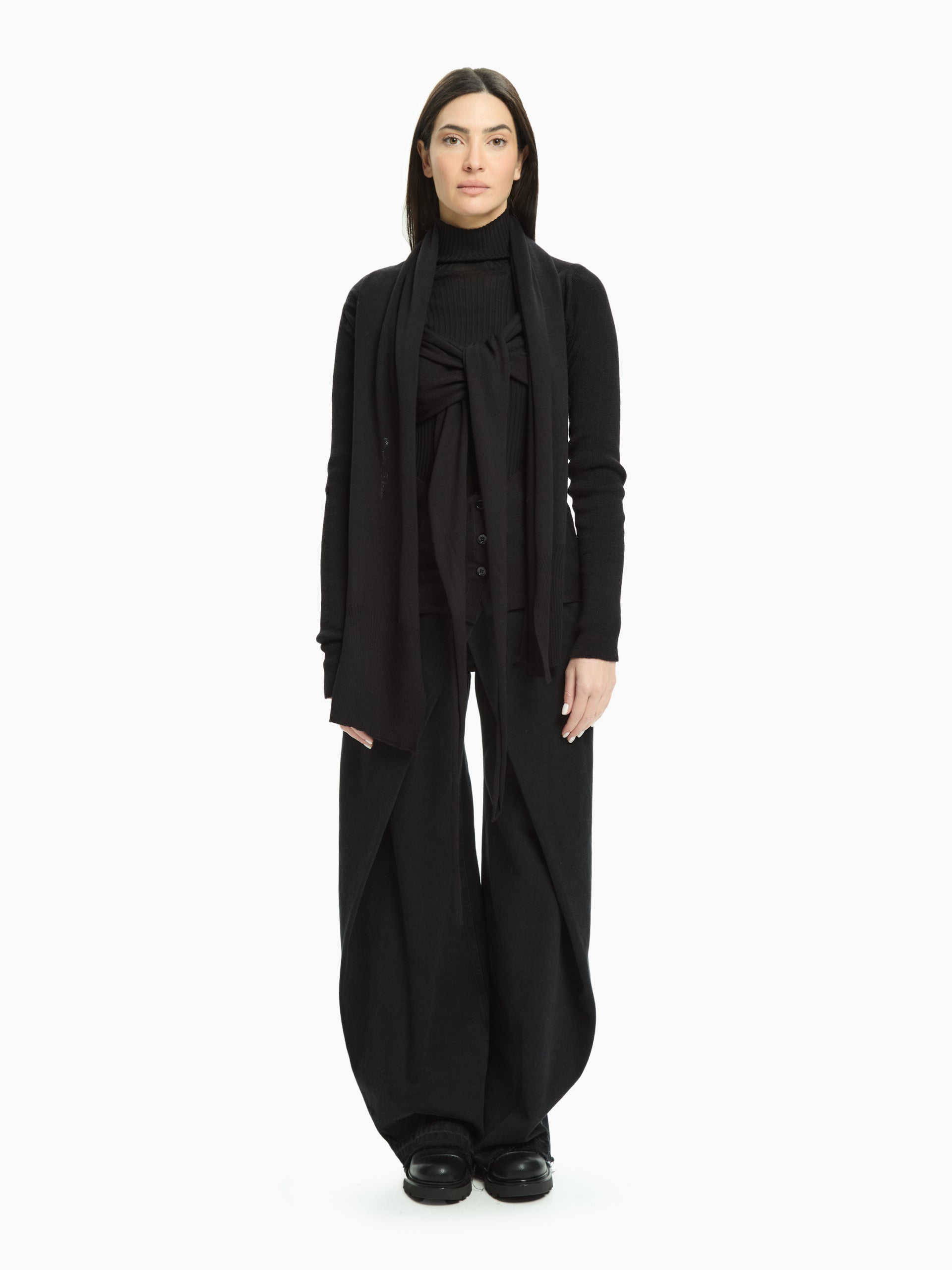 Soft, natural and contemporary, this jumper interprets IXOS knitwear with a relaxed and sophisticated aesthetic: the smooth knit enhances the compactness of the yarn, while the bands that wrap around the front create a fluid and refined movement, giving the garment a modular and personal character; the slightly wide line and slightly dropped shoulder ensure comfort and a modern allure, perfect for versatile and contemporary looks.