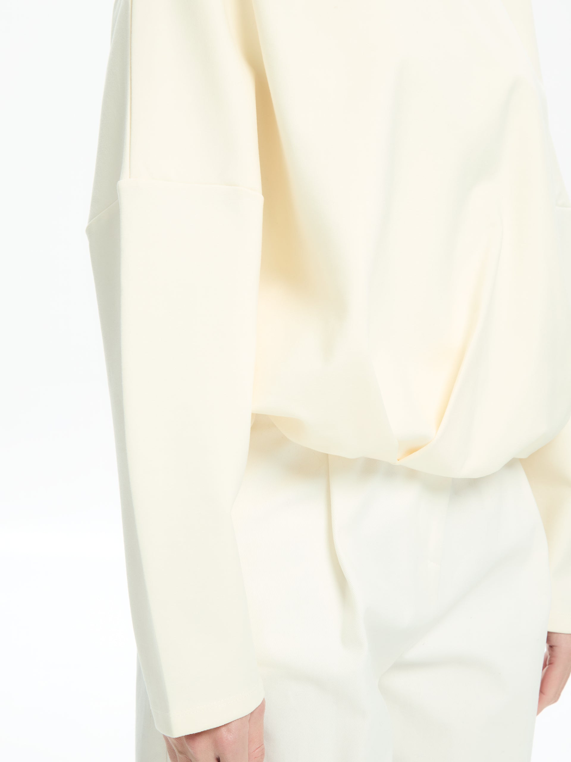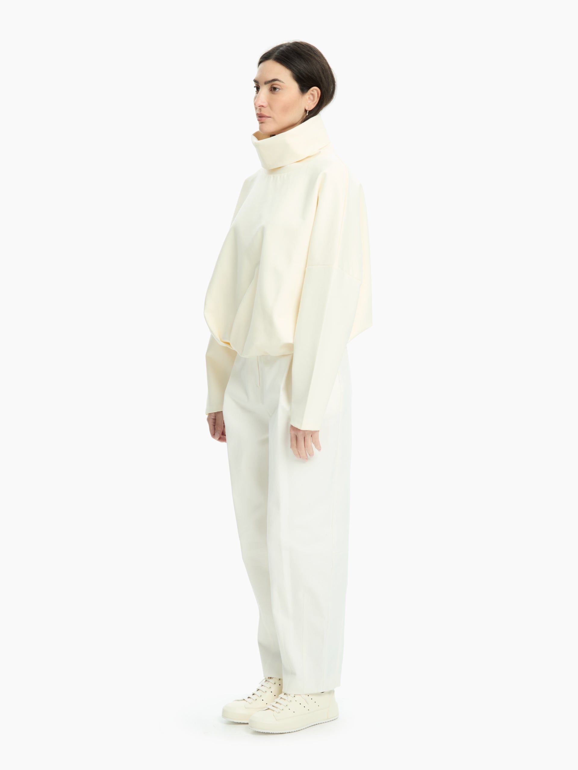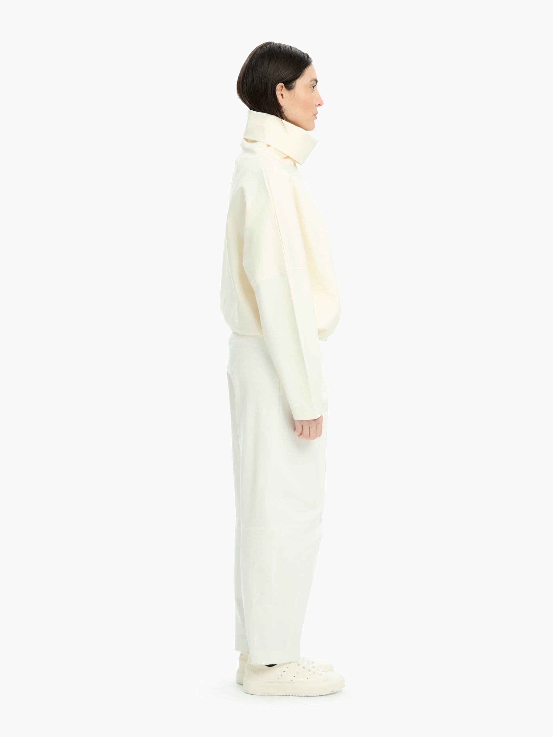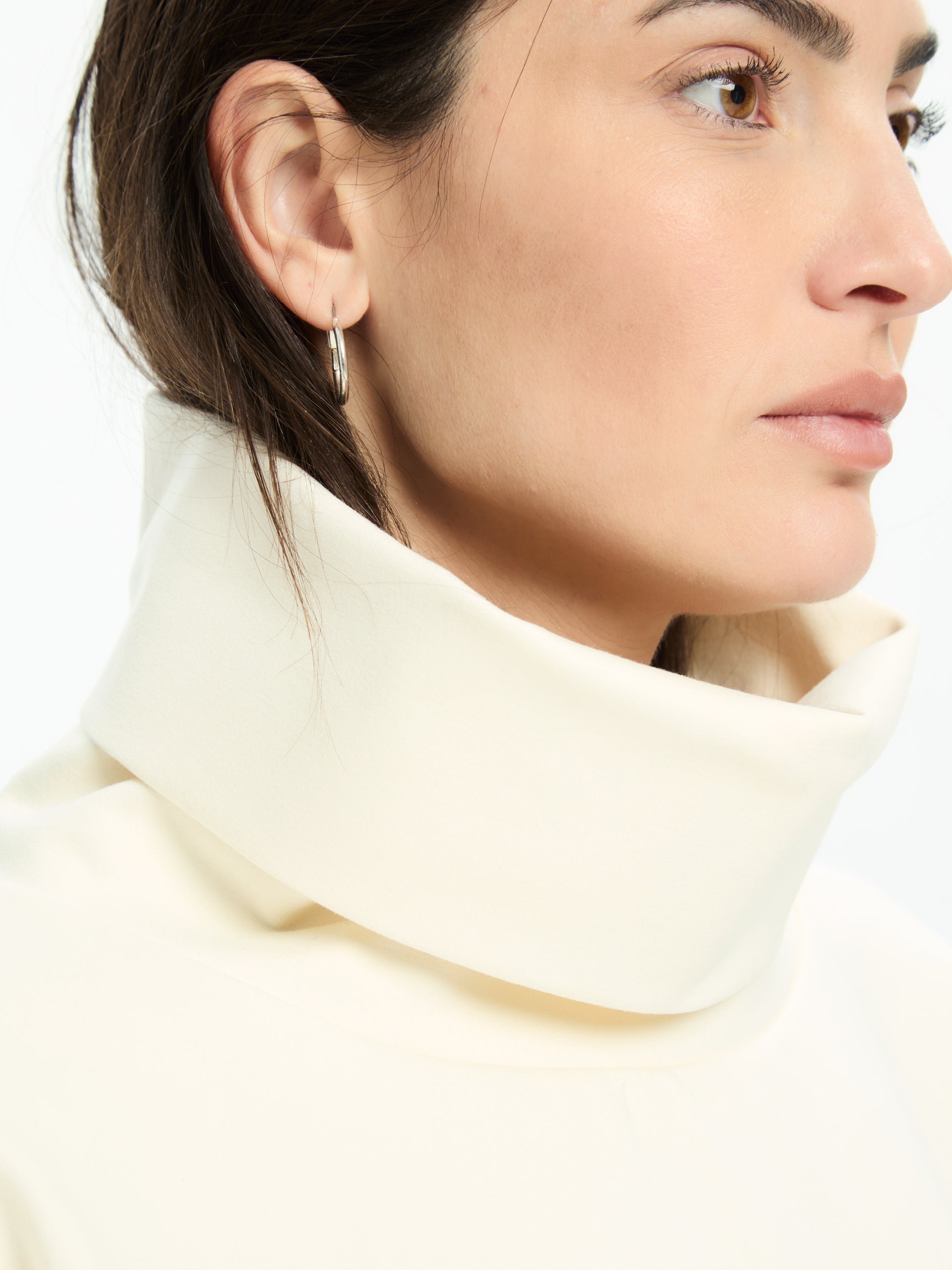 Felpa over con collo alto e linea morbida. Spalla scesa e volume ampio. Vestibilità comoda.
