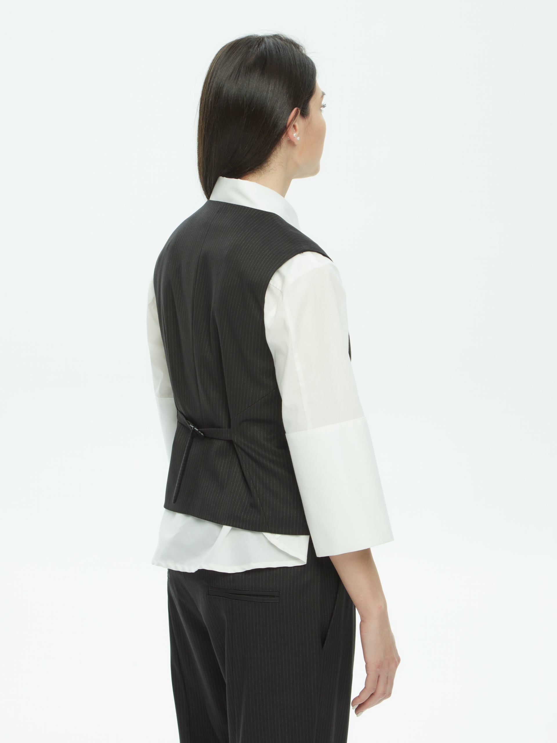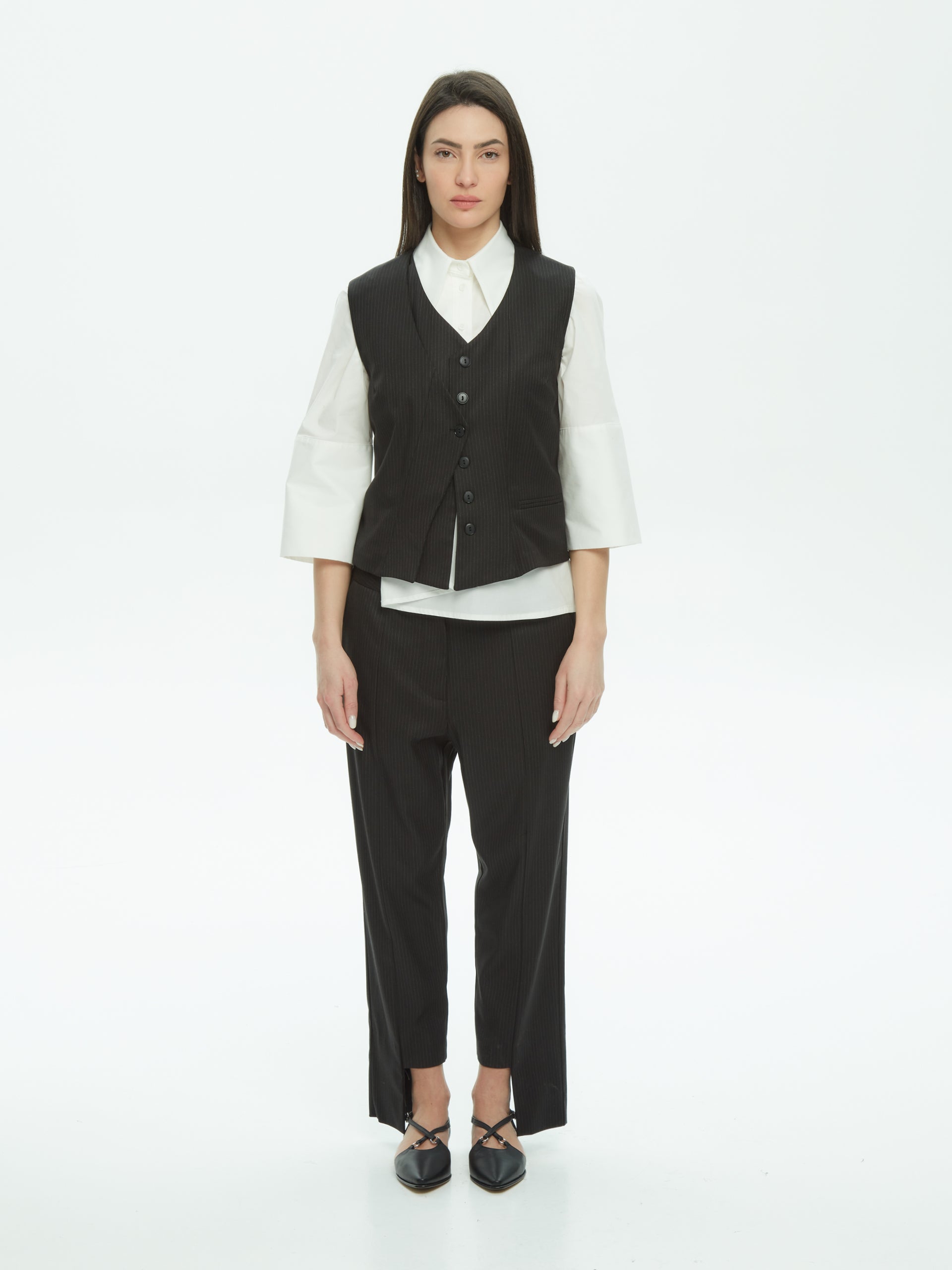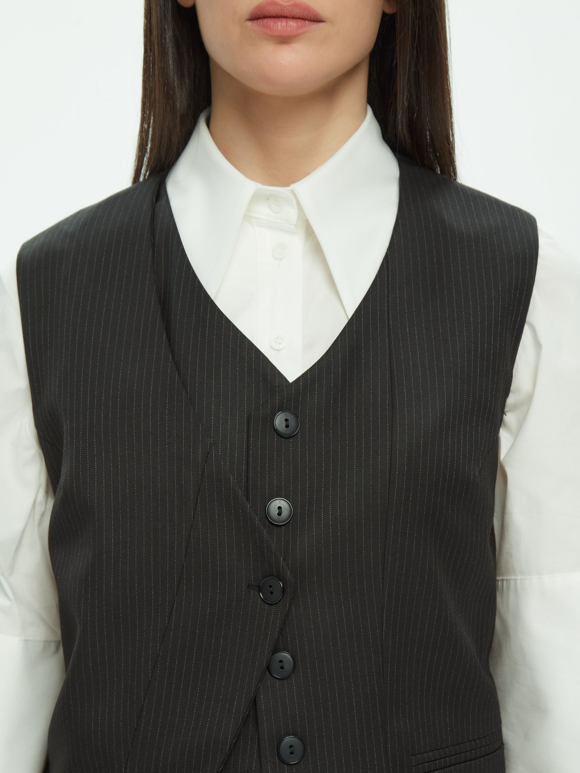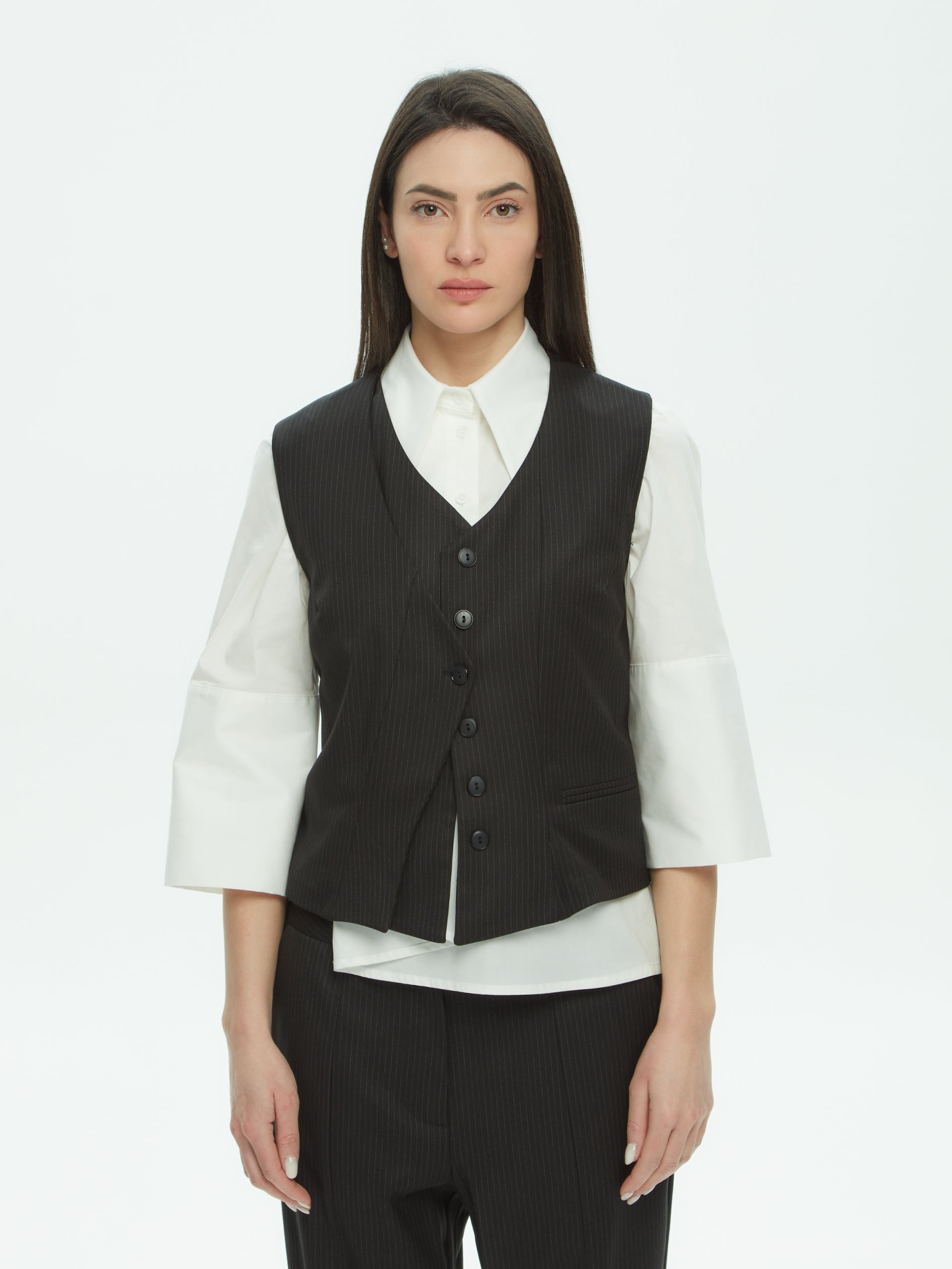 Gilet in tessuto gessato. Abbottonatura asimmetrica e doppio pannello sul davanti. Slim-fit.