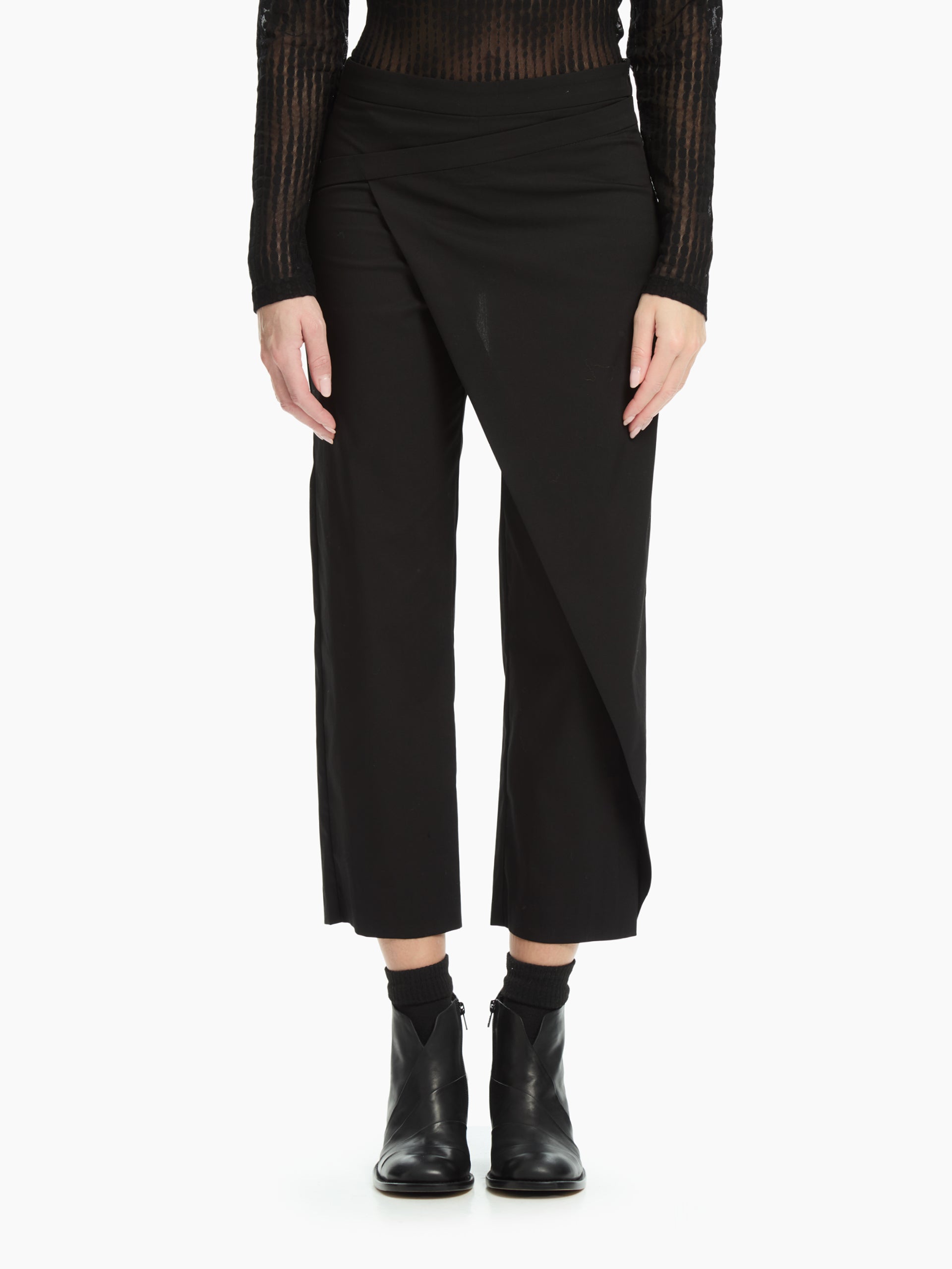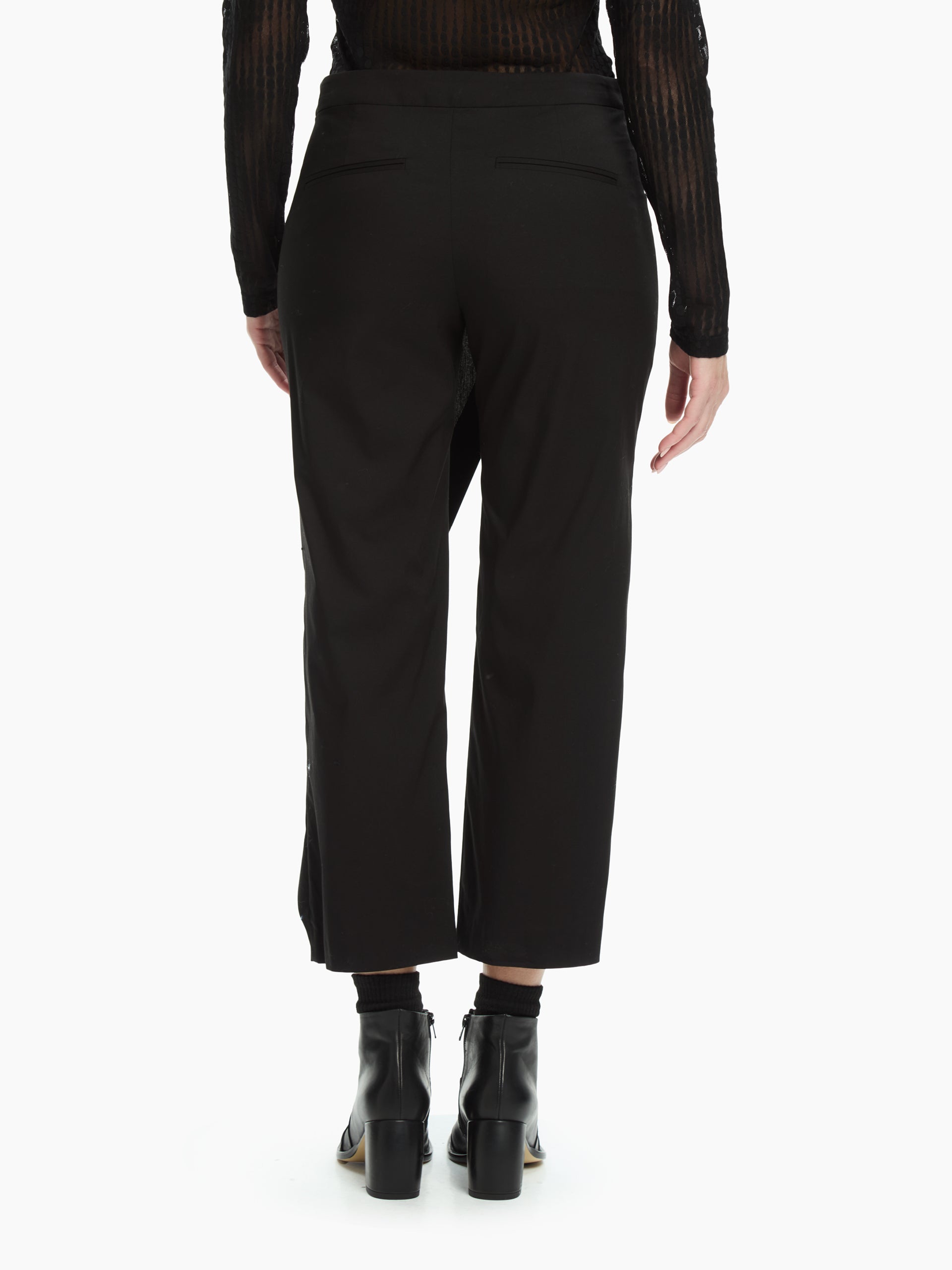 Pantalone in misto cotone elasticizzato. Pannello sovrapposto sul davanti. Tasche a filetto sul dietro. Chiusura tramite zip nascosta lateralmente. Vestibilità regular.