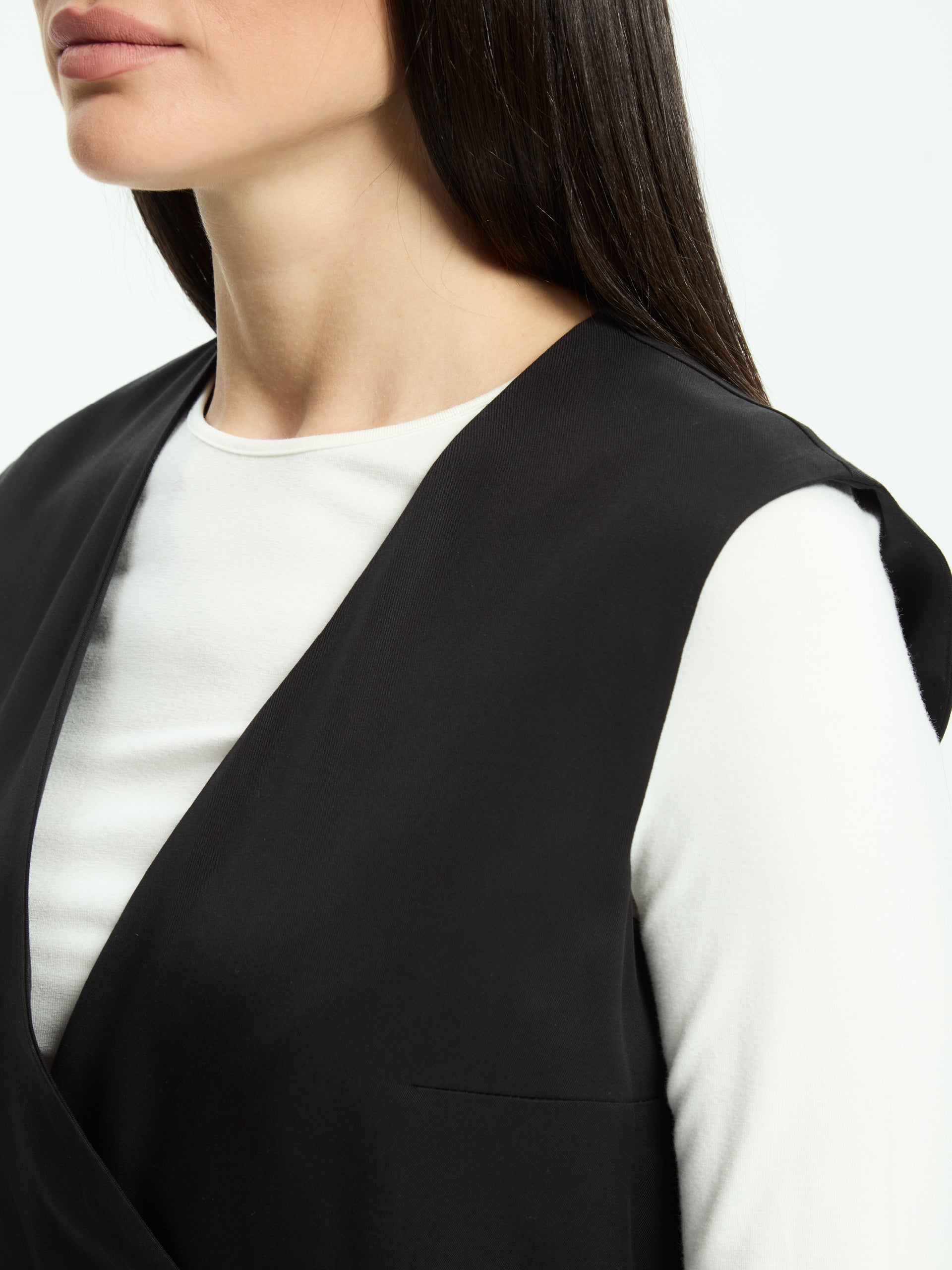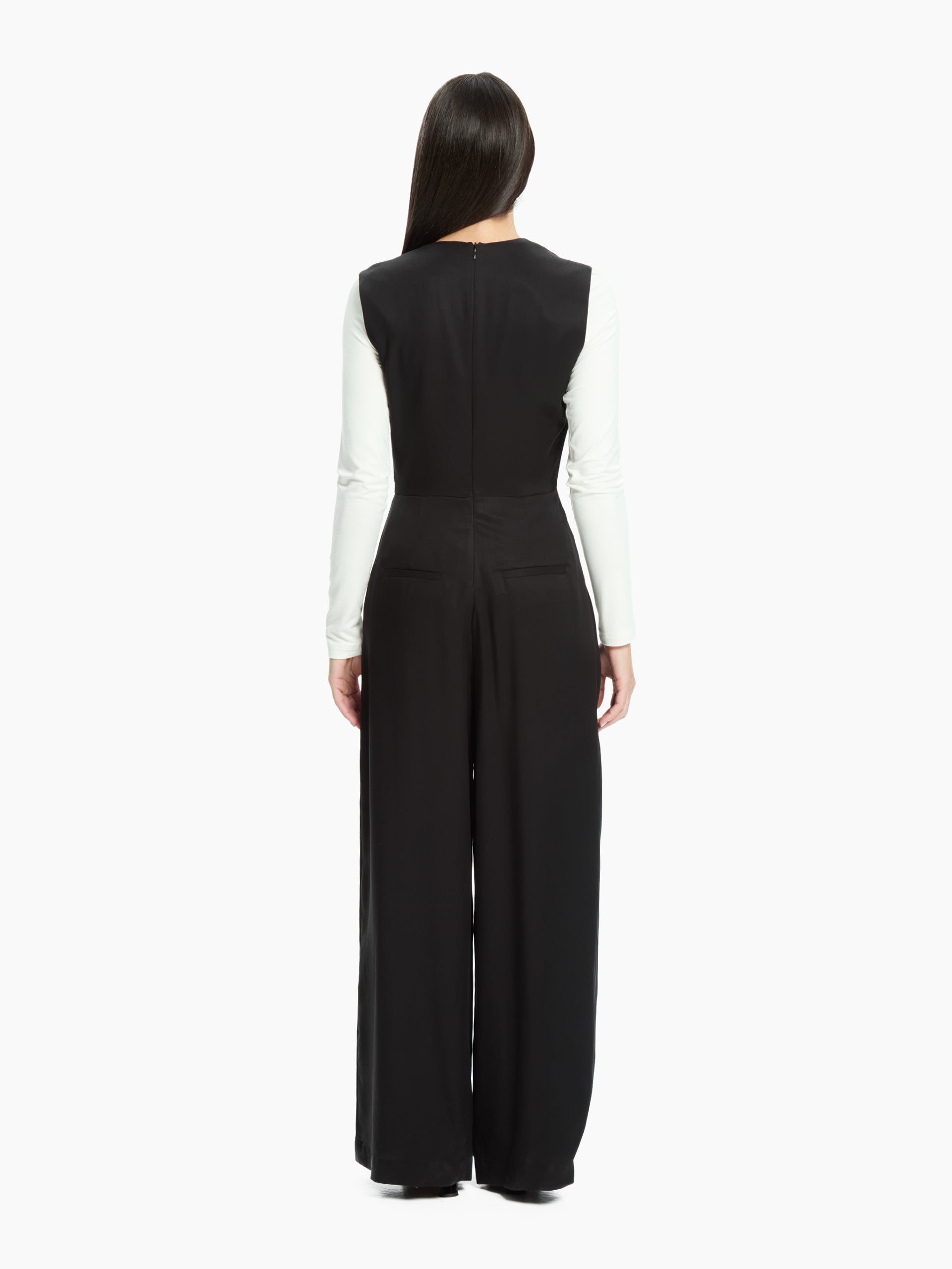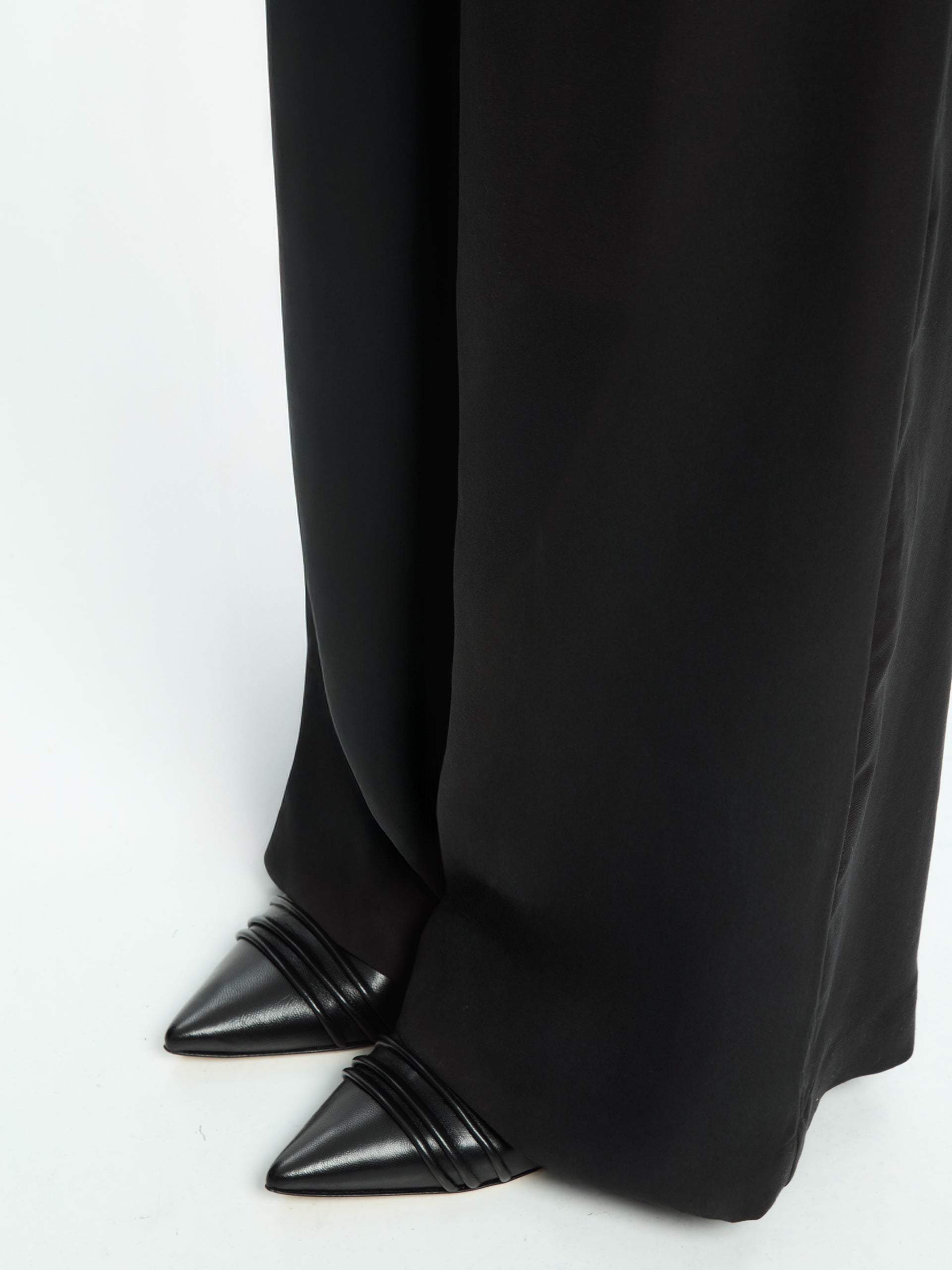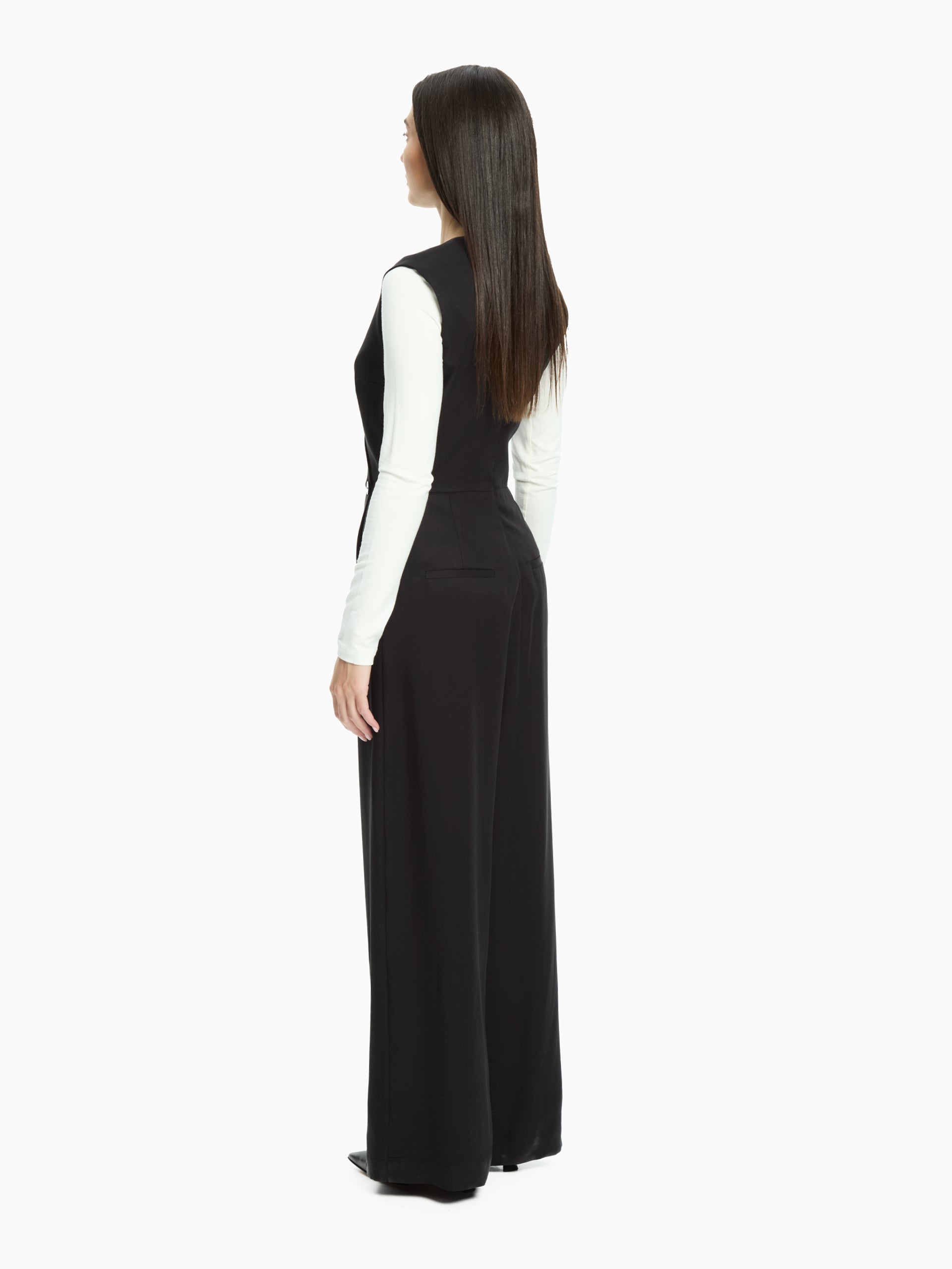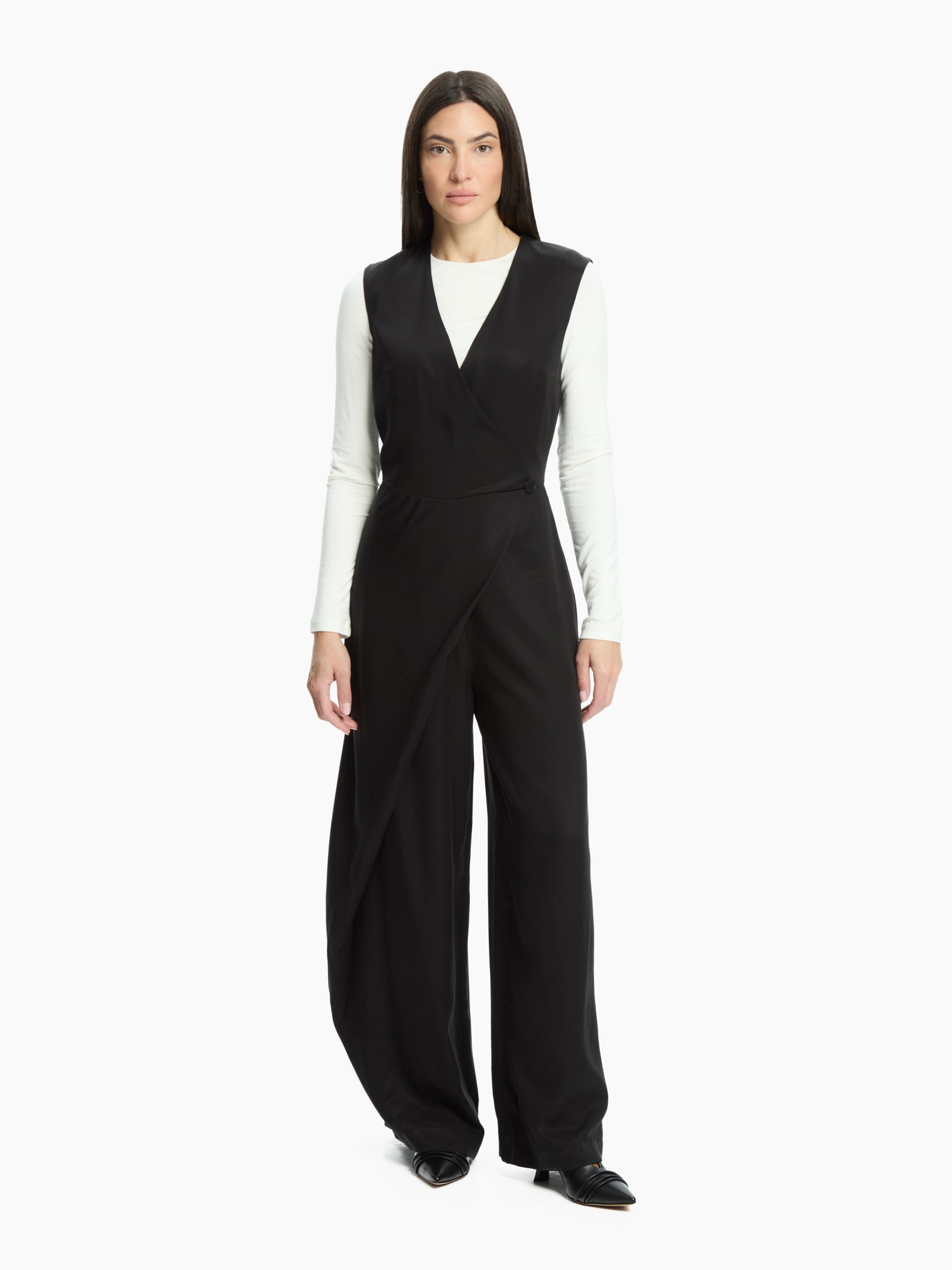 Un abito tuta che unisce linearità e movimento, pensato per chi cerca un capo unico ma facile da interpretare. Il taglio avvolgente sul busto e la gamba ampia donano equilibrio tra rigore e fluidità, trasformando il design minimal in un alleato versatile dallo stile moderno.