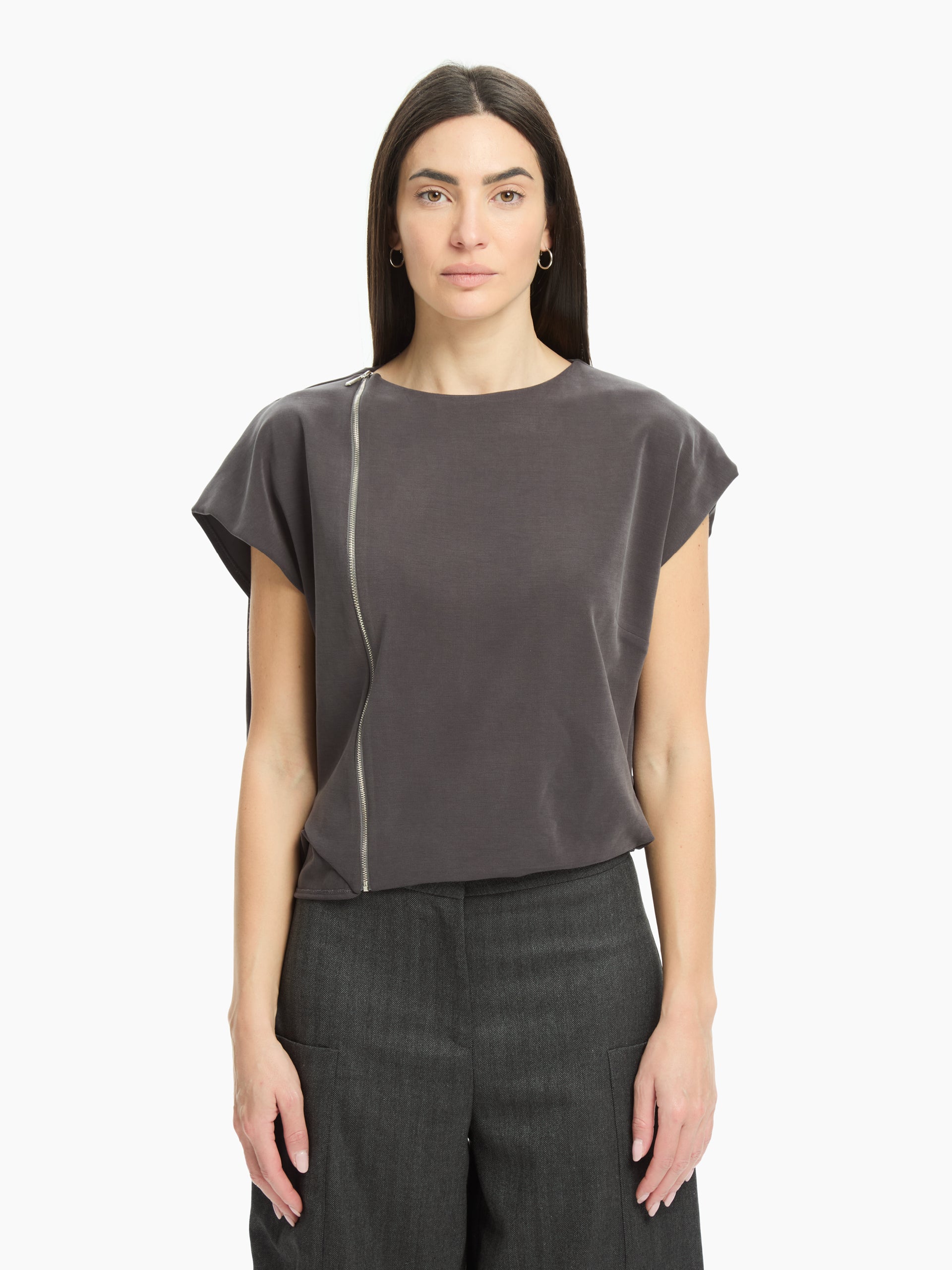Raffinato e contemporaneo, questo top IXOS è pensato per chi ama un’eleganza essenziale ma con personalità. Realizzato in tessuto fluido e confortevole, si distingue per la chiusura asimmetrica con zip metallica che dona un tocco moderno e deciso.
